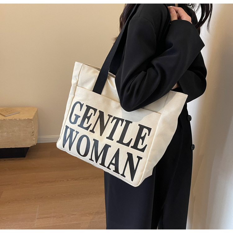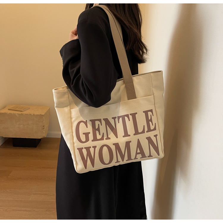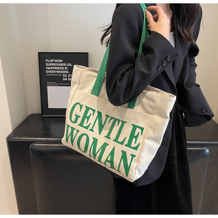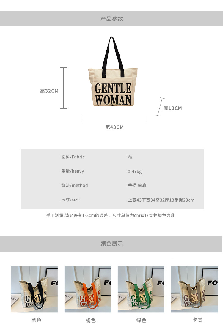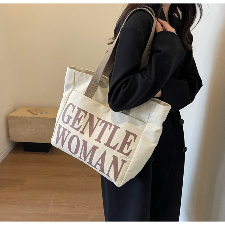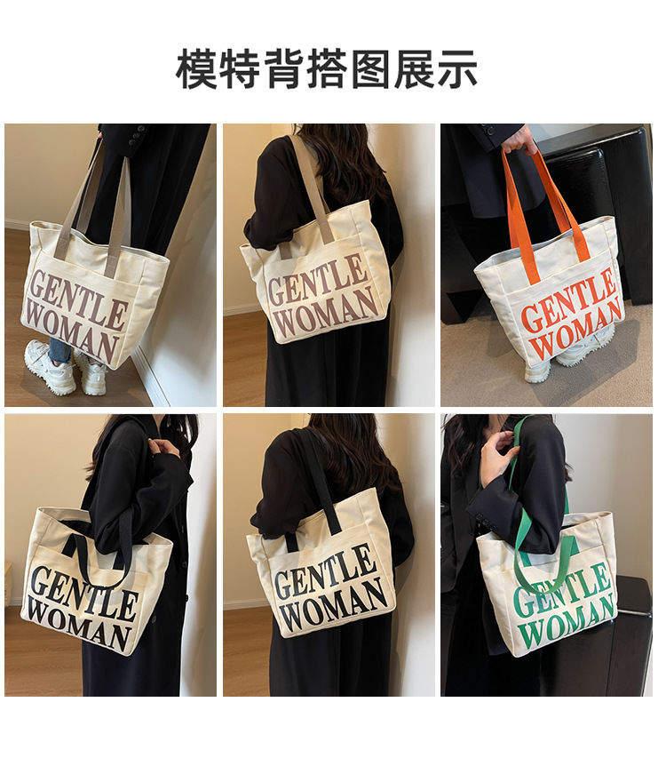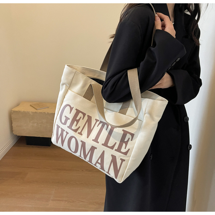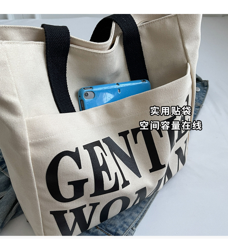 帆布包女手提包包女新款大容量包包休闲学生单肩包字母托特包 English | 投诉