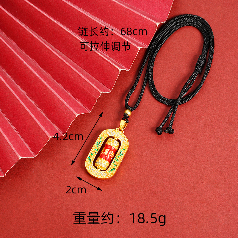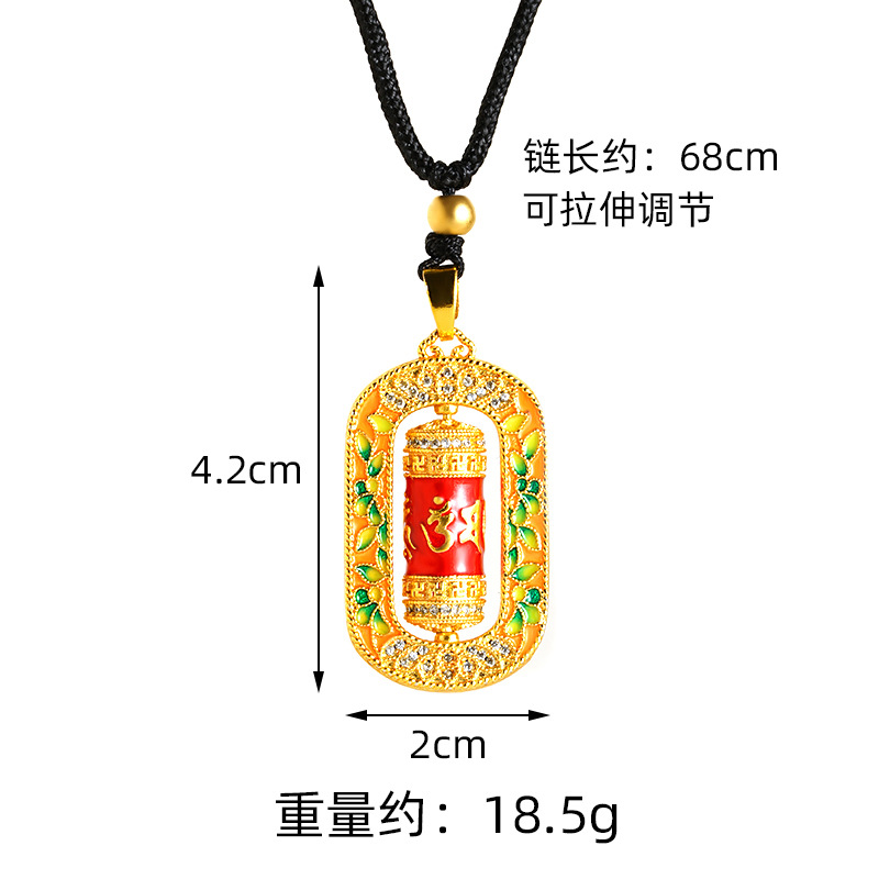 沙金转经筒项链珐琅微镶彩色滴油六字真言吊坠手饰品义乌配饰批发