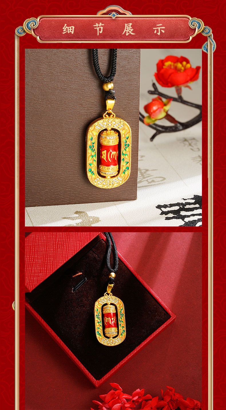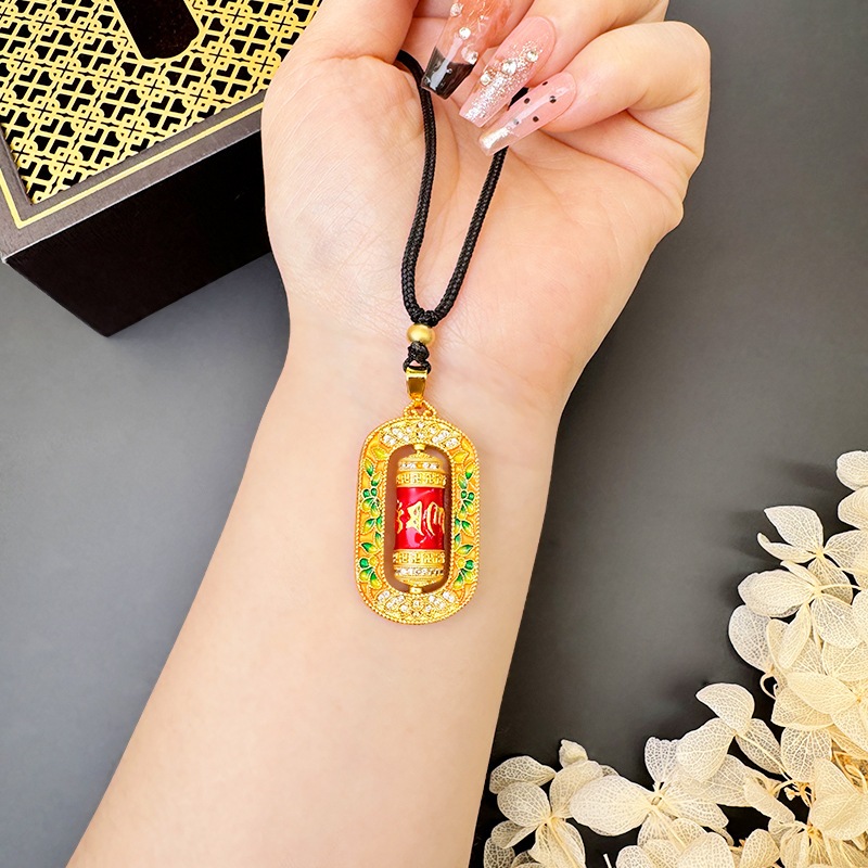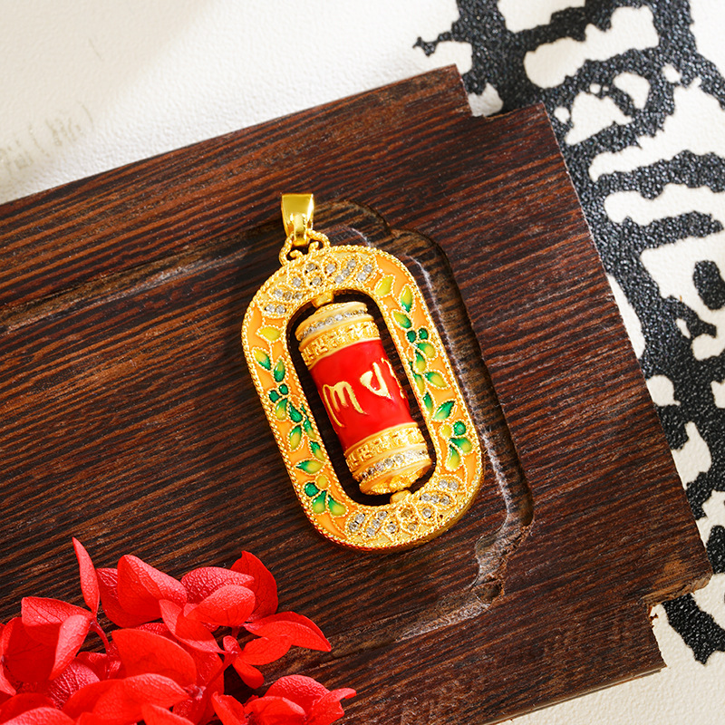 沙金转经筒项链珐琅微镶彩色滴油六字真言吊坠手饰品义乌配饰批发 English | 投诉