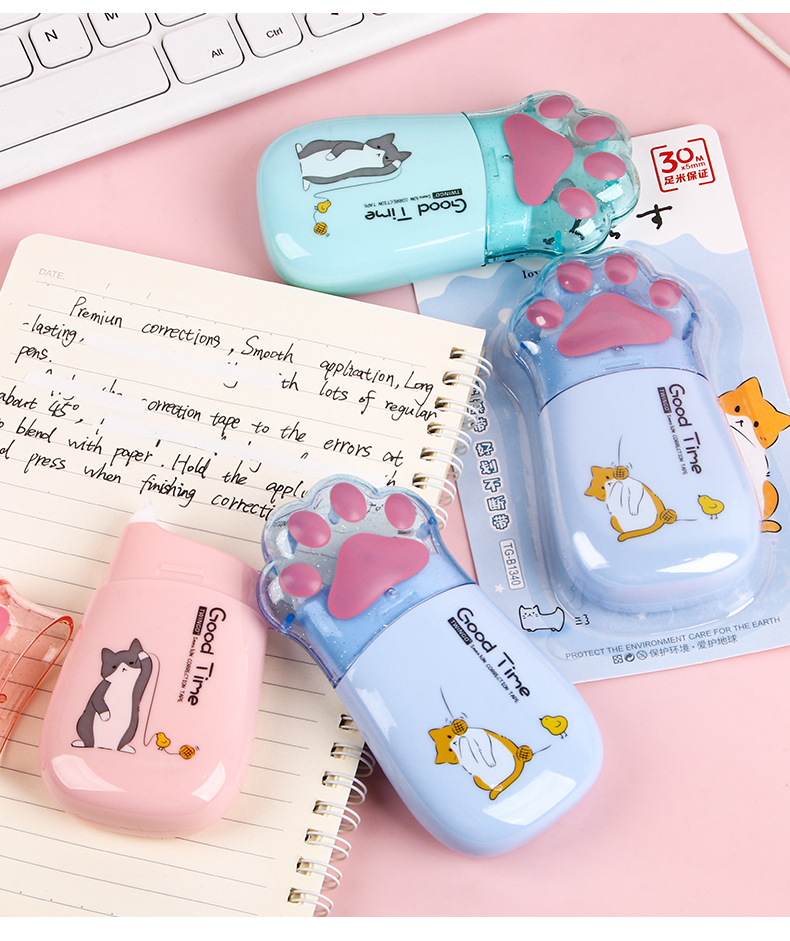 创意卡通猫爪大容量涂改带批发 高颜值改正带学生专用30m足修正带