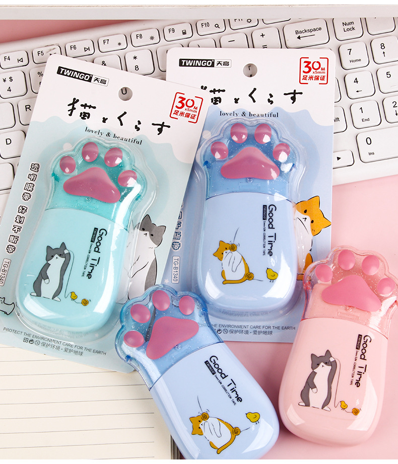 创意卡通猫爪大容量涂改带批发 高颜值改正带学生专用30m足修正带 投诉
