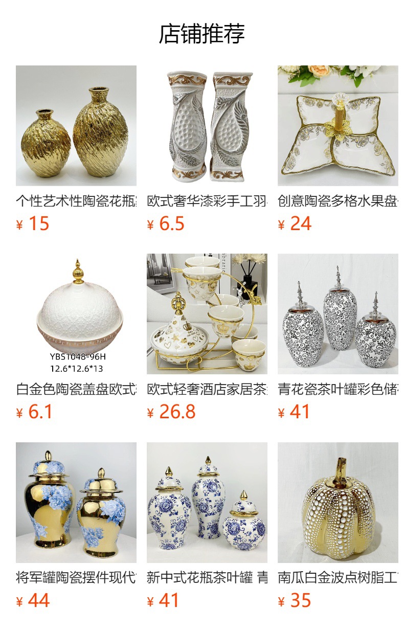 • 本店是厂家直销,本店经营陶瓷花瓶,陶瓷工艺品,陶瓷花盆,树脂 氧化镁花瓶, 欢迎新老客户来店定货,新款多多。现金可以优惠