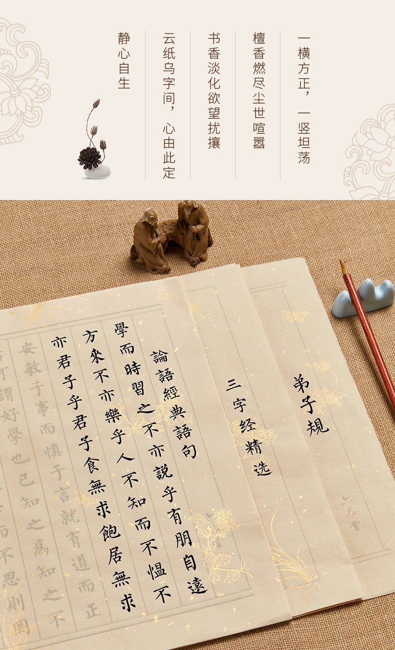 | 静心练字套装(檀香+香插+毛笔+墨汁+毛毡+笔搁+墨碟+字帖) | ¥3433 | 193件可售 |