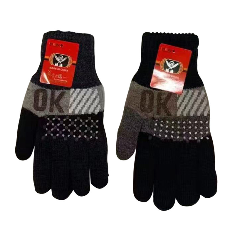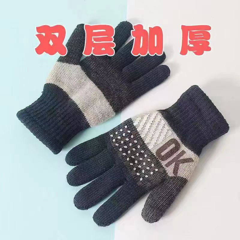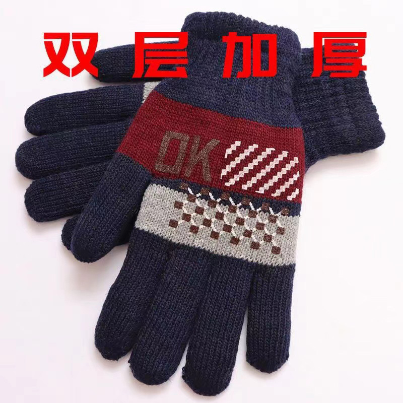 男女士秋冬季双层加大加绒加厚毛线针织上班户外防寒保暖骑行手套