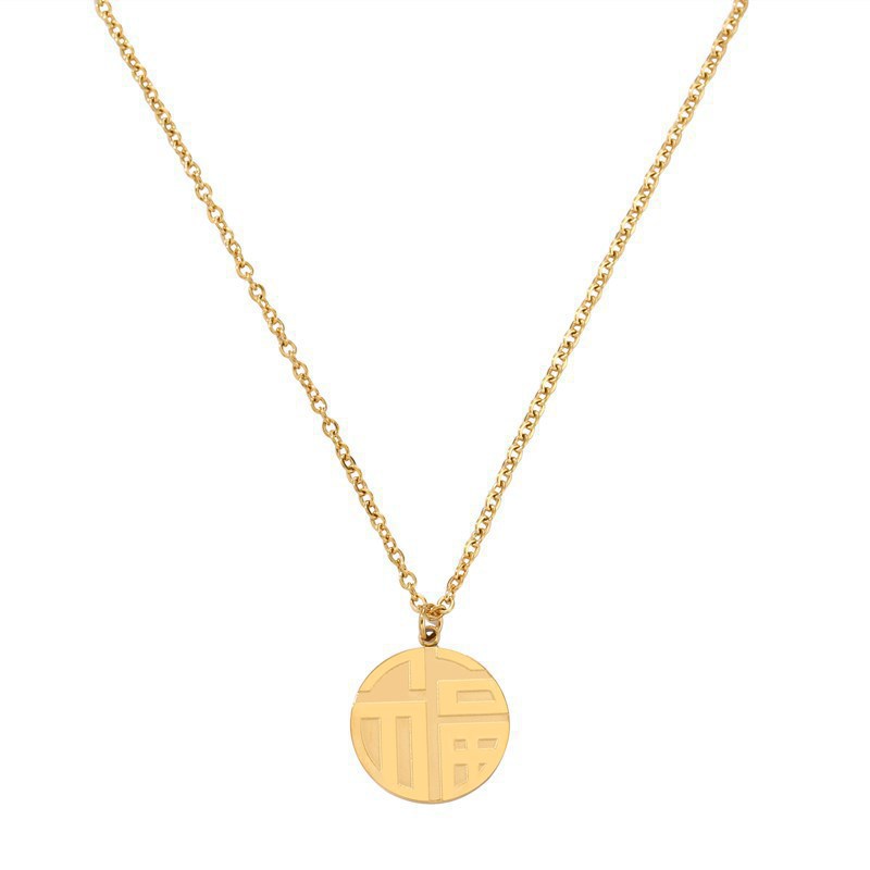 钛钢项链中国风福字女短款毛衣链复古风圆牌颈链冷淡风简约配饰品