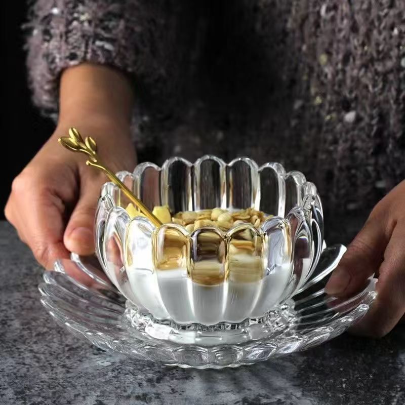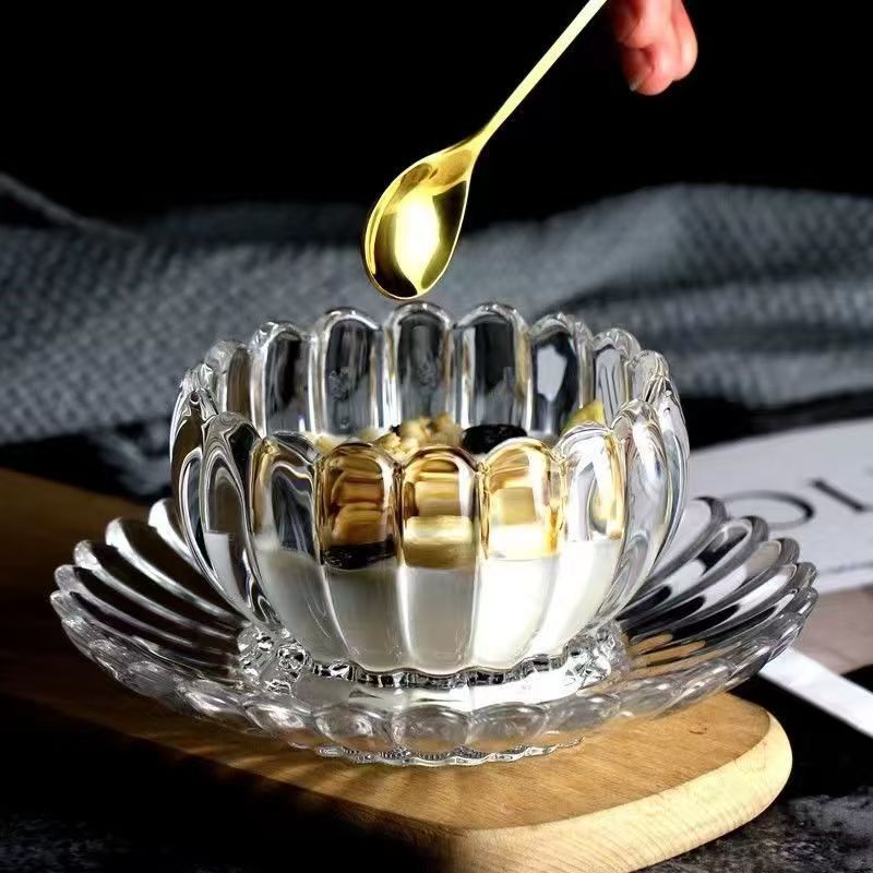 创意玻璃莲花碗碟套装甜品燕窝碗盘网红花边碗精致养生碗碟 English | 投诉