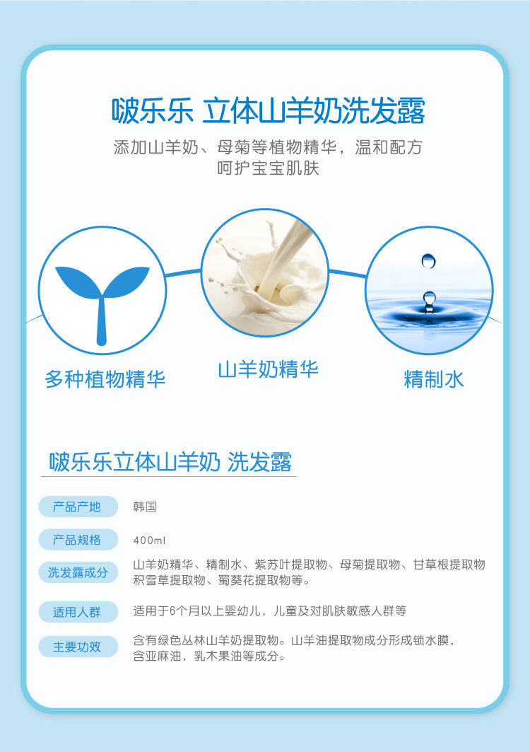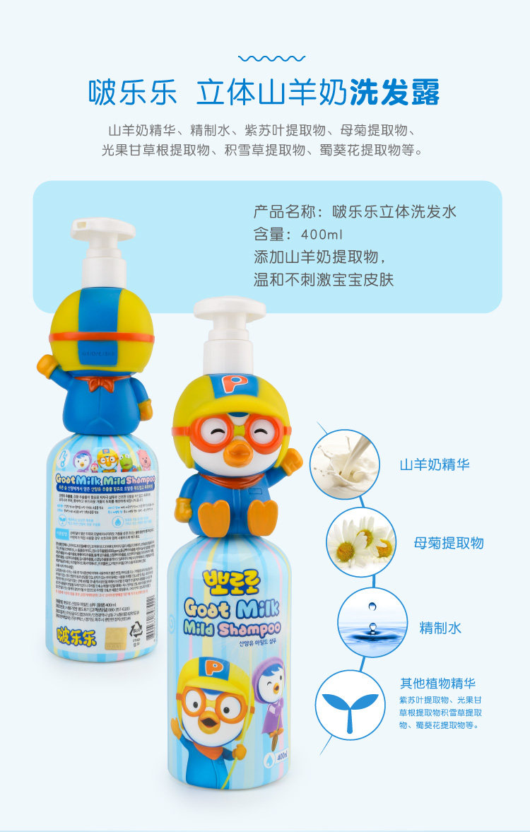 包邮零批!韩国进口百货手办穿戴甲儿童 啵乐乐温和洗发水400ml 投诉