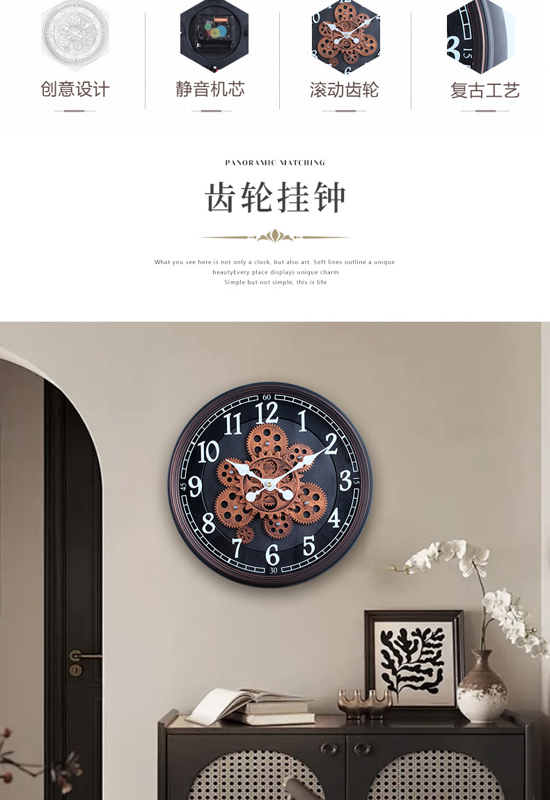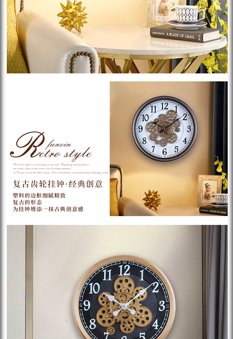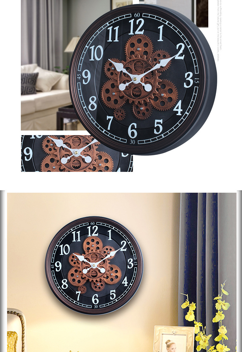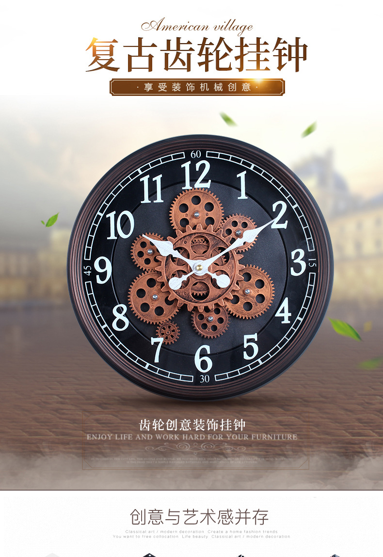 手工复古转动齿轮挂钟表模型酒吧咖啡店餐厅建筑设计墙面装饰 English | 投诉