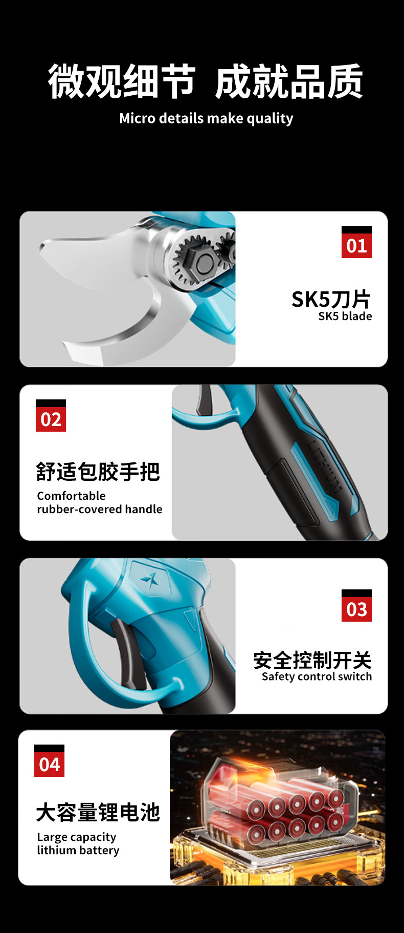 定制锂电充电式单手修枝剪刀大功率多功能园林花草树木修枝机批发 投诉