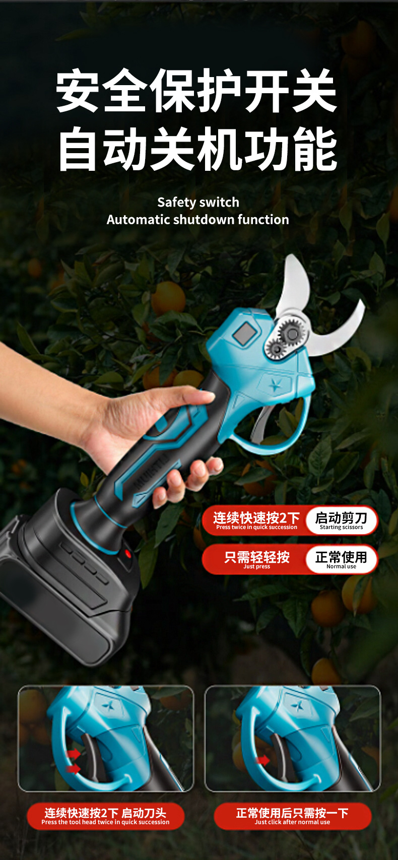 定制锂电充电式单手修枝剪刀大功率多功能园林花草树木修枝机批发