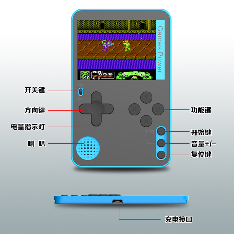 厂家批发K10掌上游戏机迷你卡片游戏机支持五国语言可吸附手机壳