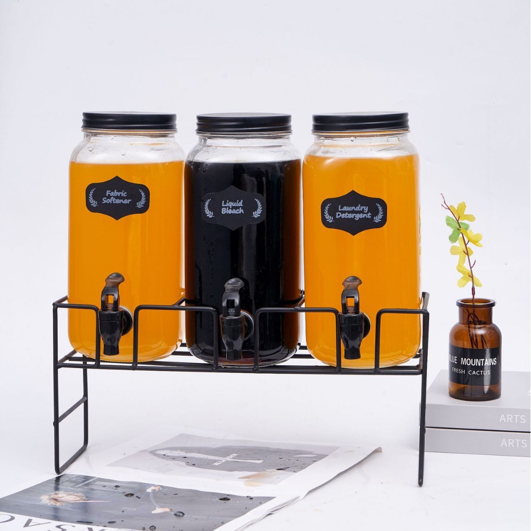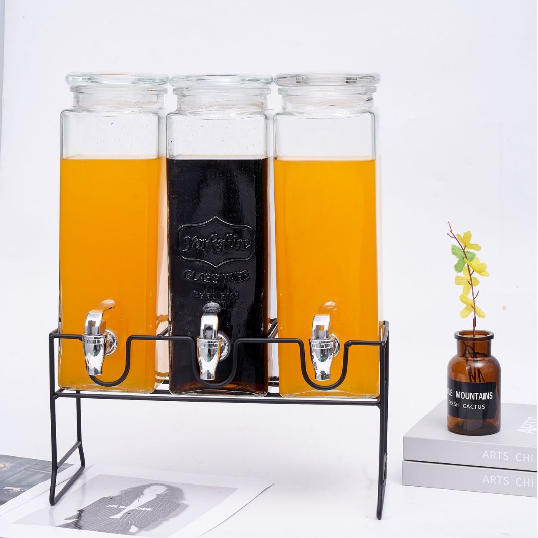 三支装玻璃瓶果汁罐分配器带龙头饮料桶可乐桶泡酒瓶冷水