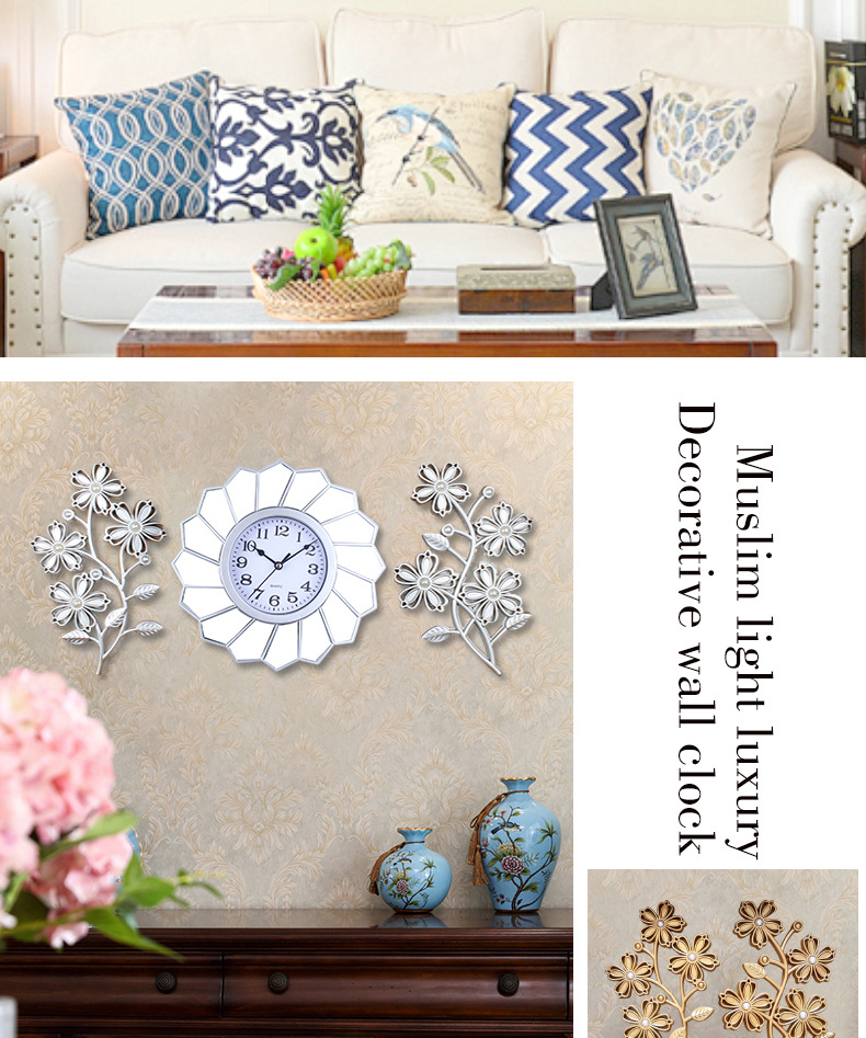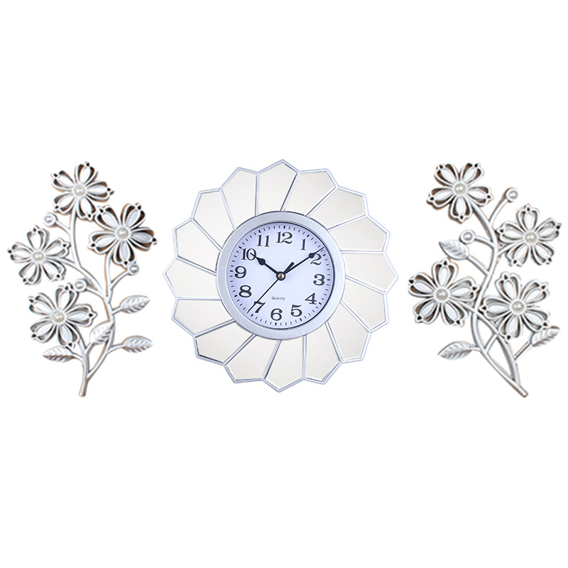 跨境热销阿文花儿三联挂钟三件套钟表批发北欧简约塑料家居装饰