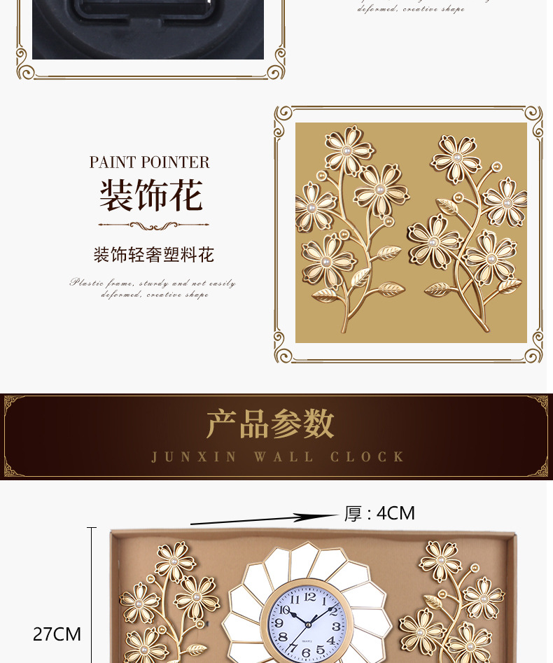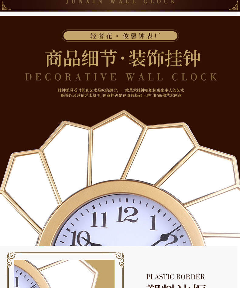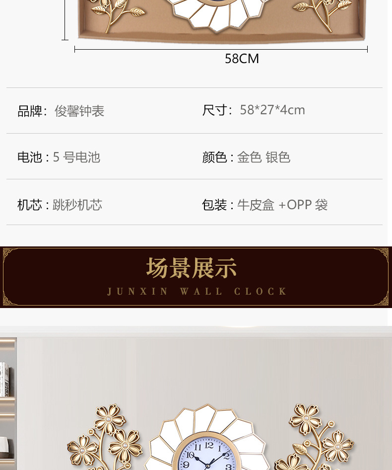 产品类别: 挂钟 品牌: 俊馨 是否进口: 否 型号: 115 是否专利货源: 否 加工定制: 是 加印LOGO: 不可以 是否双面: 单面 风格: 轻奢 外观造型: 长方形 重量: 1.0 kg/个