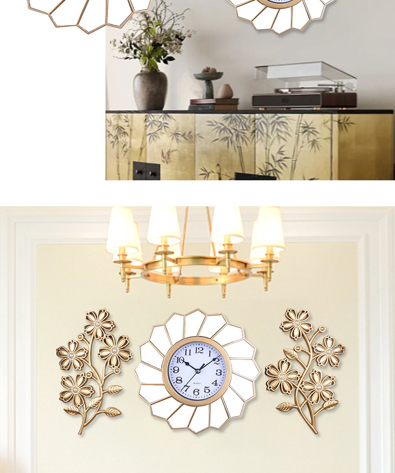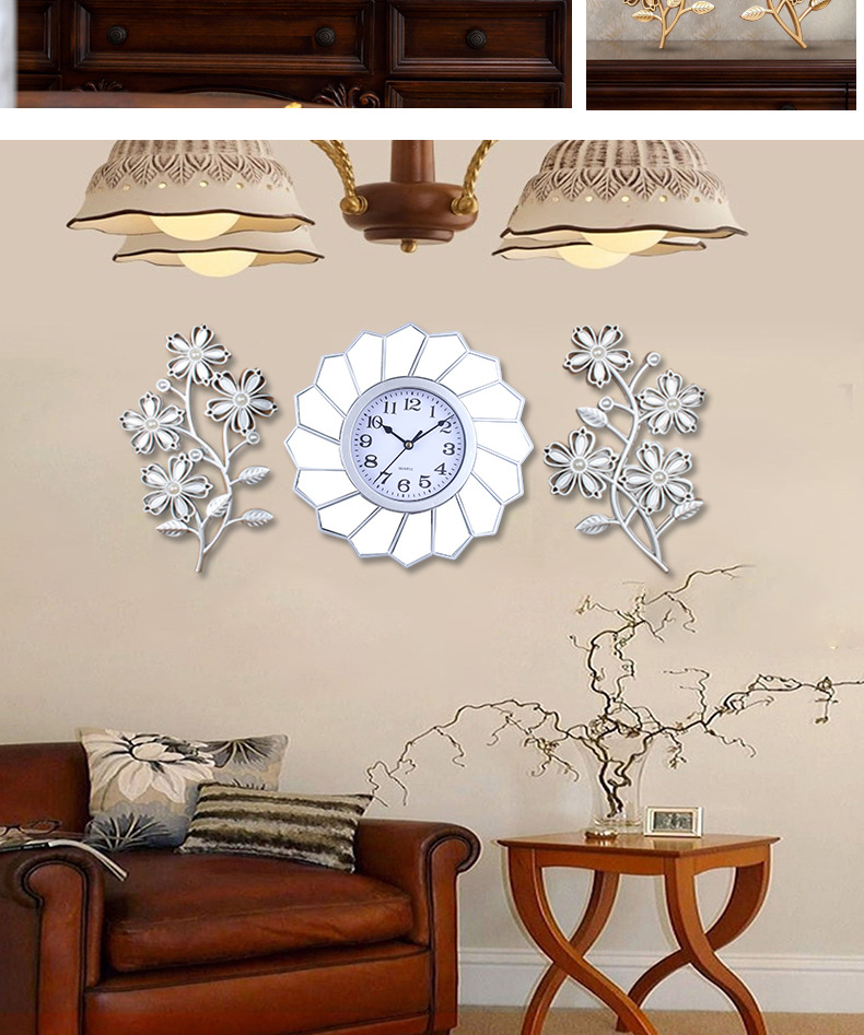 跨境热销阿文花儿三联挂钟三件套钟表批发北欧简约塑料家居装饰 English | 投诉