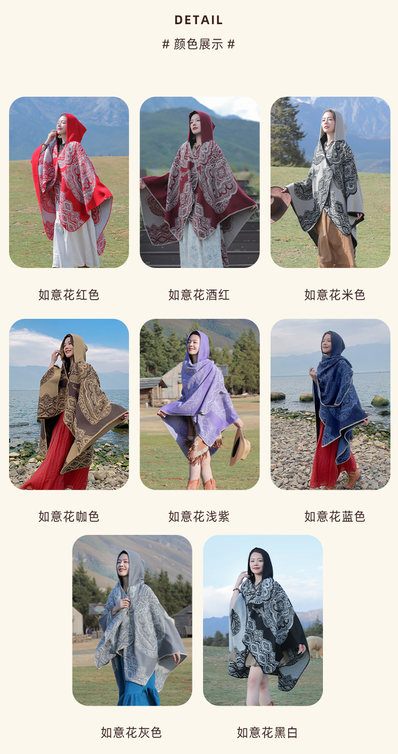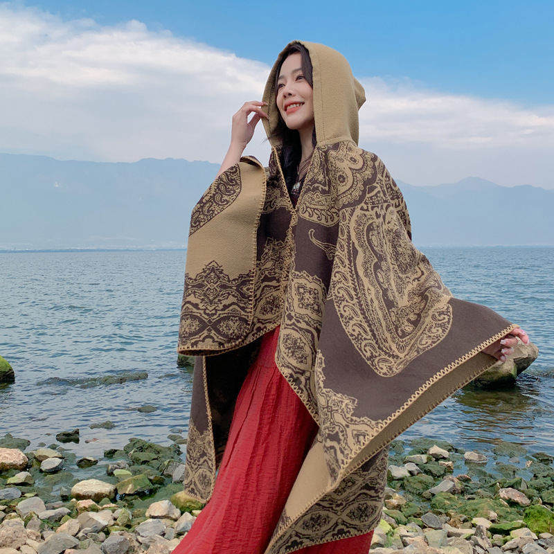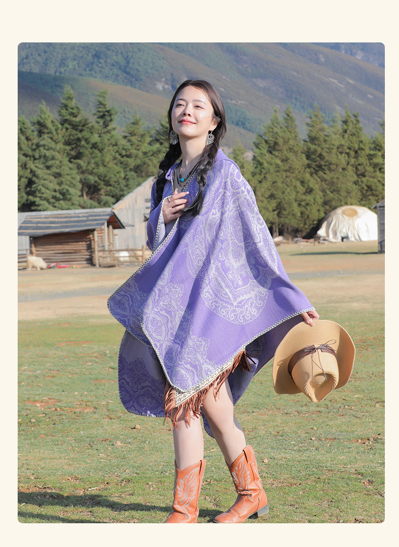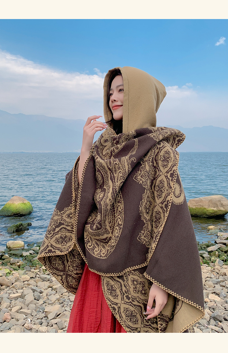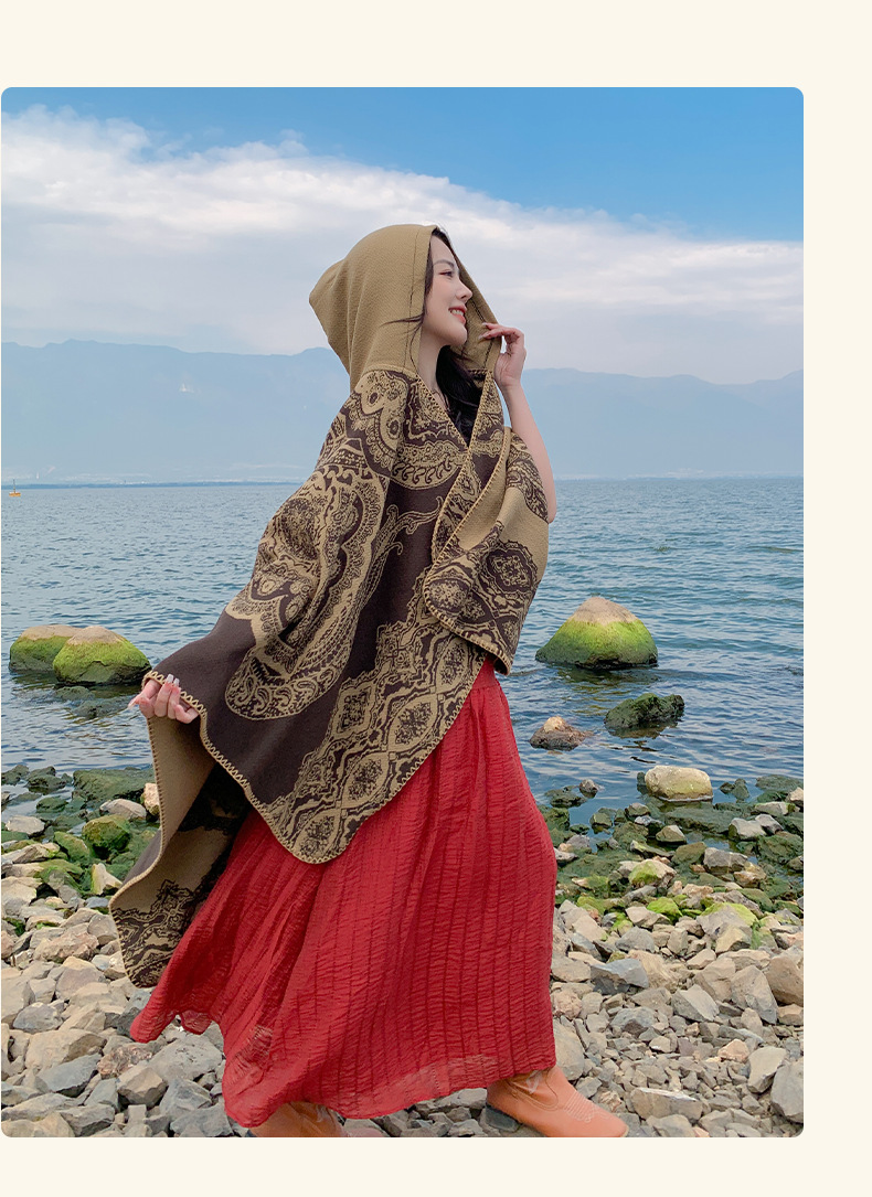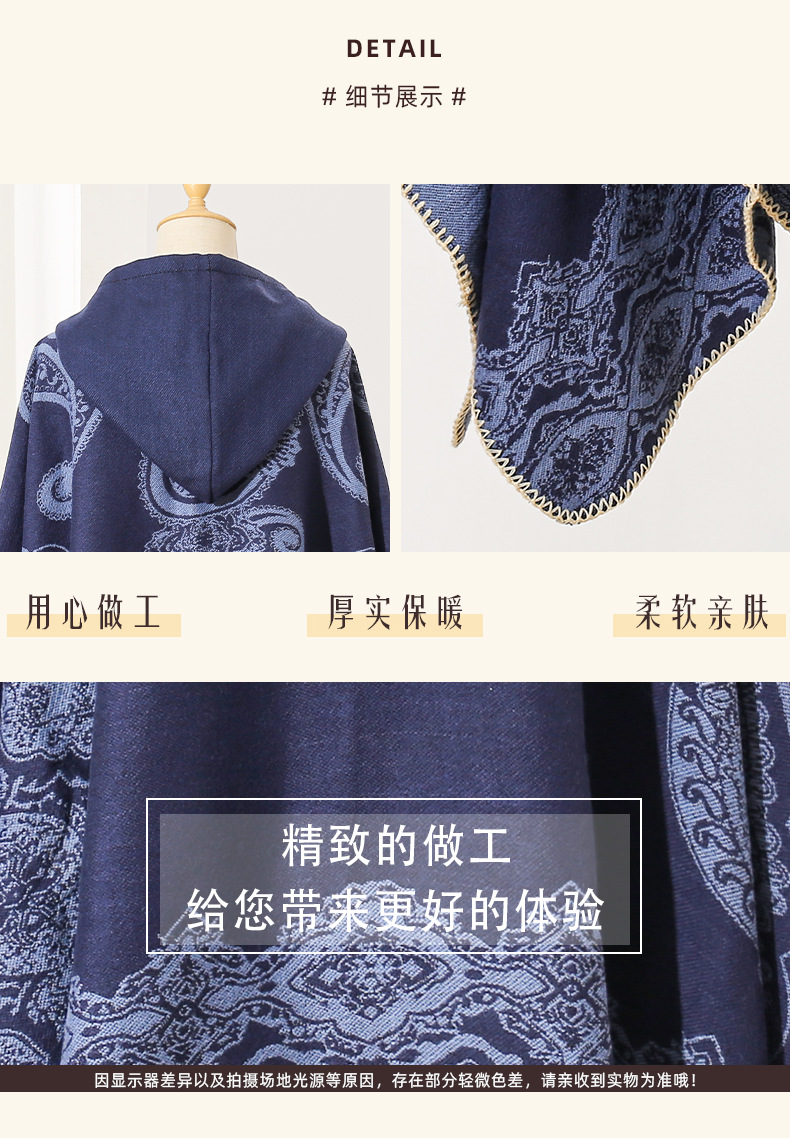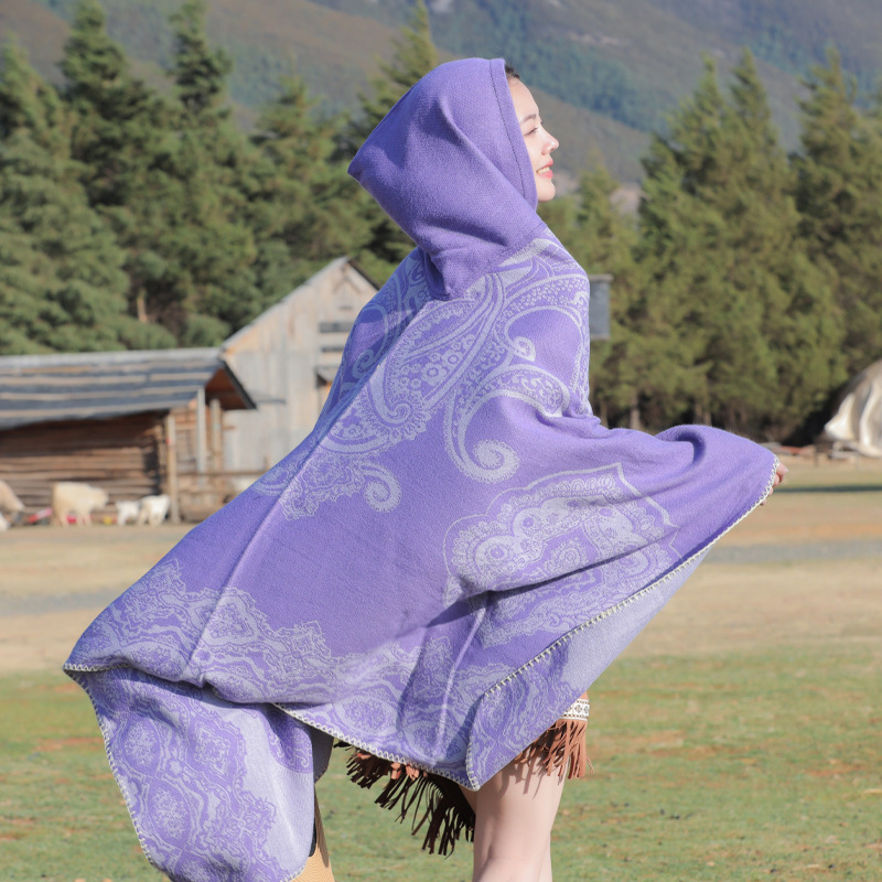 披肩女外搭民族风新款连帽斗篷旅游加厚保暖秋冬流苏围巾披风批发 English | 投诉