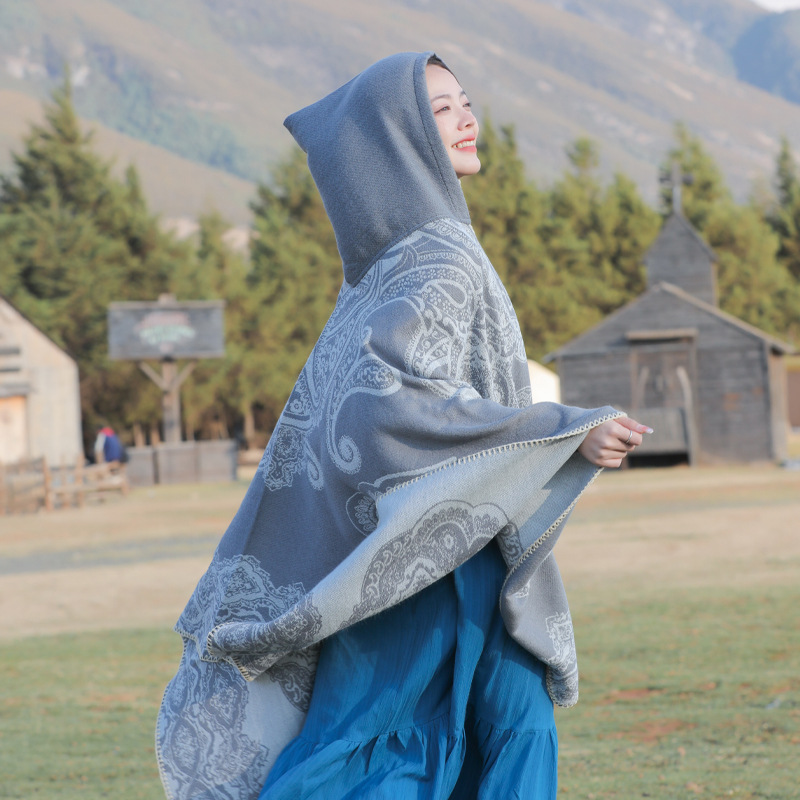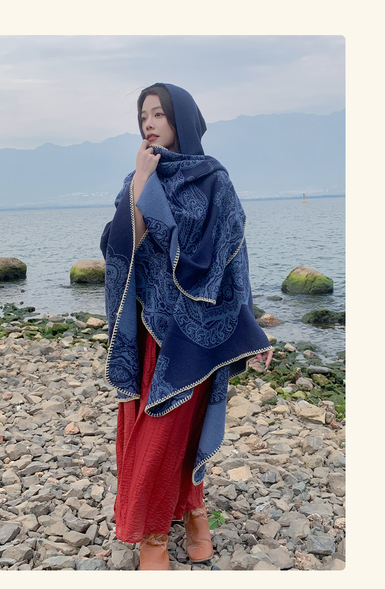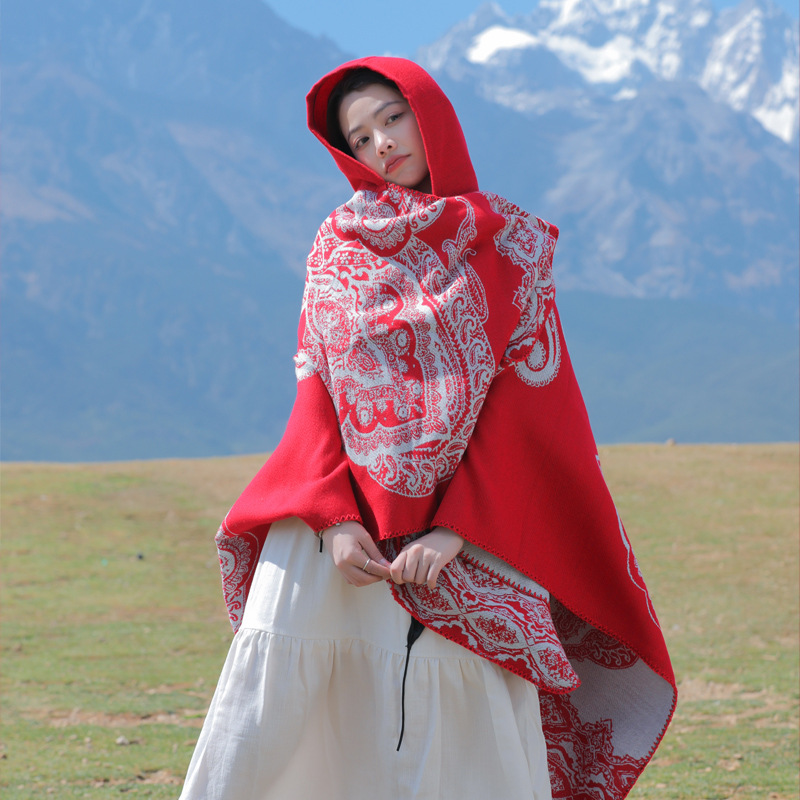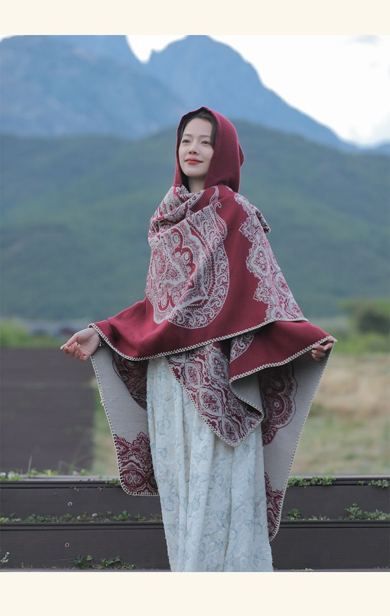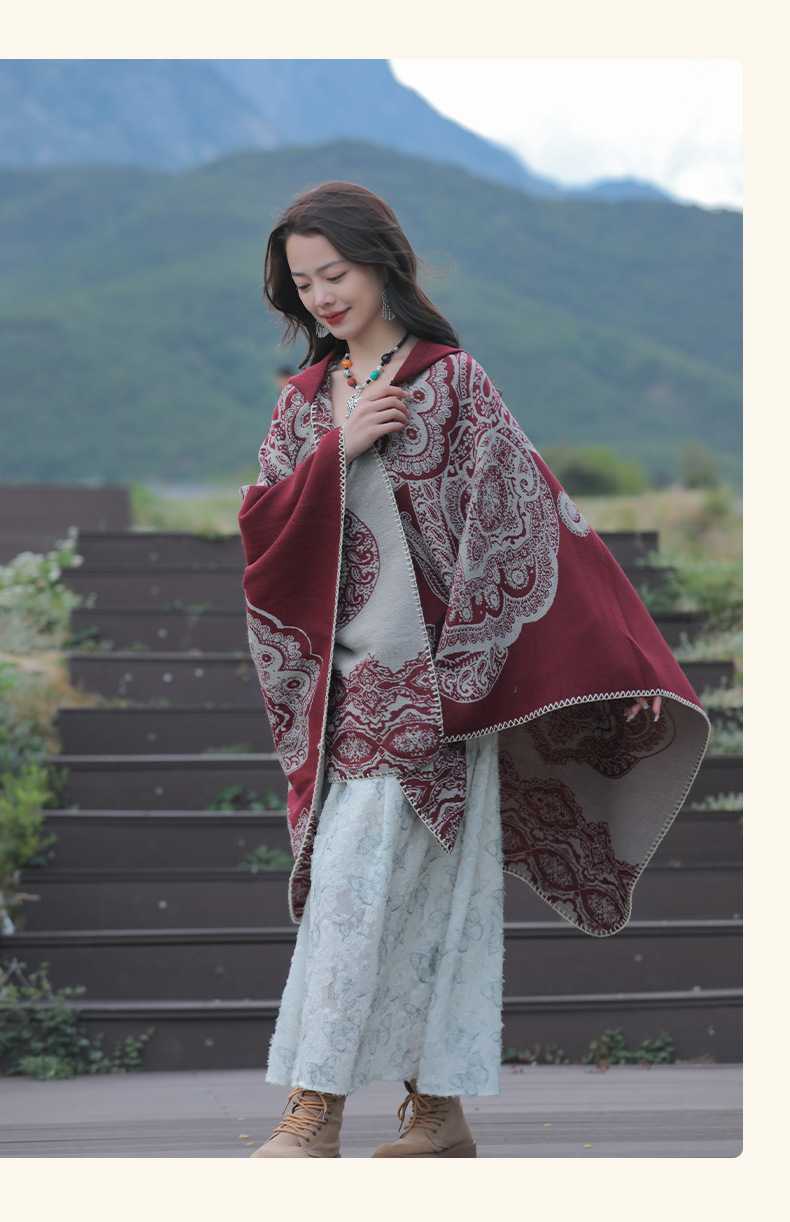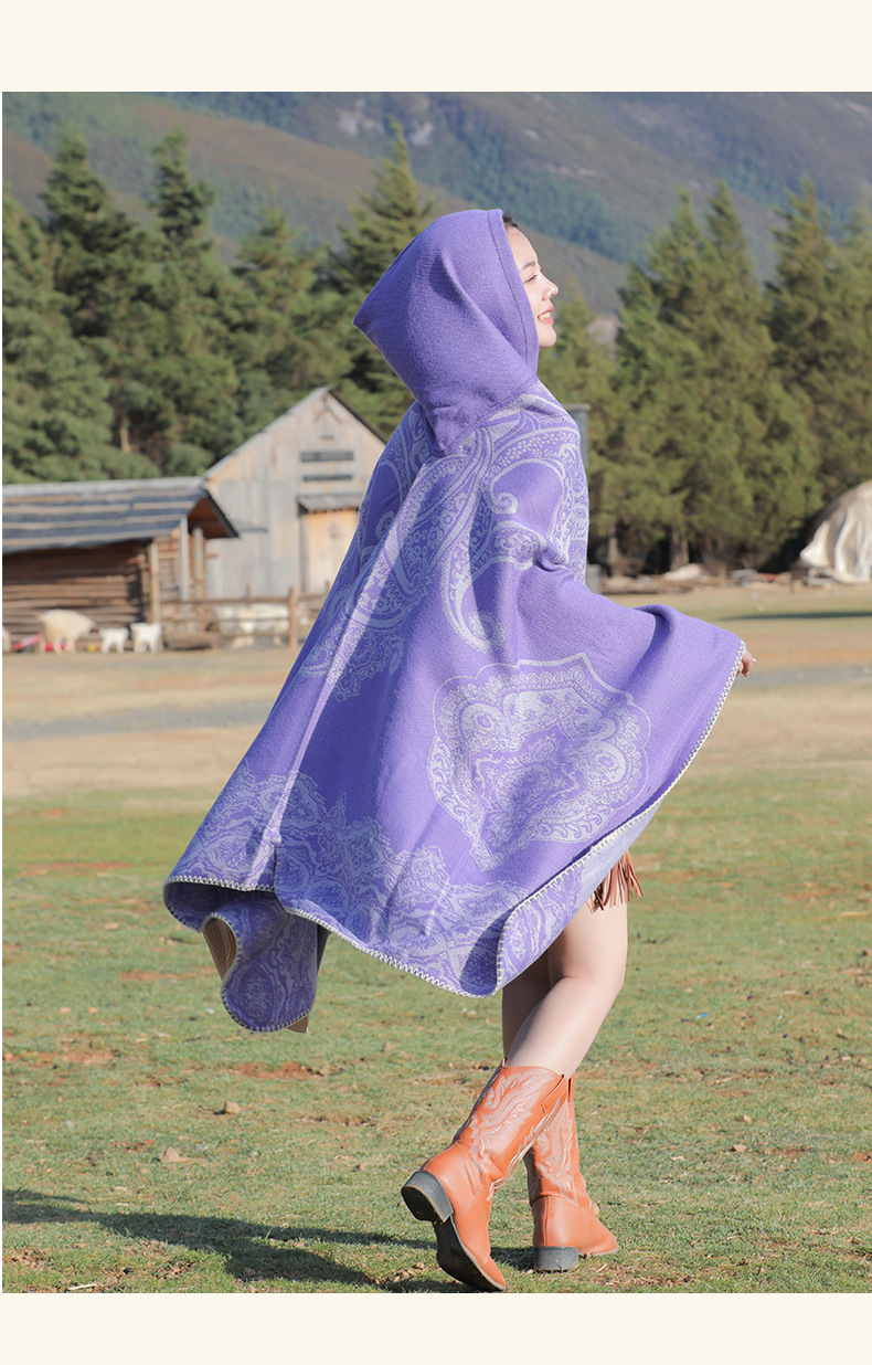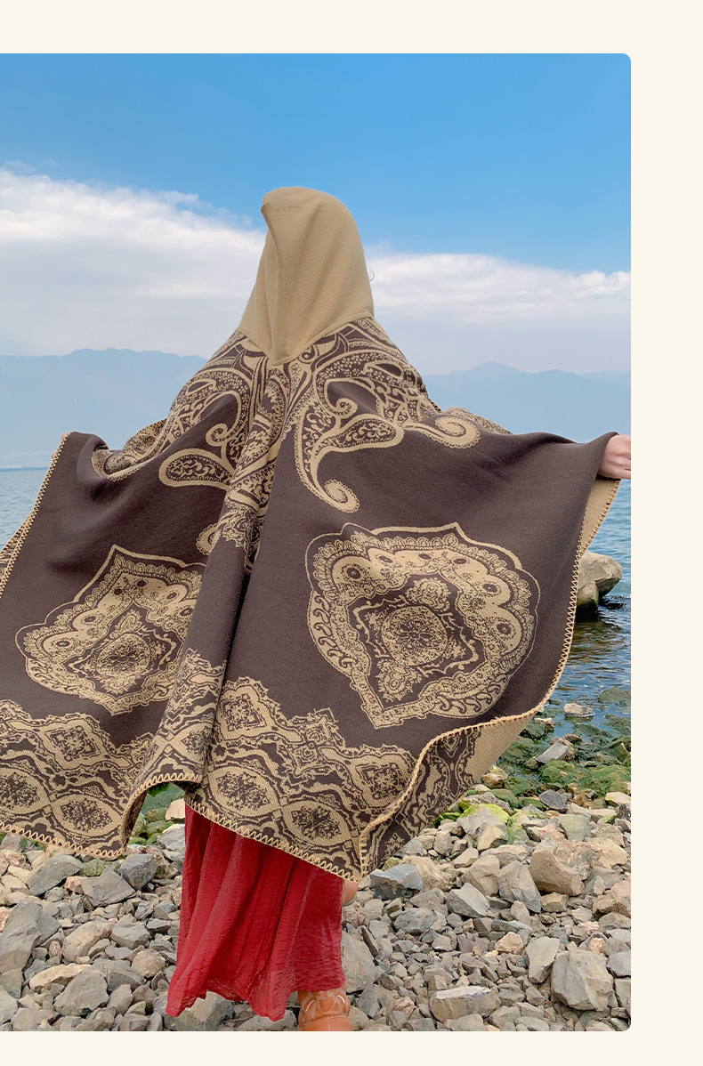 披肩女外搭民族风新款连帽斗篷旅游加厚保暖秋冬流苏围巾披风批发 English | 投诉