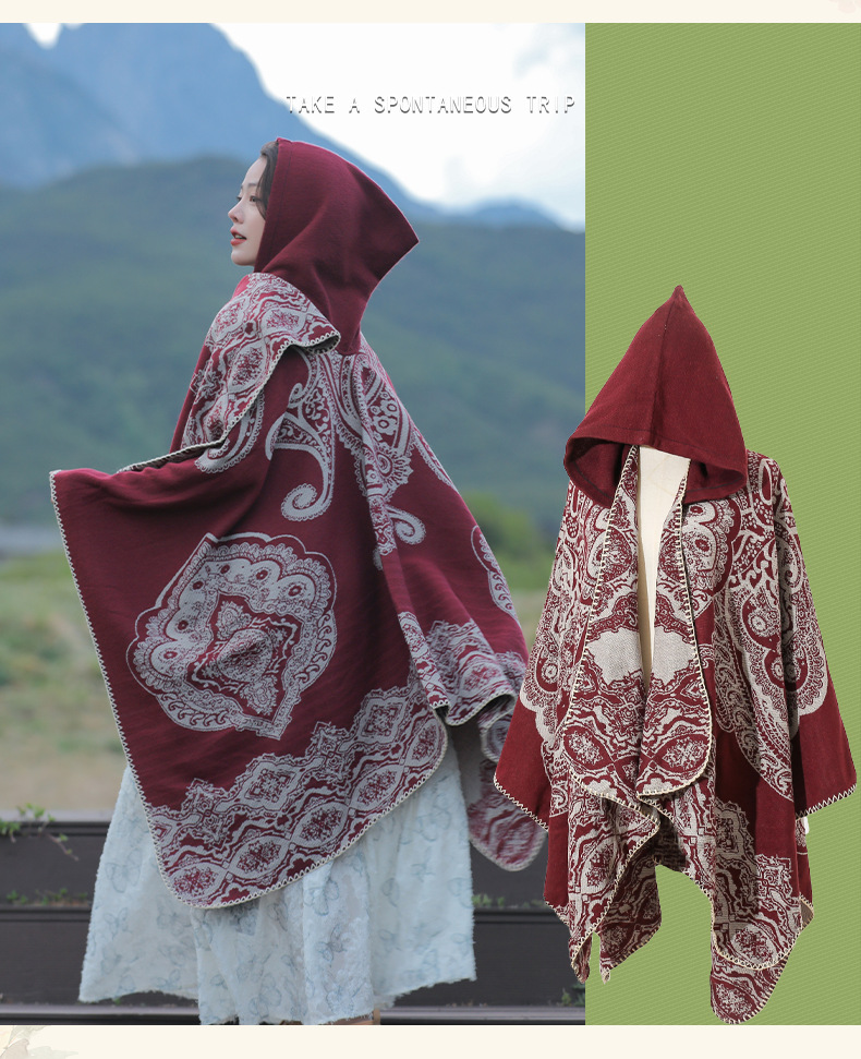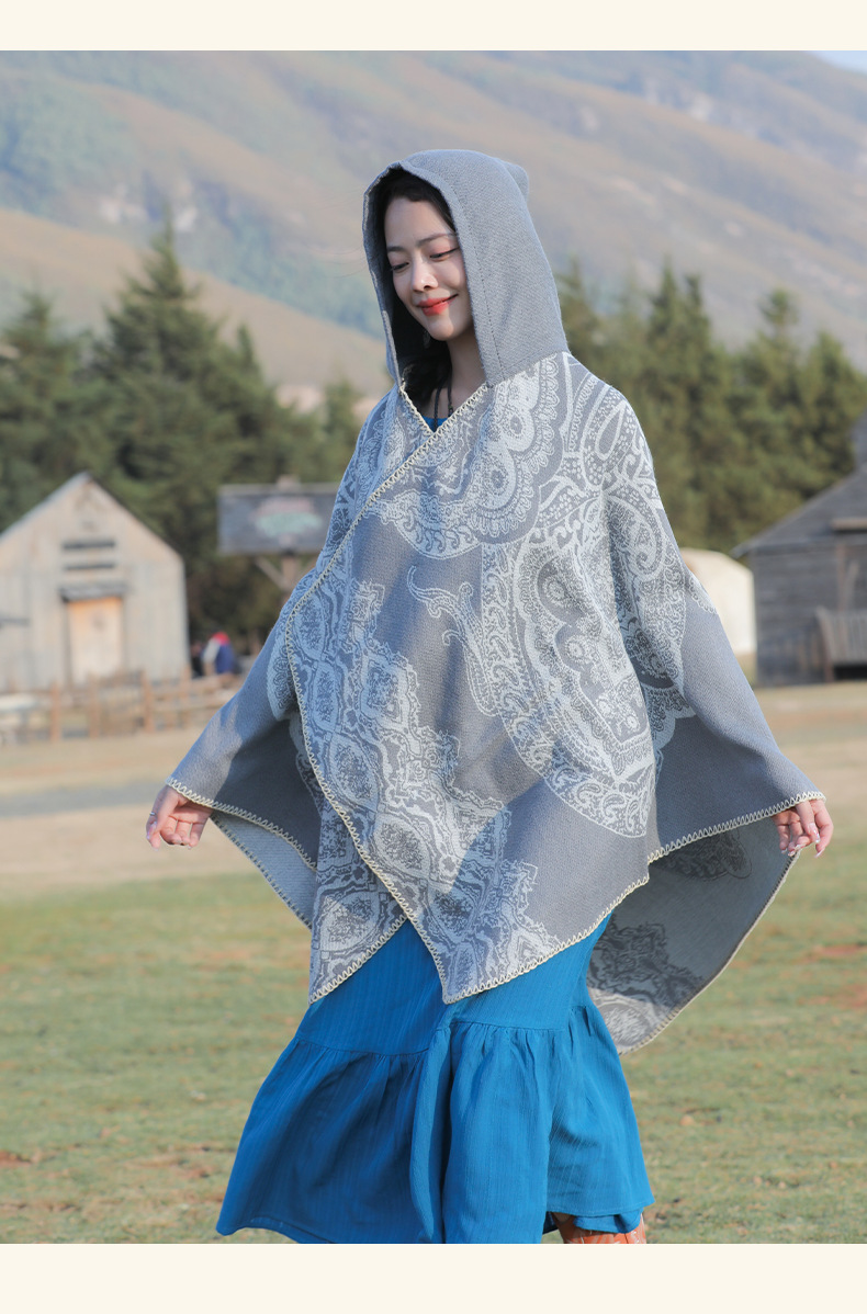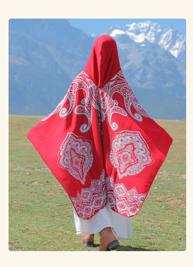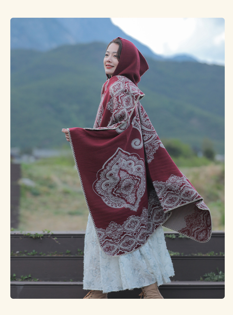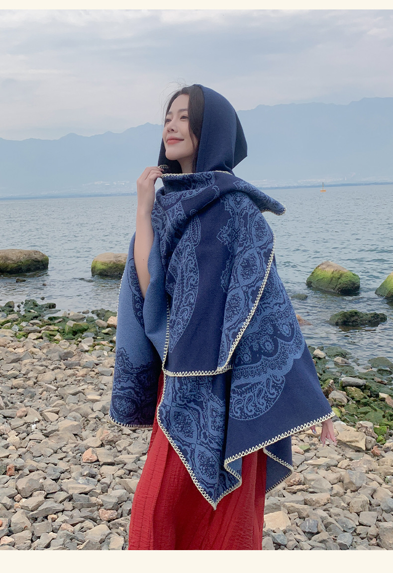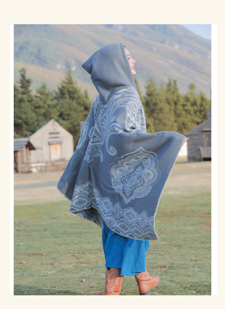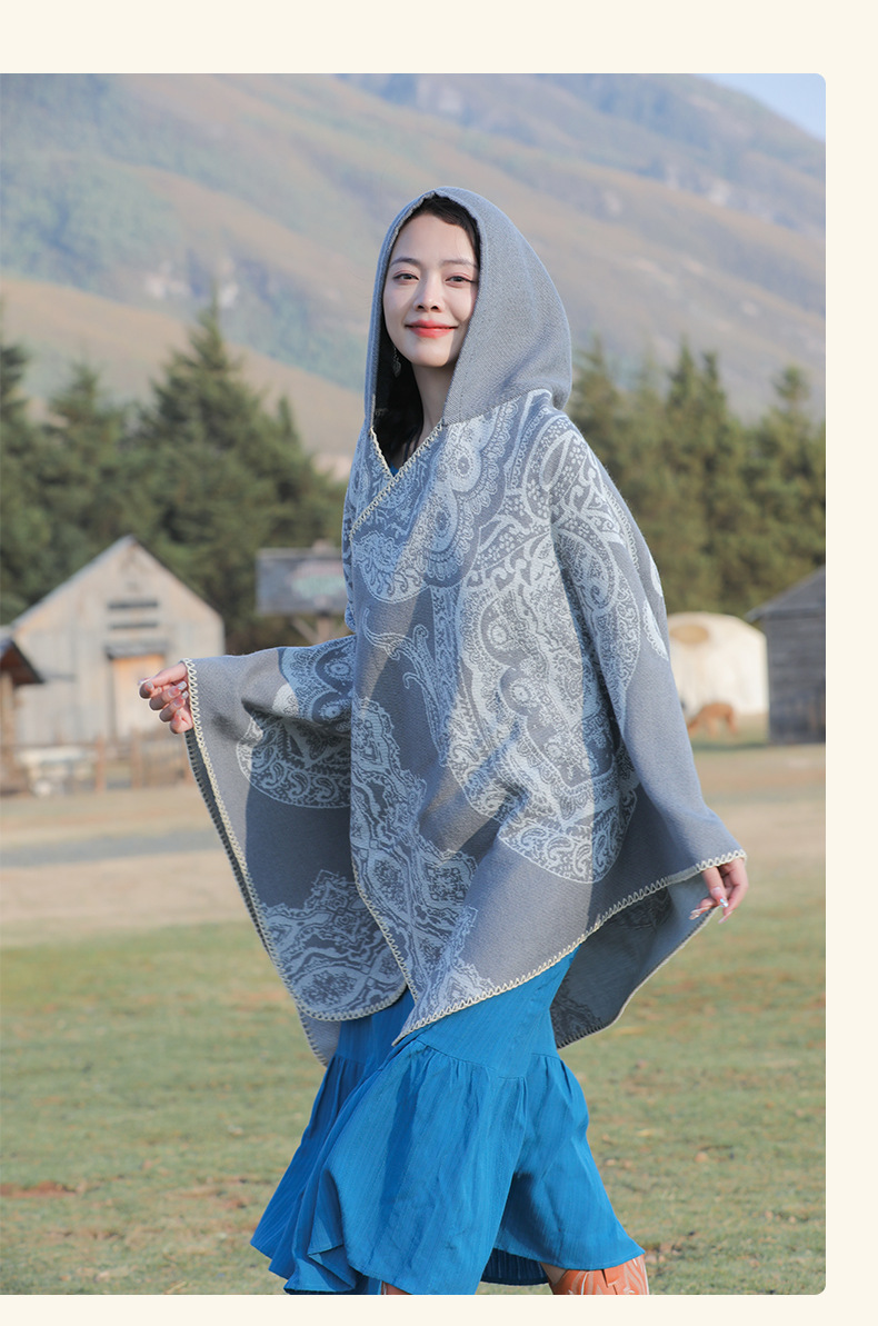 披肩女外搭民族风新款连帽斗篷旅游加厚保暖秋冬流苏围巾披风批发 English | 投诉