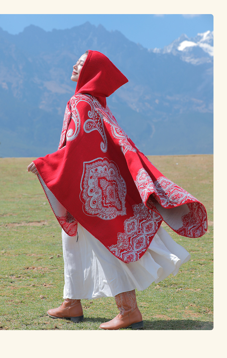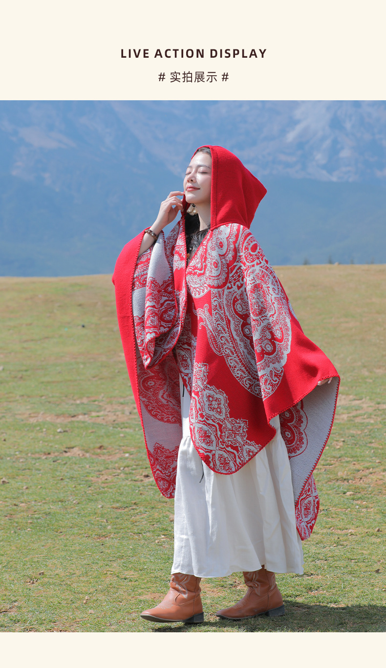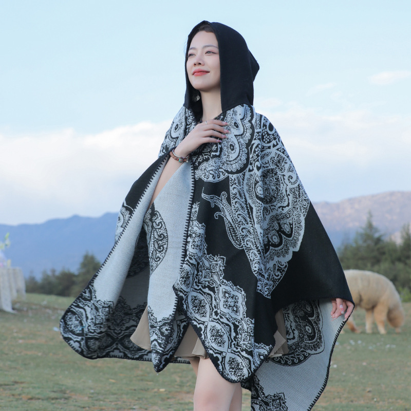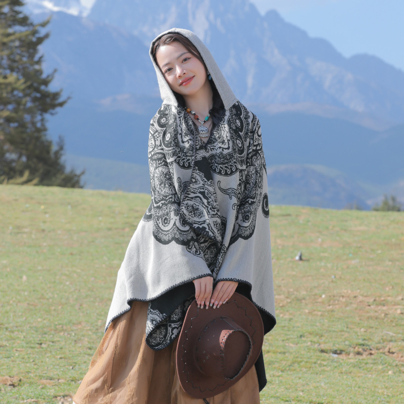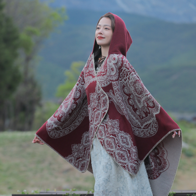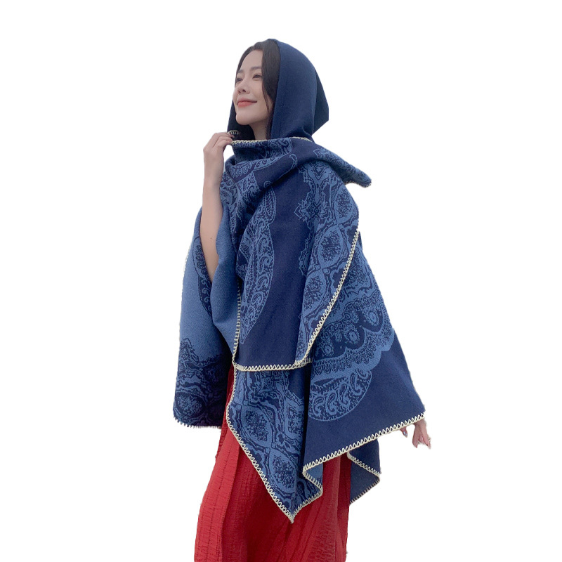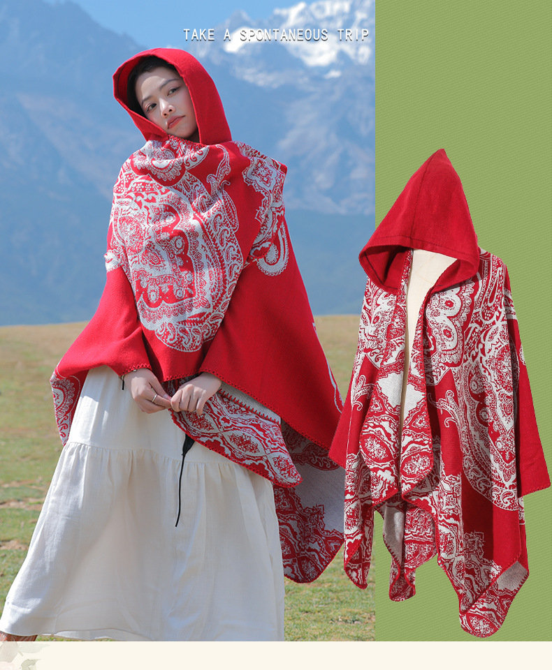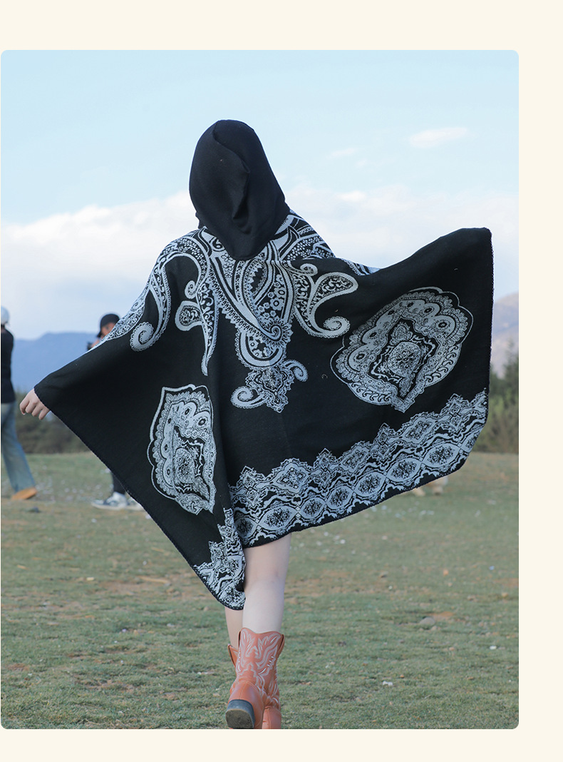 披肩女外搭民族风新款连帽斗篷旅游加厚保暖秋冬流苏围巾披风批发 English | 投诉