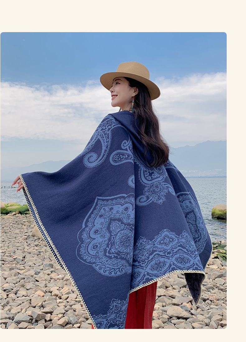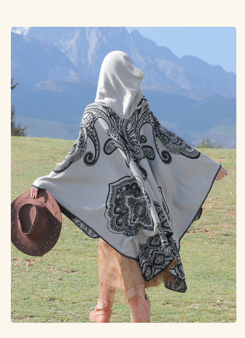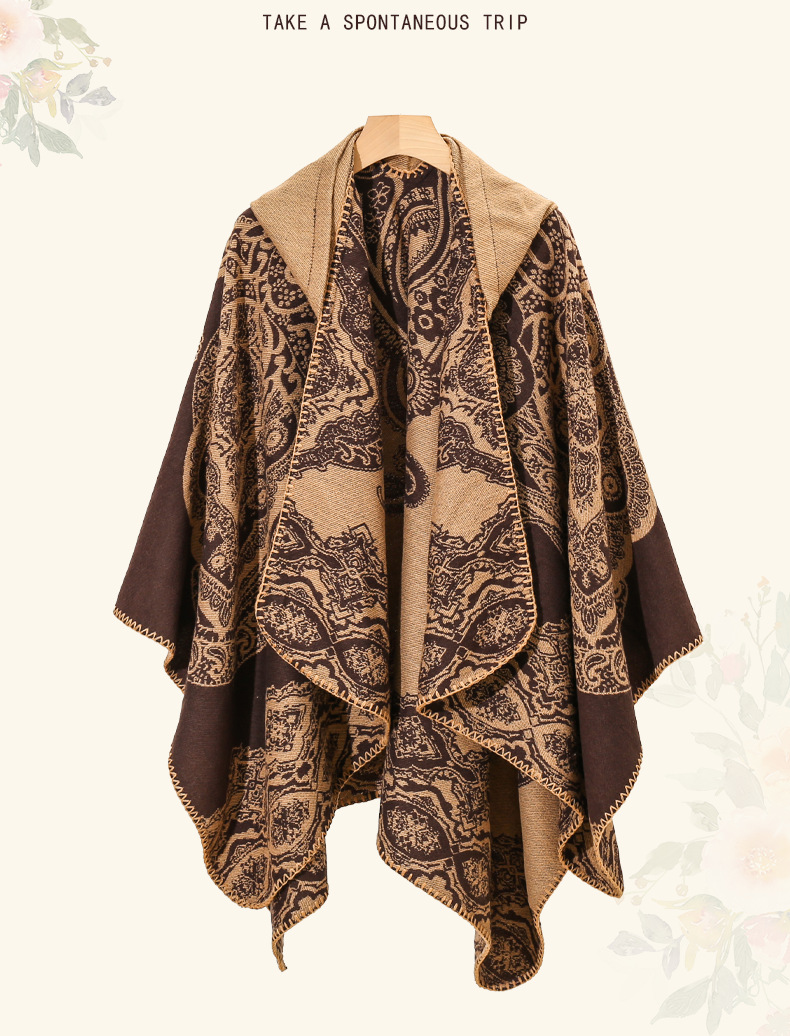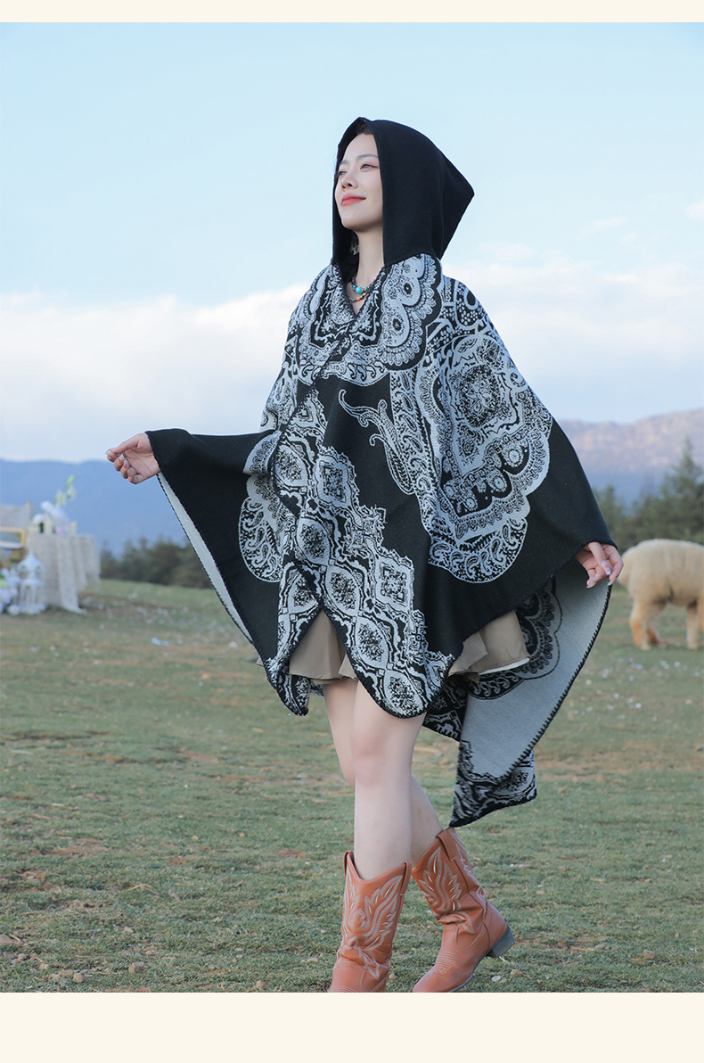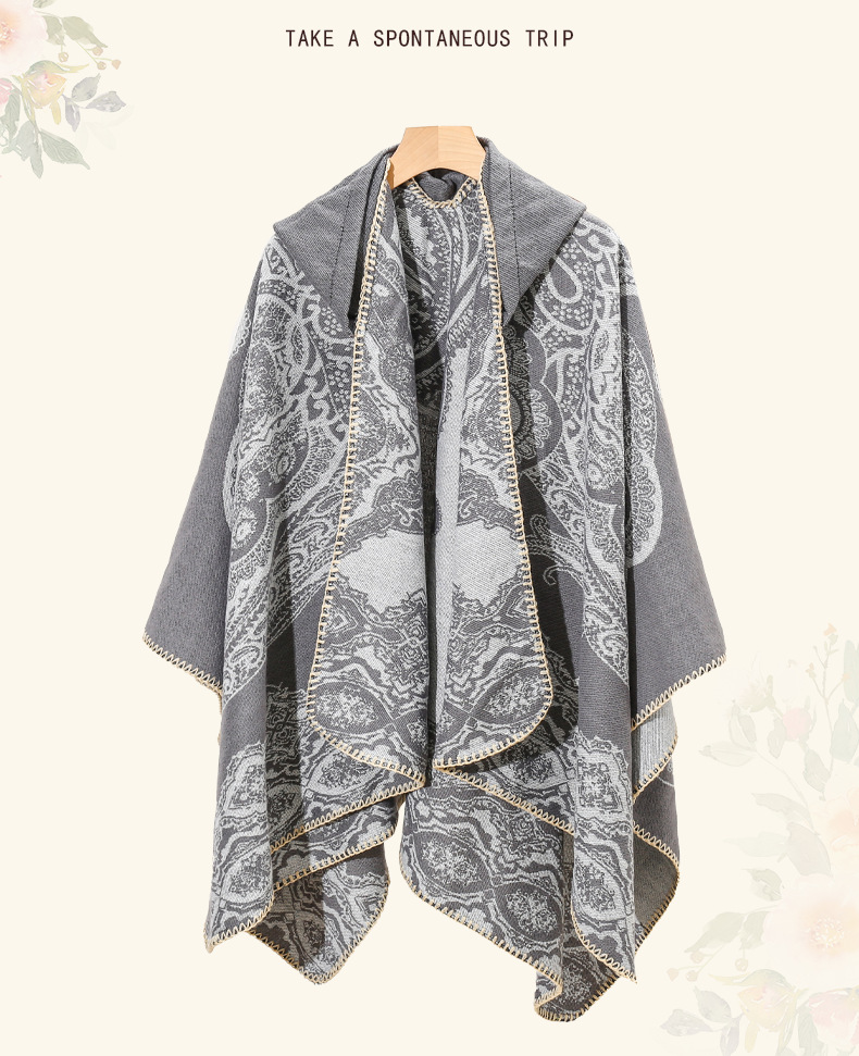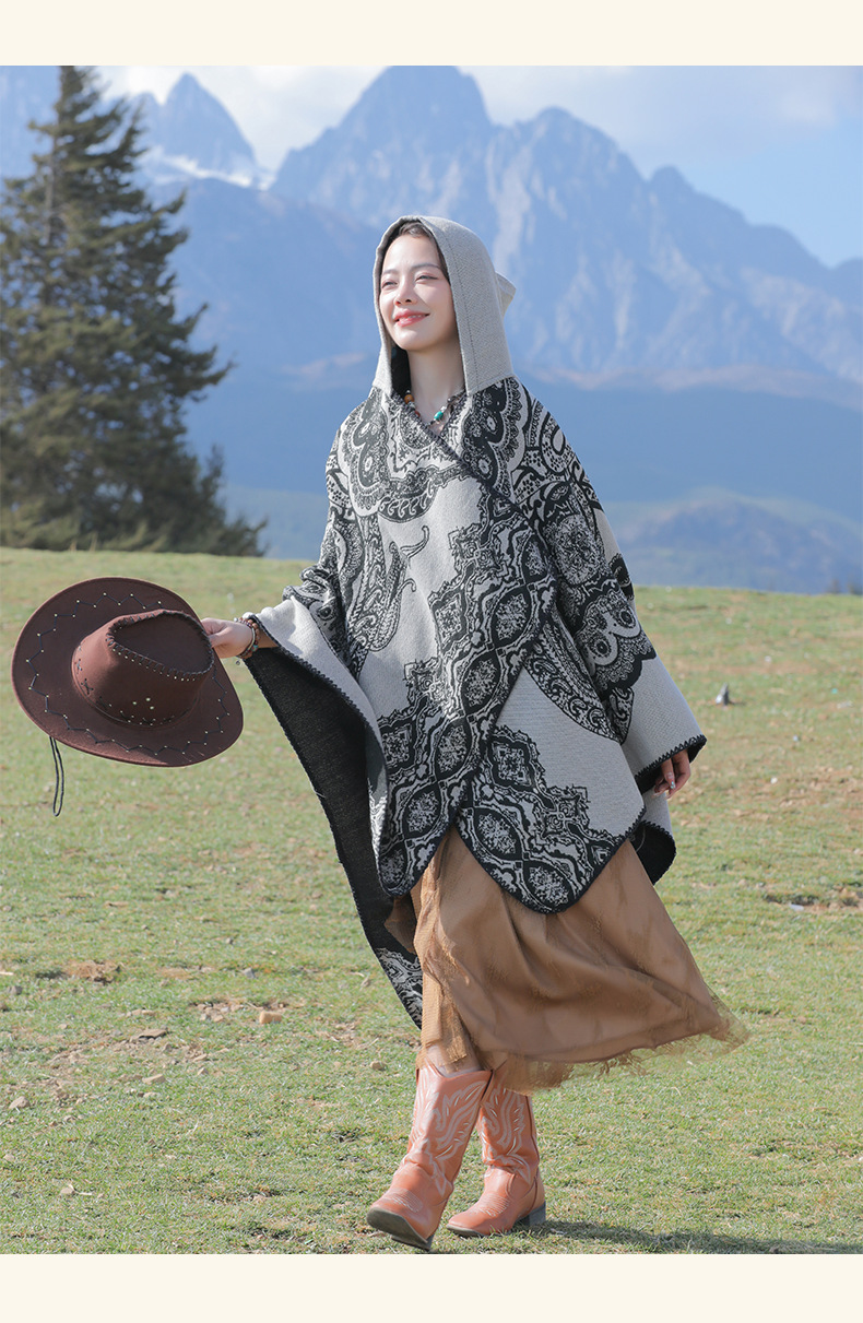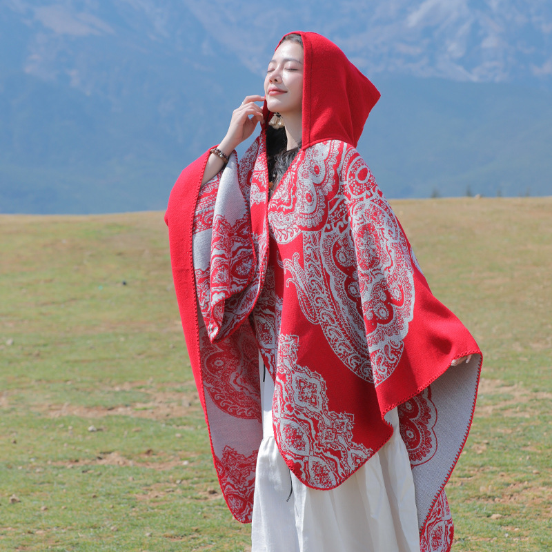 披肩女外搭民族风新款连帽斗篷旅游加厚保暖秋冬流苏围巾披风批发 English | 投诉