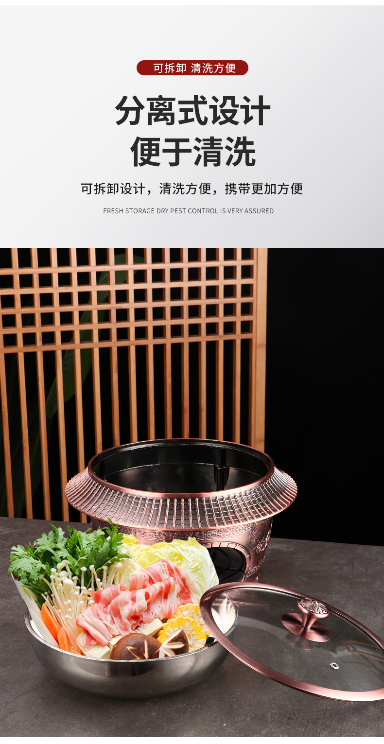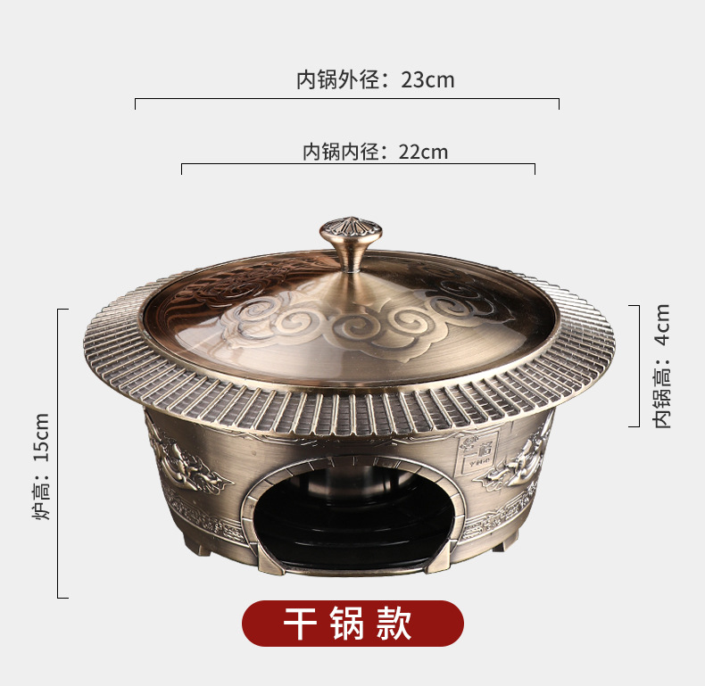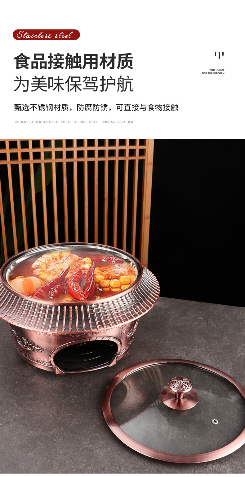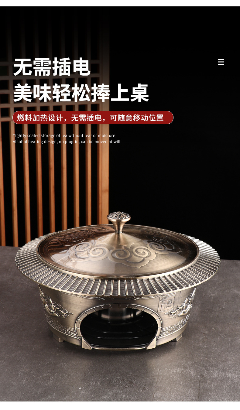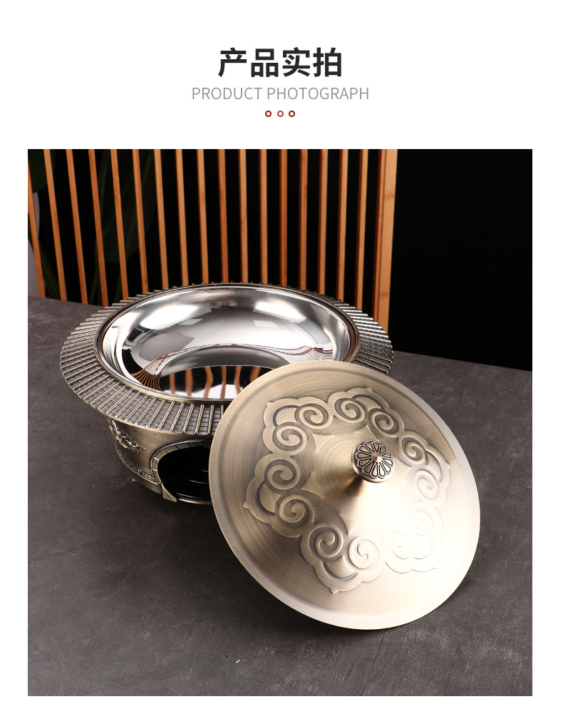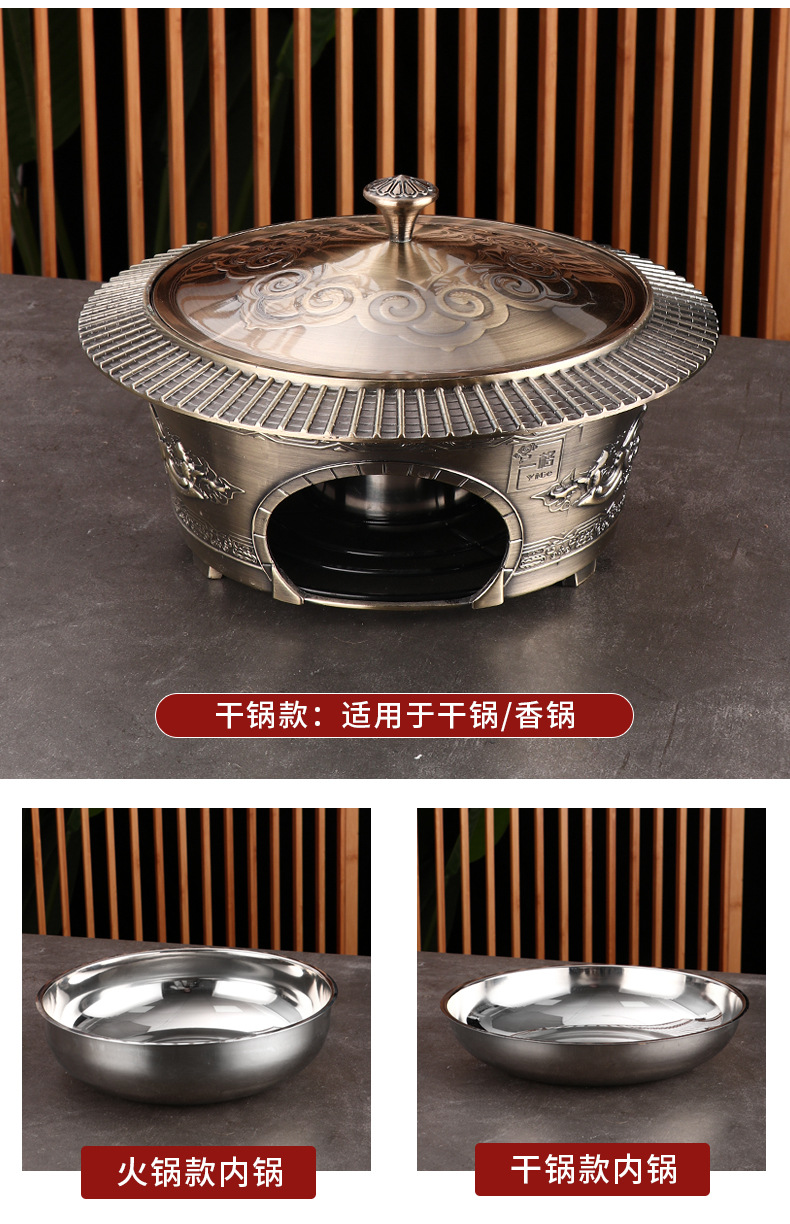 复古宫廷酒精火锅 商用304不锈钢酒店餐厅分体复古酒精干锅火锅