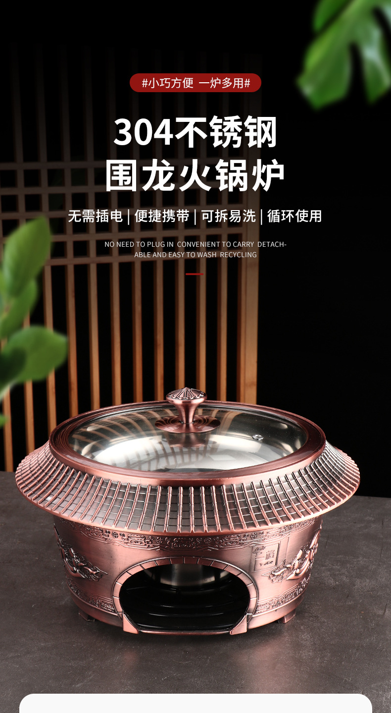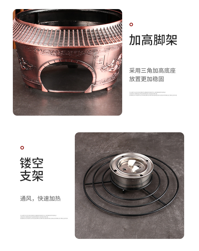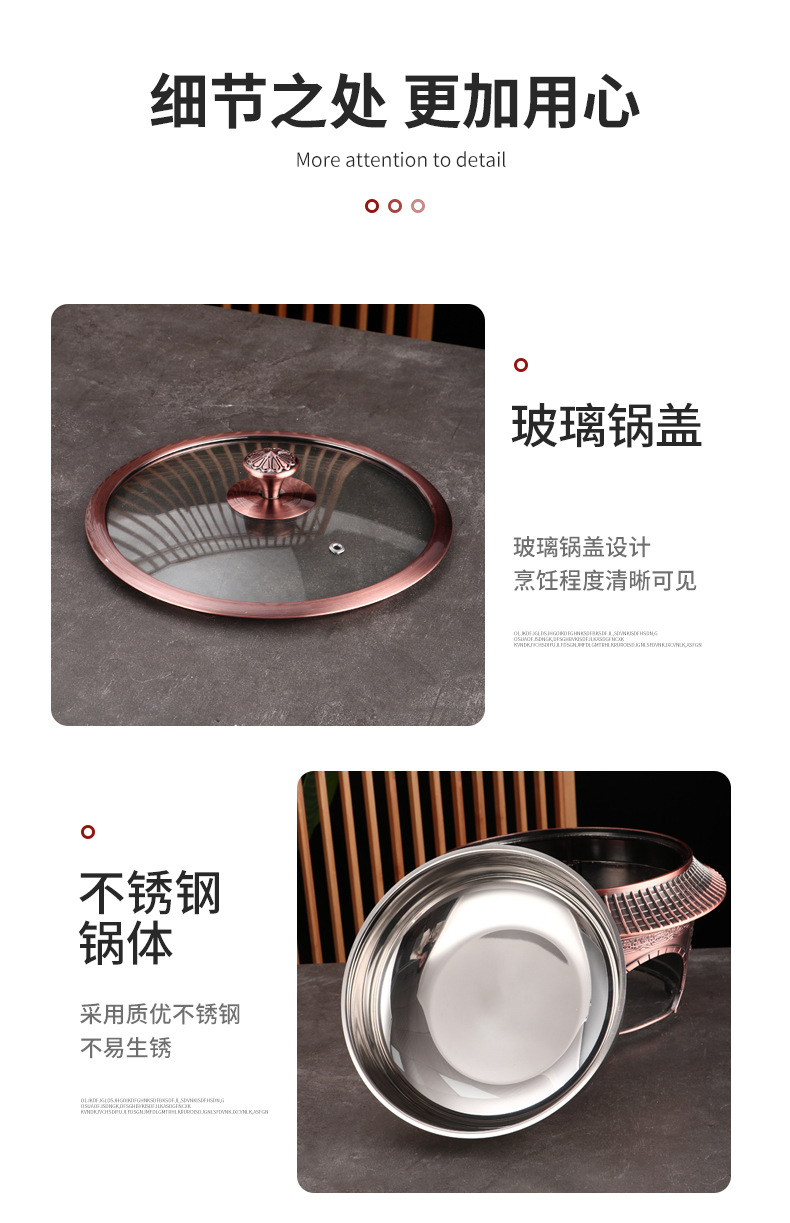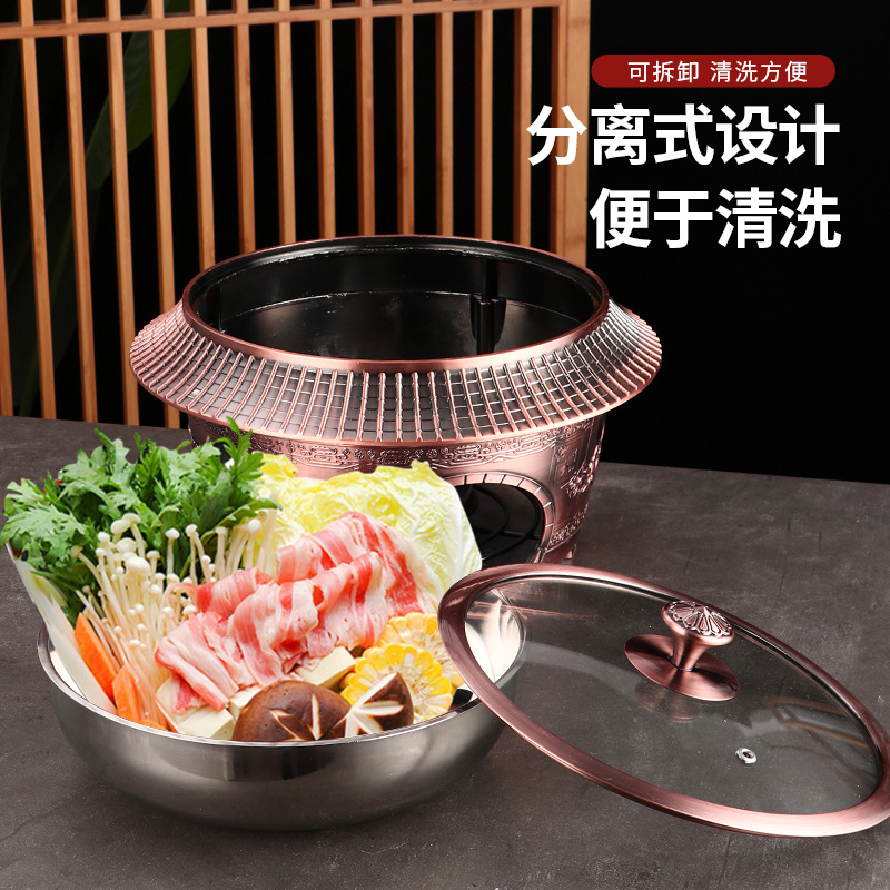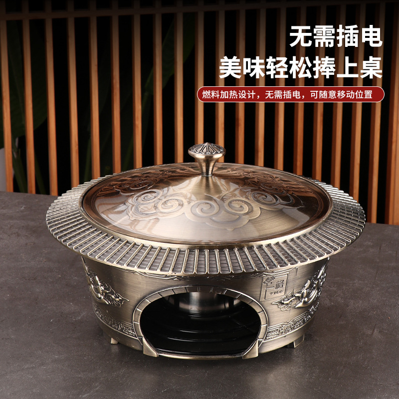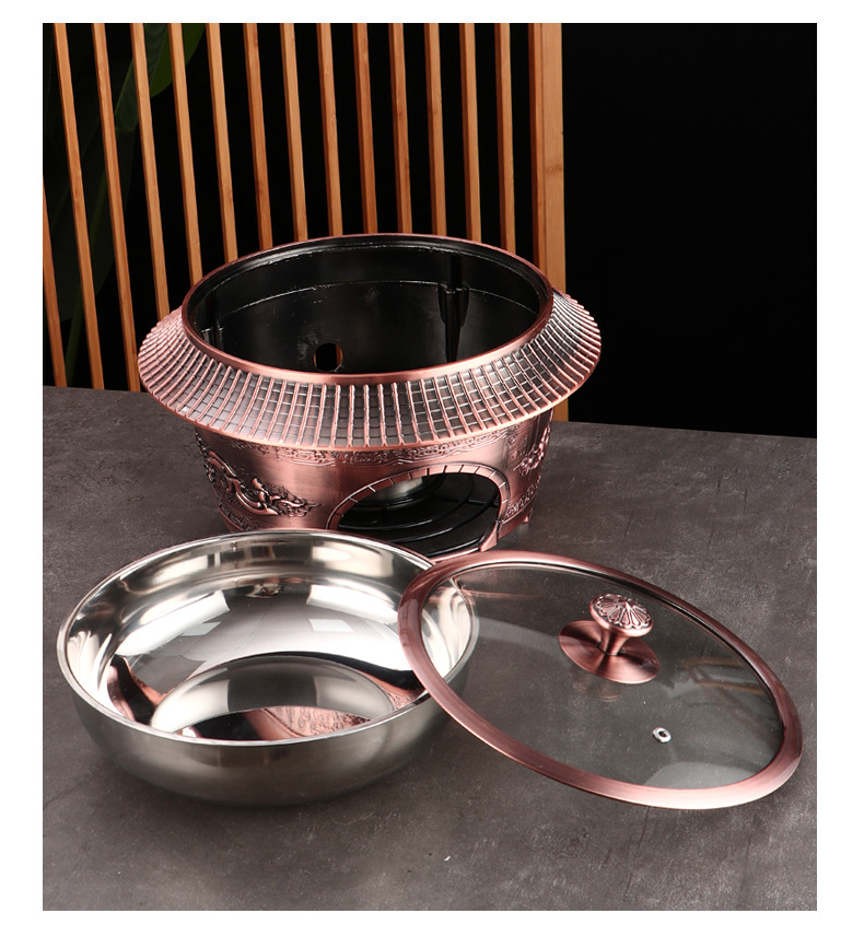 复古宫廷酒精火锅 商用304不锈钢酒店餐厅分体复古酒精干锅火锅