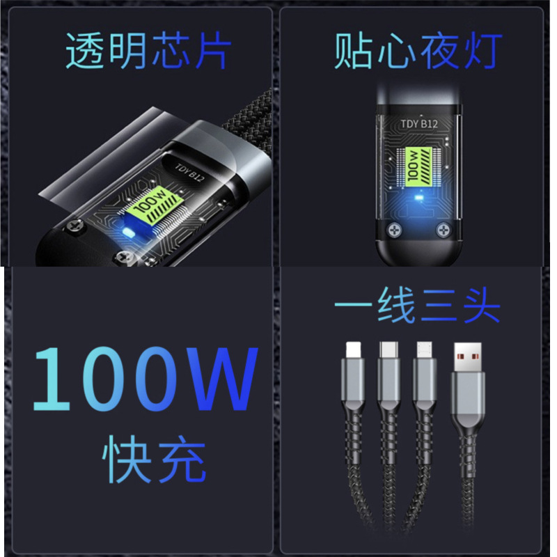 产品接口 :一拖三设计 适用平果接口 安卓接口 Type-c 接口 三种接口 随意选