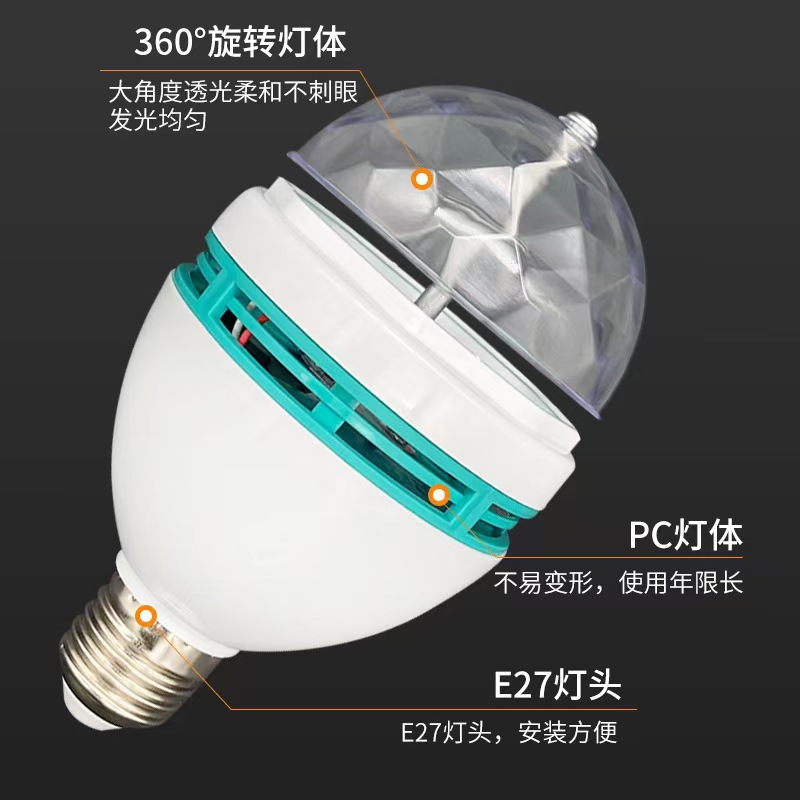 变色魔球灯KTV氛围灯七彩旋转灯泡闪光舞台灯房间蹦迪灯酒吧家用