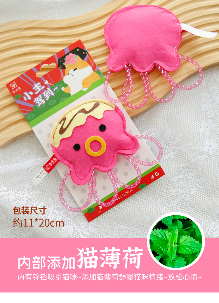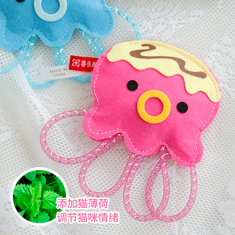 喜多鱼 原创新品猫咪毛毡猫薄荷卡通玩偶章鱼小丸子磨牙宠物玩具