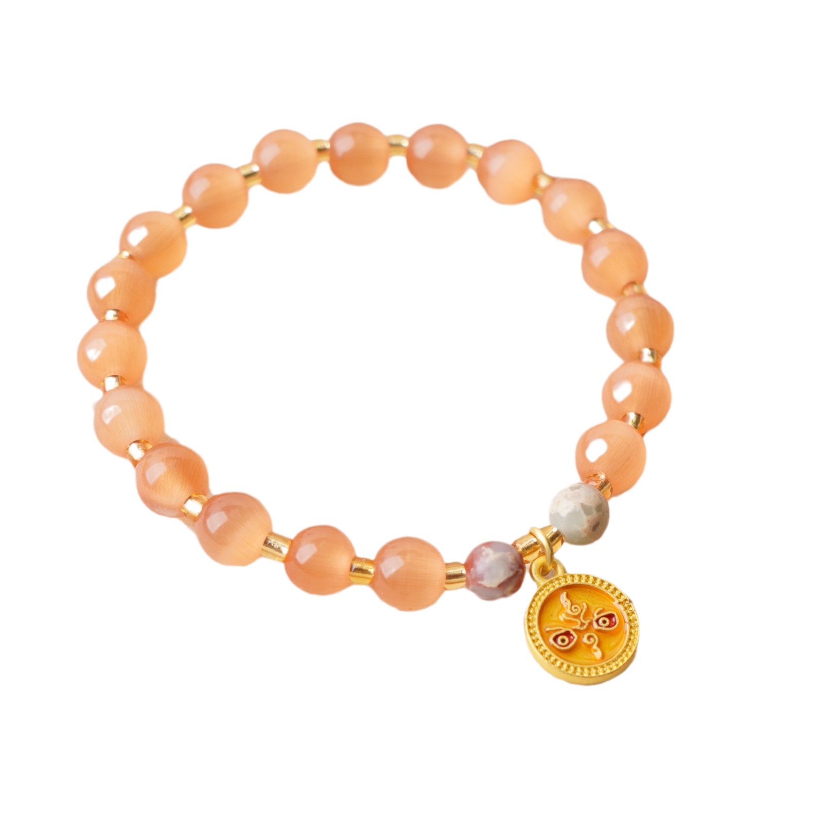 新中式橘猫眼手链女小众简约精致粉珠手串显白琉璃手链送闺蜜饰品
