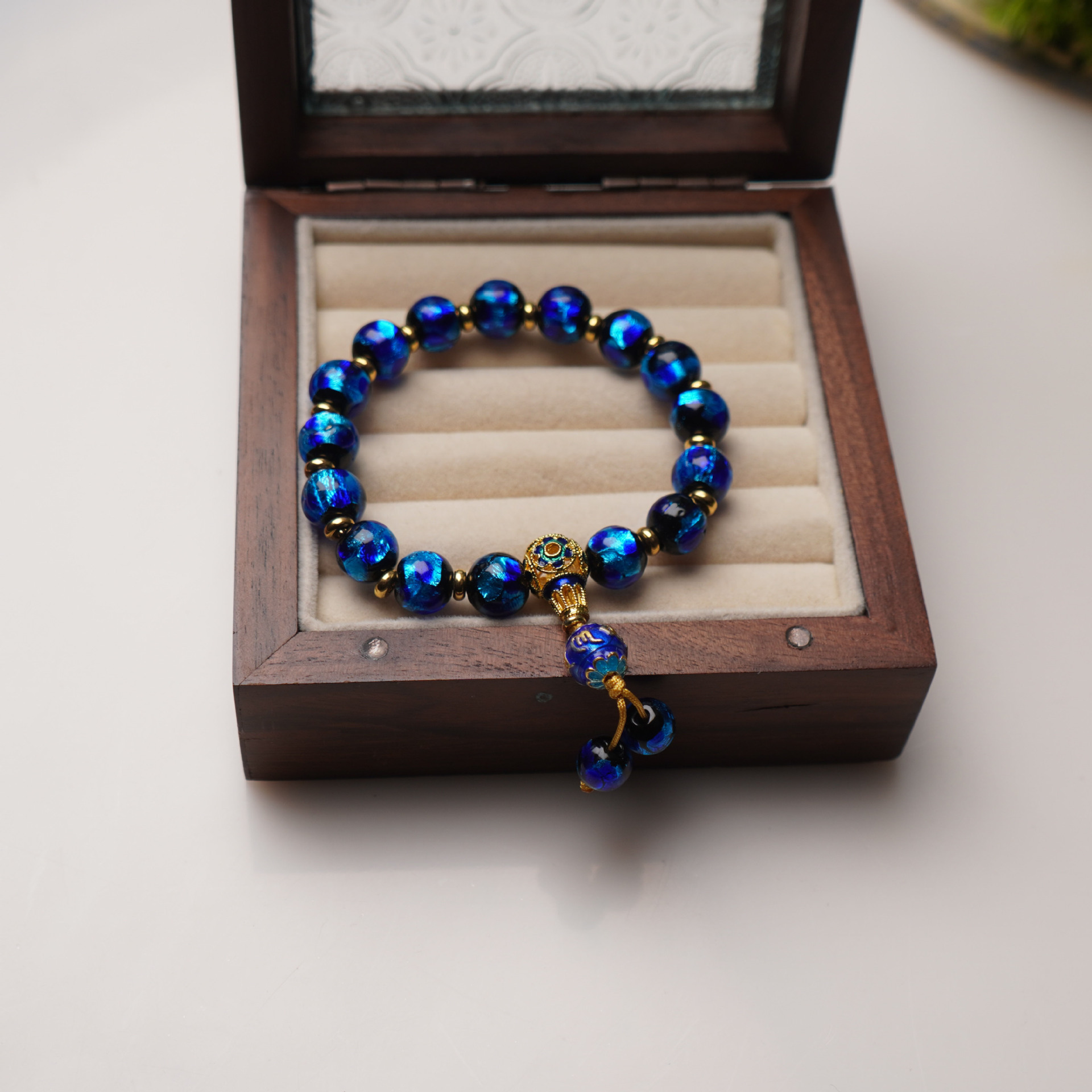 蓝色香灰金箔琉璃手链 ¥0 19990条可售