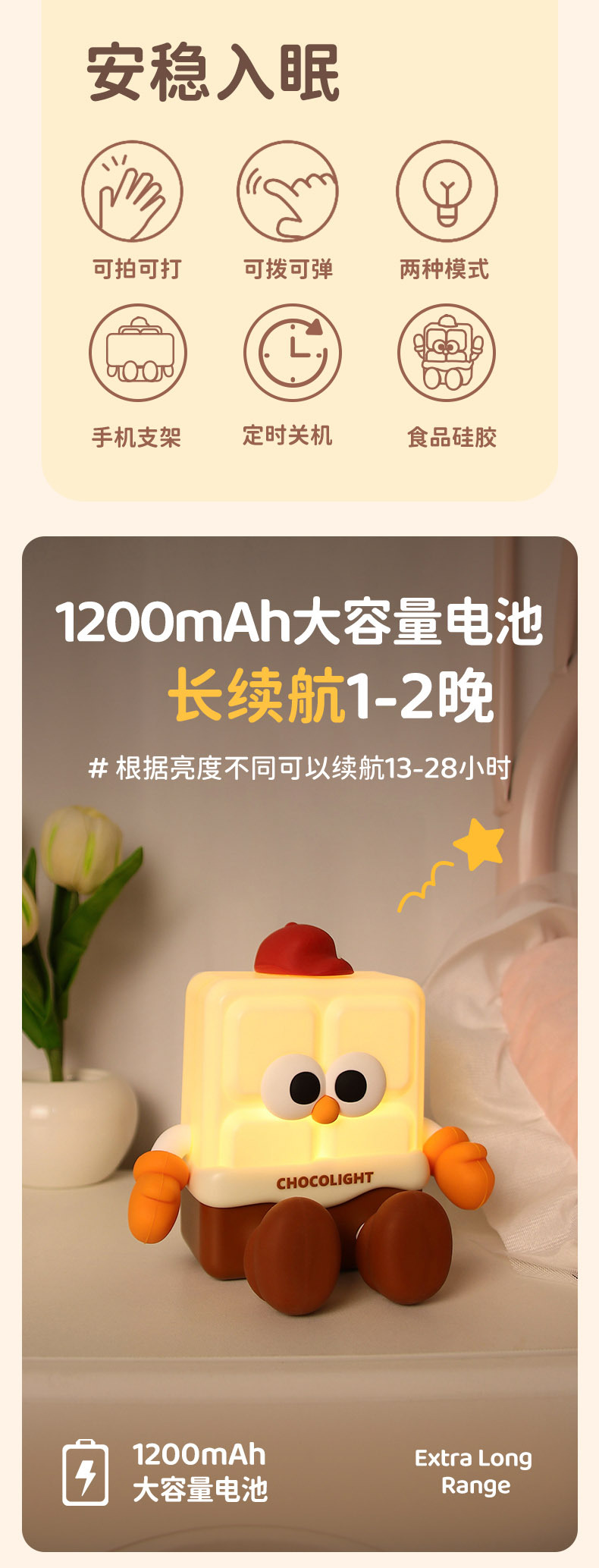 巧克力小夜灯卧室睡眠可爱趣味伴睡氛围灯 硅胶女生生日礼物 投诉