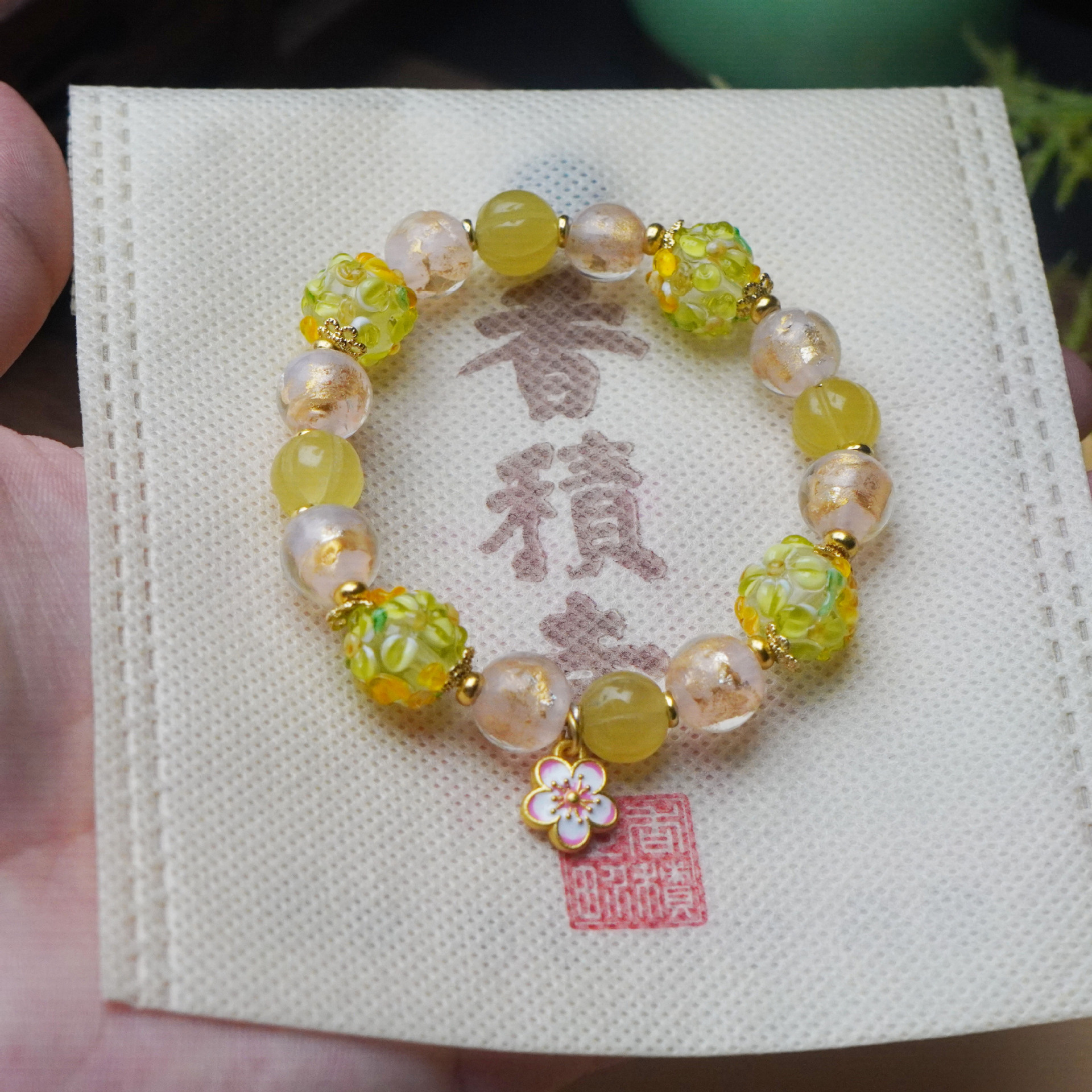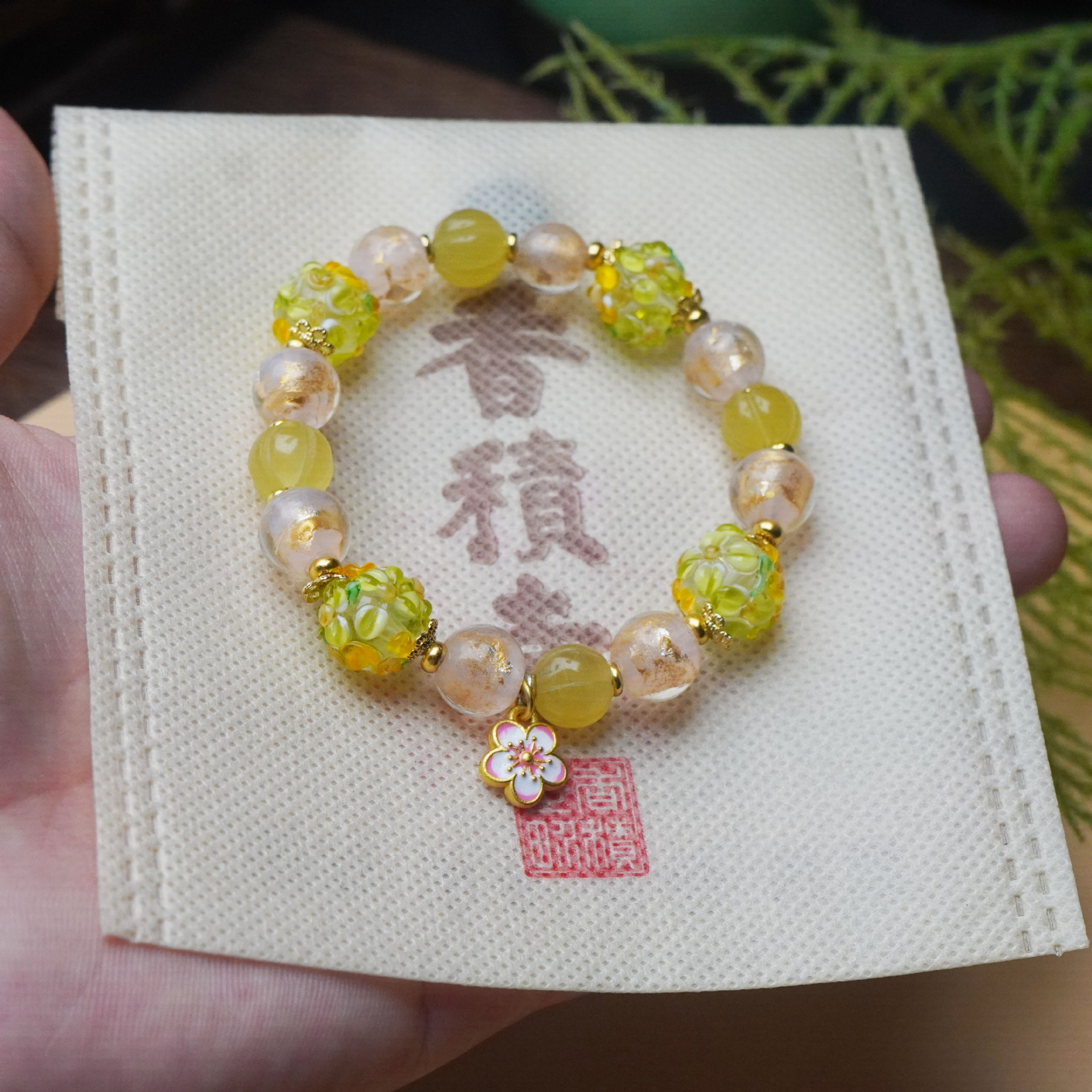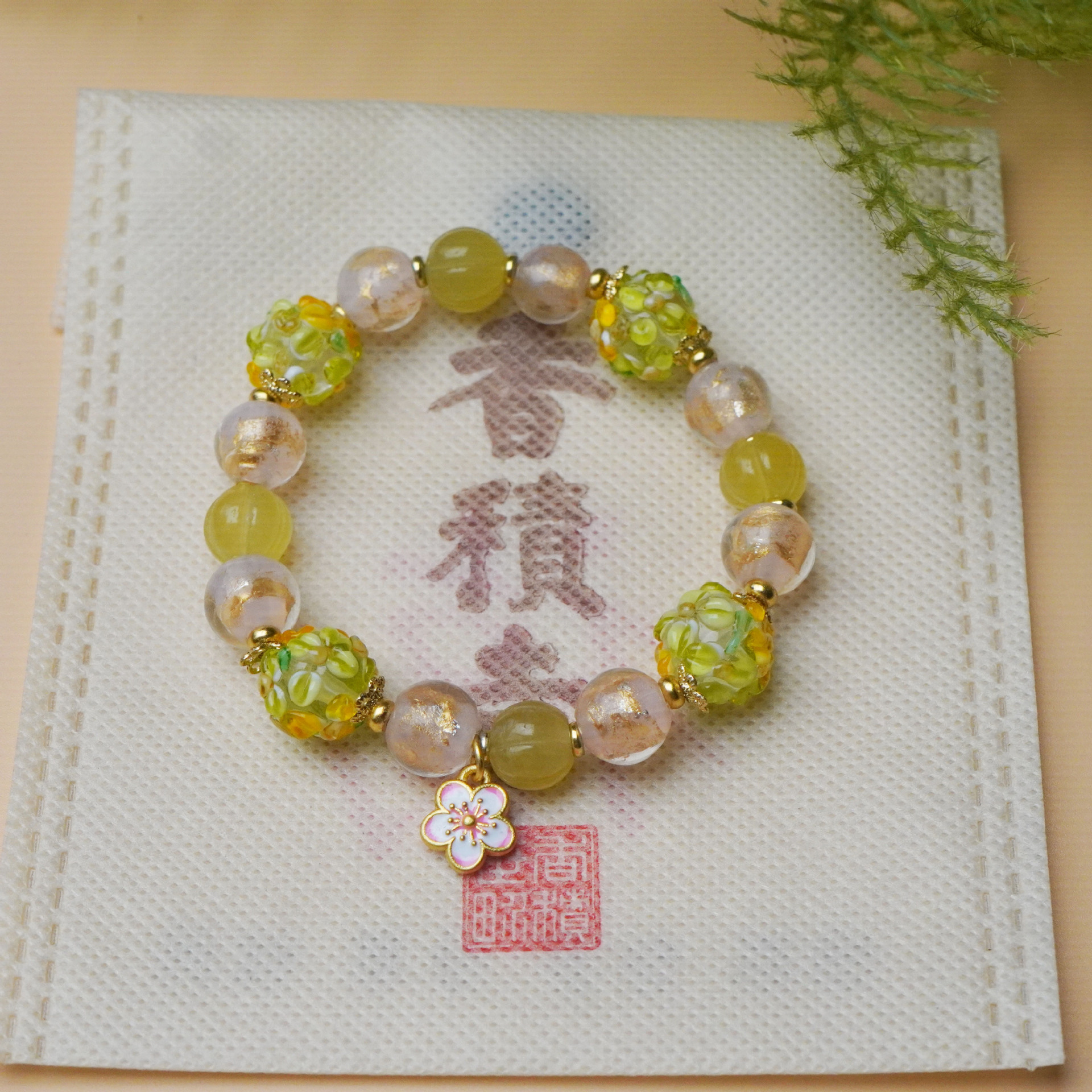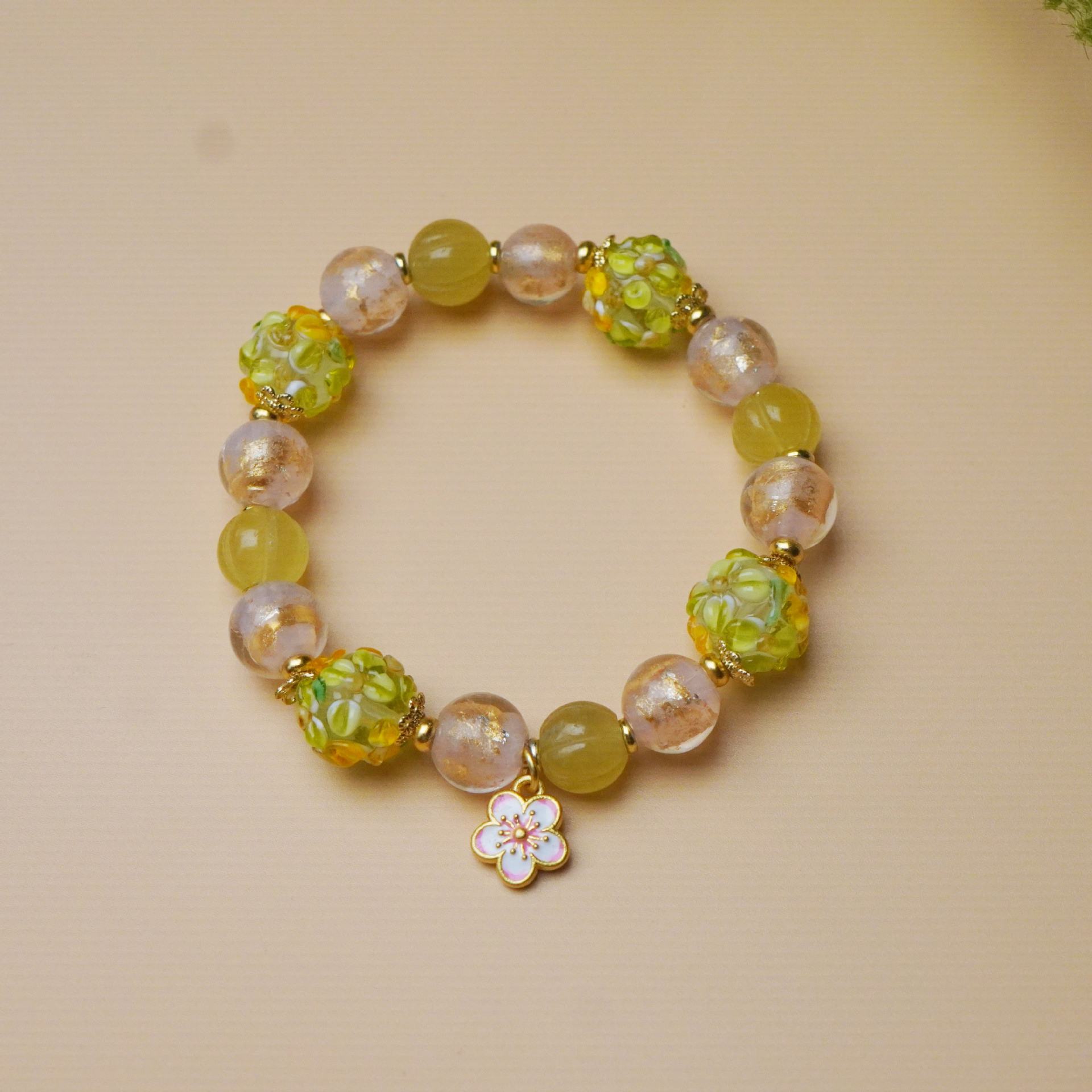 寺庙同款绿色小花簇琉璃花球手串甜美小清新桃花吊坠手链女高级感
