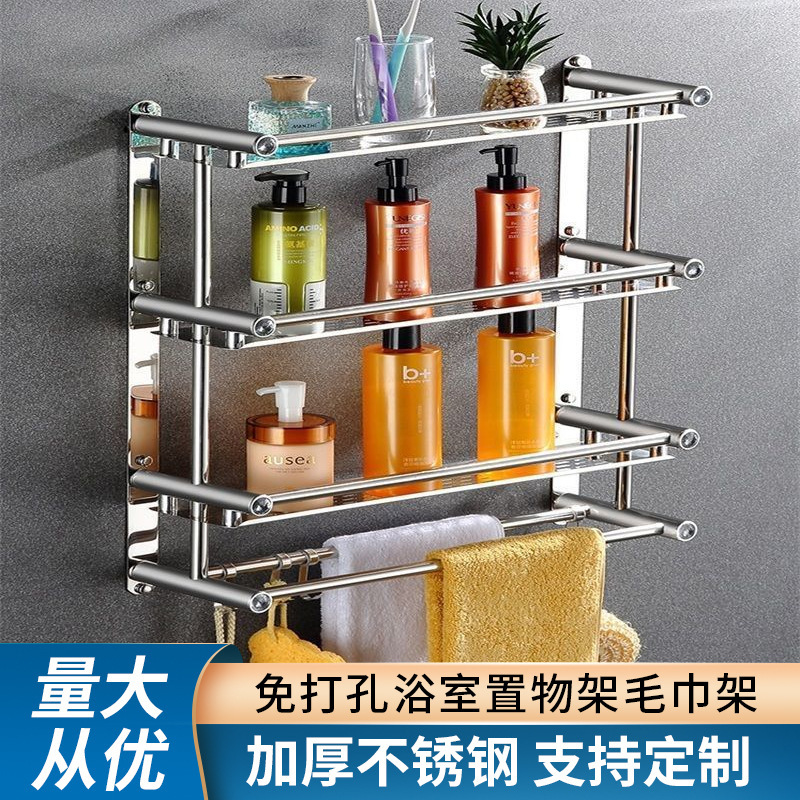 现货简约厕所置物架厨房免打孔浴巾架卫生间卫浴挂件挂墙置物架