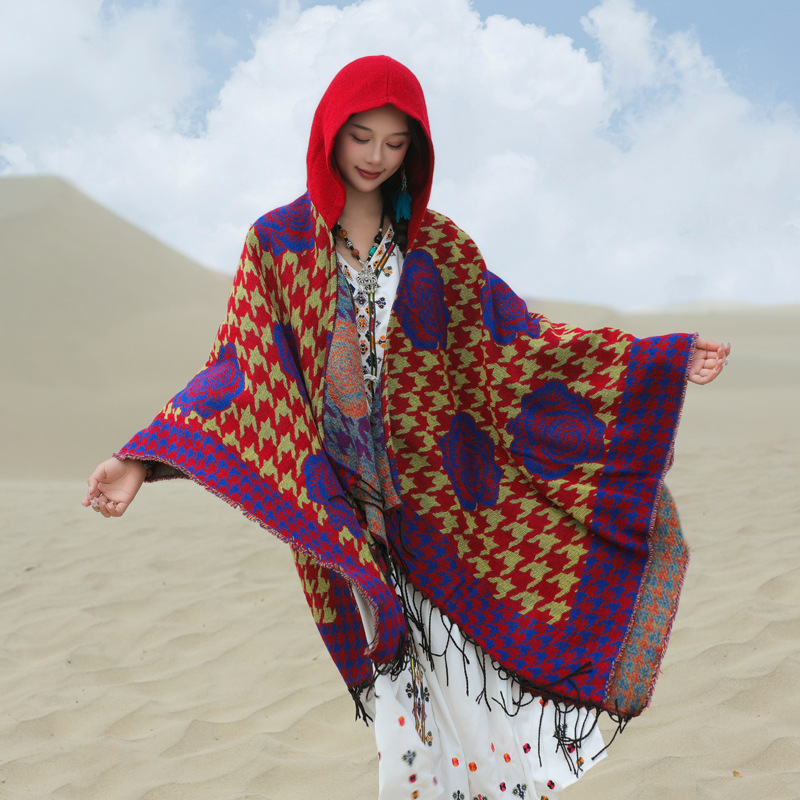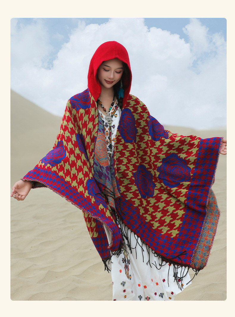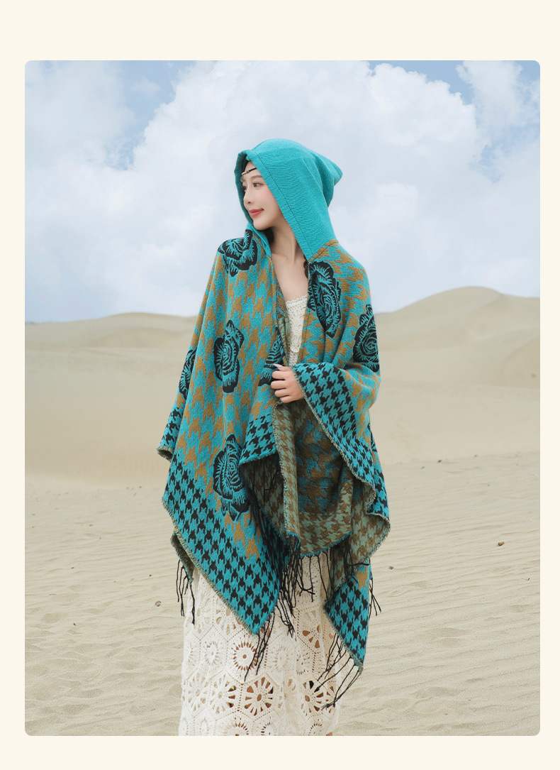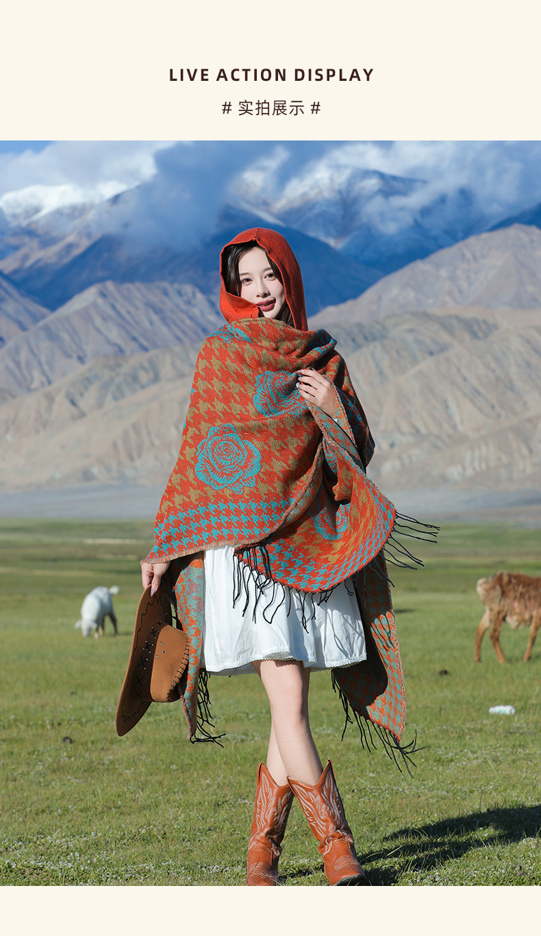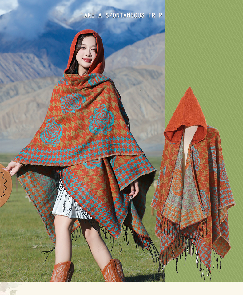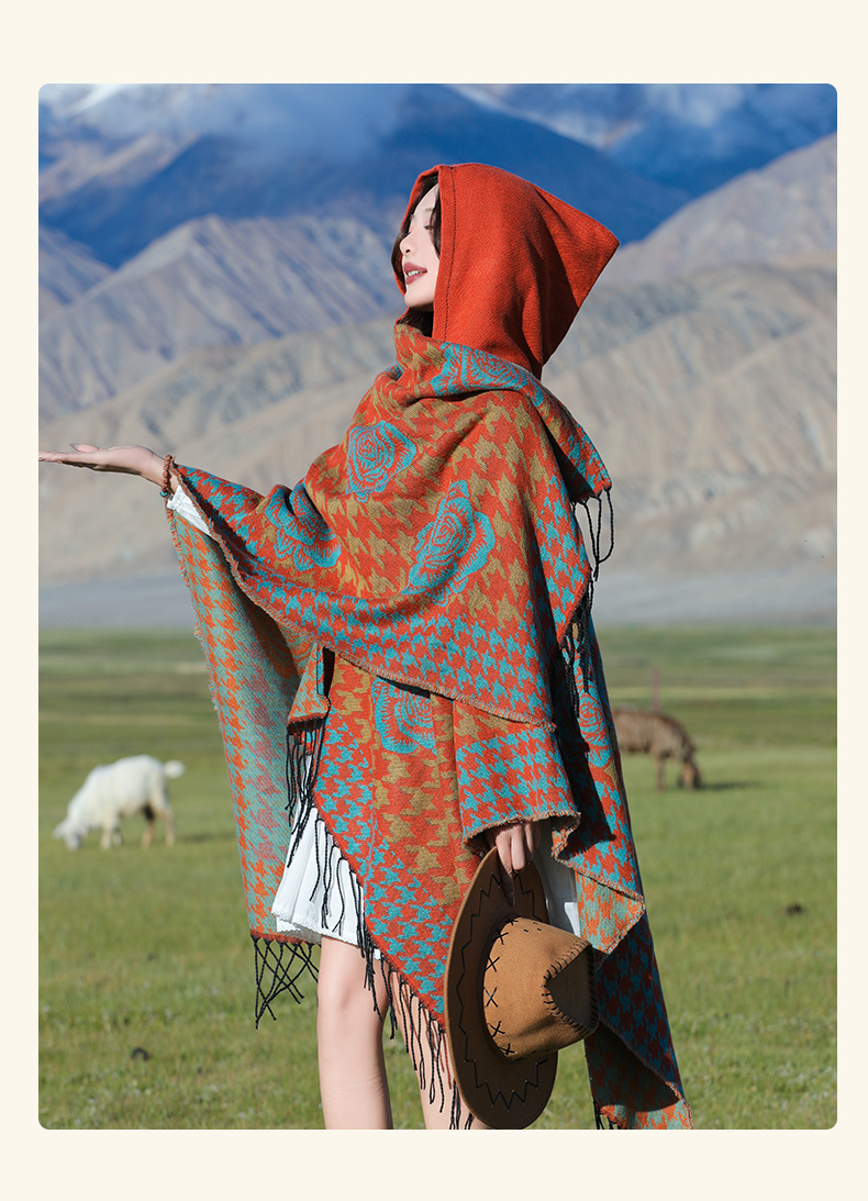斗篷外套女民族风围巾春秋韩版百搭云南旅游拍照2024新款连帽披肩 English | 投诉