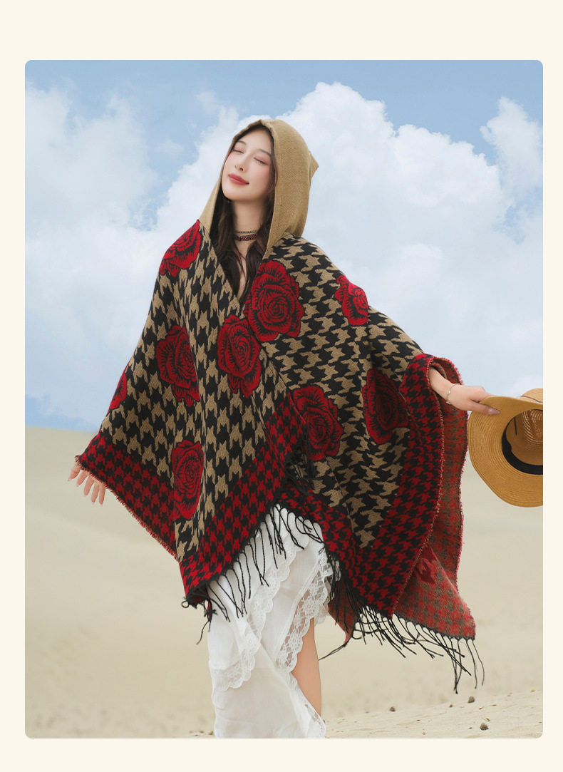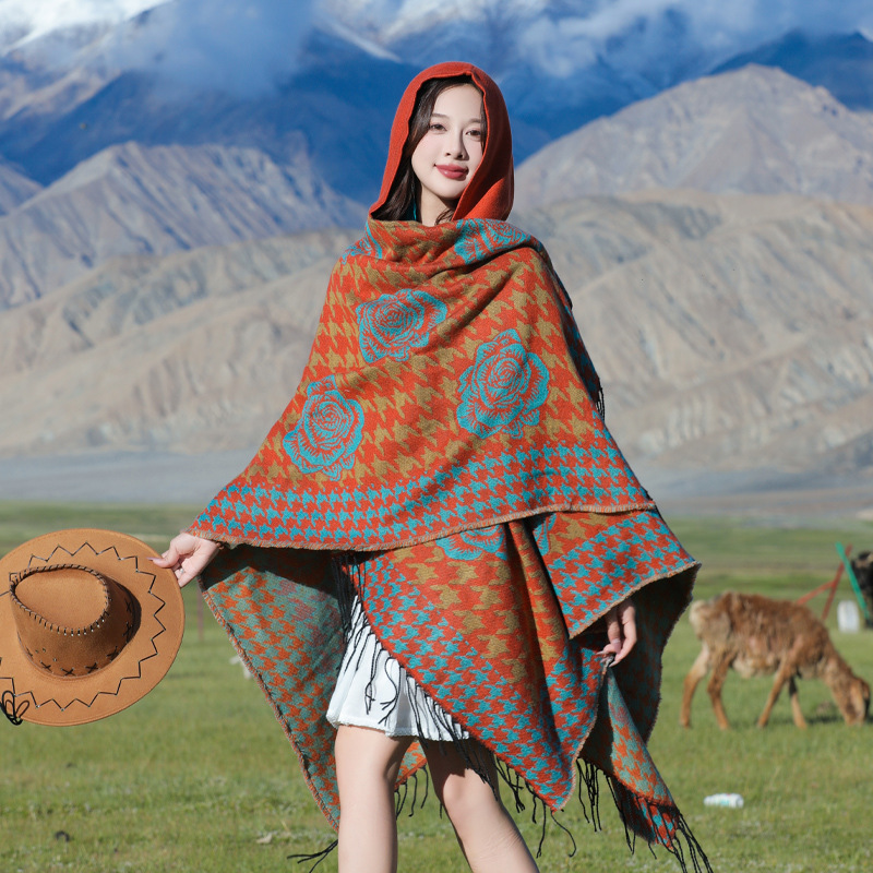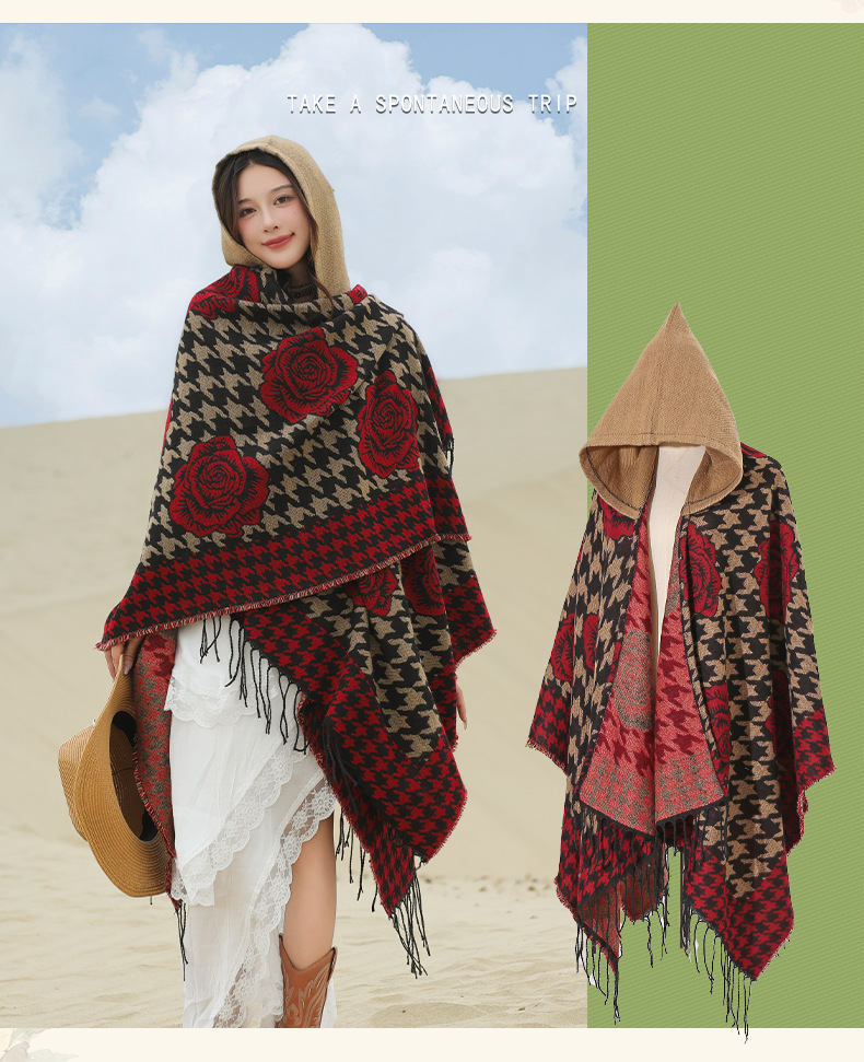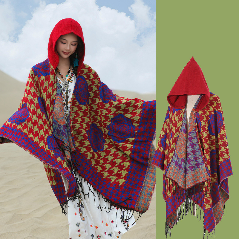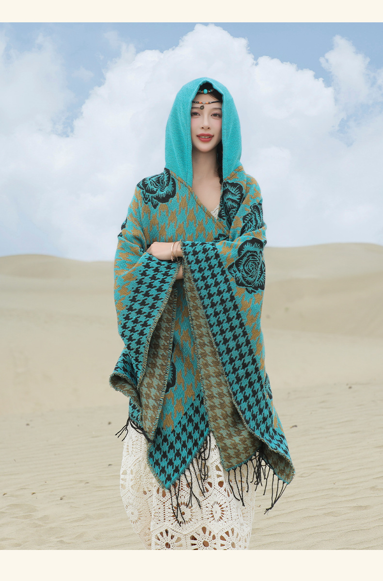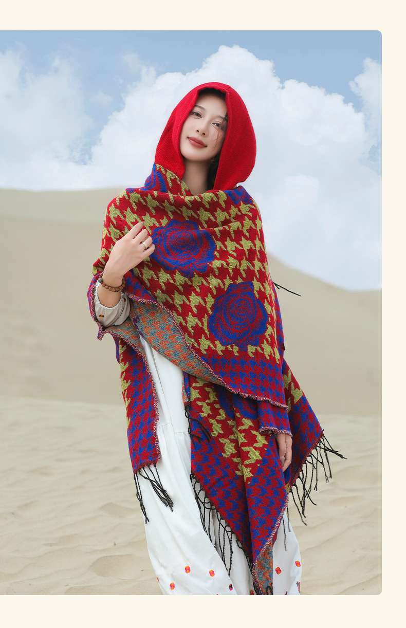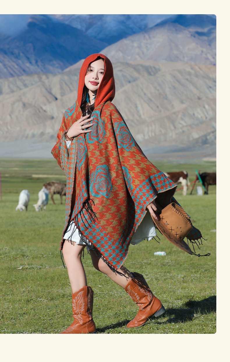 斗篷外套女民族风围巾春秋韩版百搭云南旅游拍照2024新款连帽披肩 English | 投诉