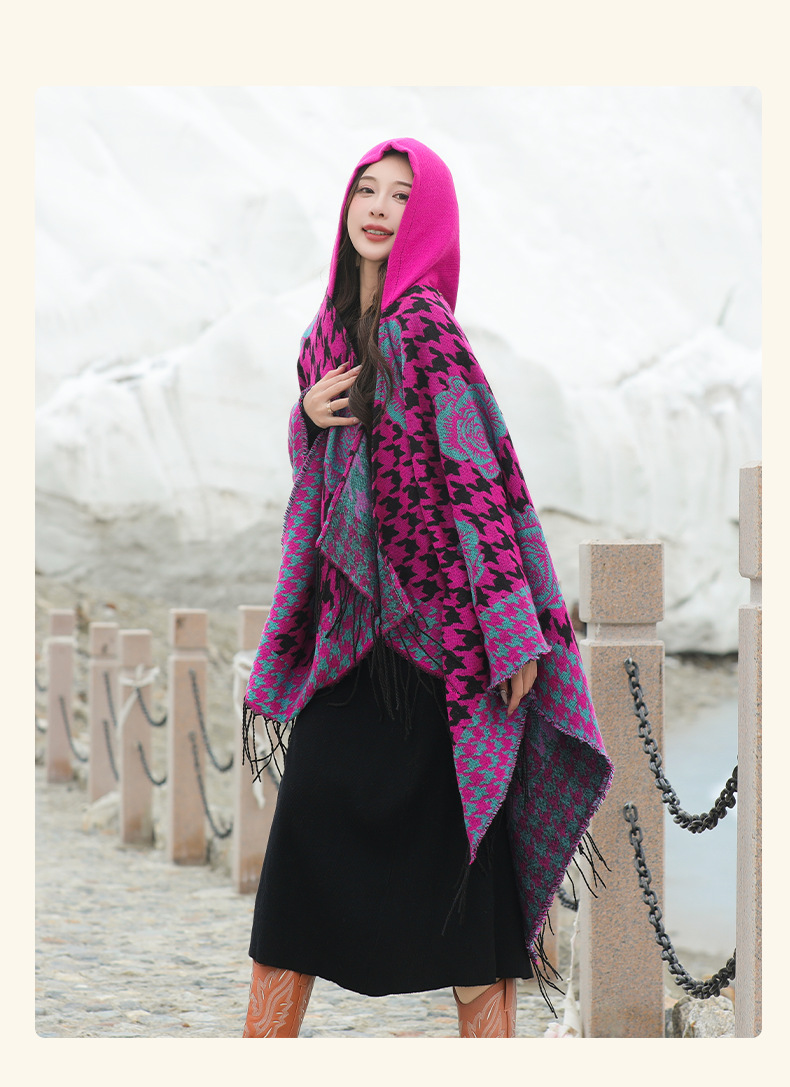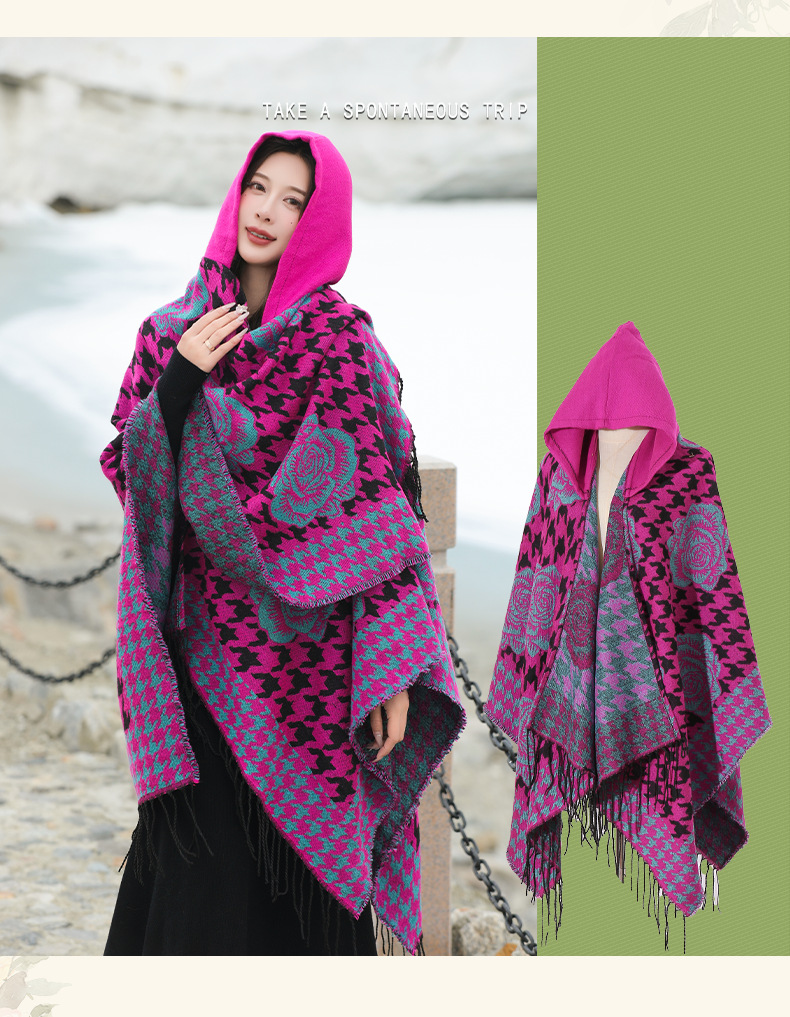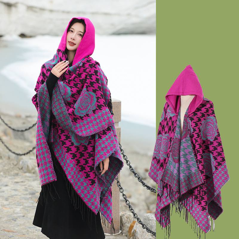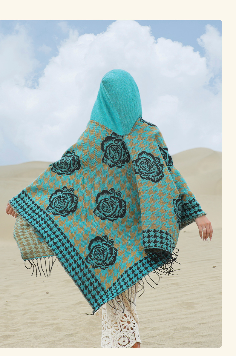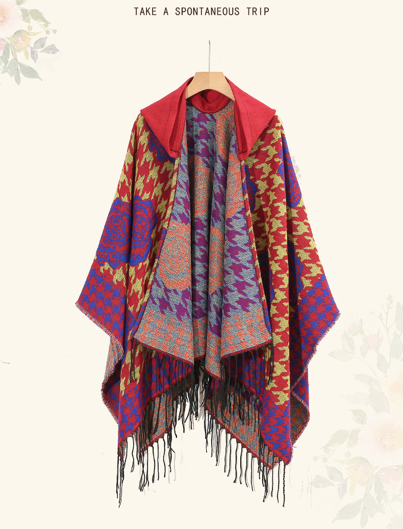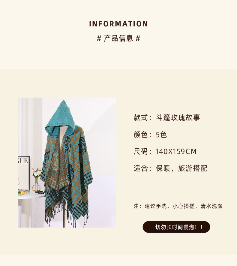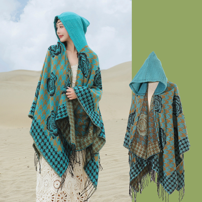 斗篷外套女民族风围巾春秋韩版百搭云南旅游拍照2024新款连帽披肩 English | 投诉