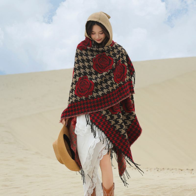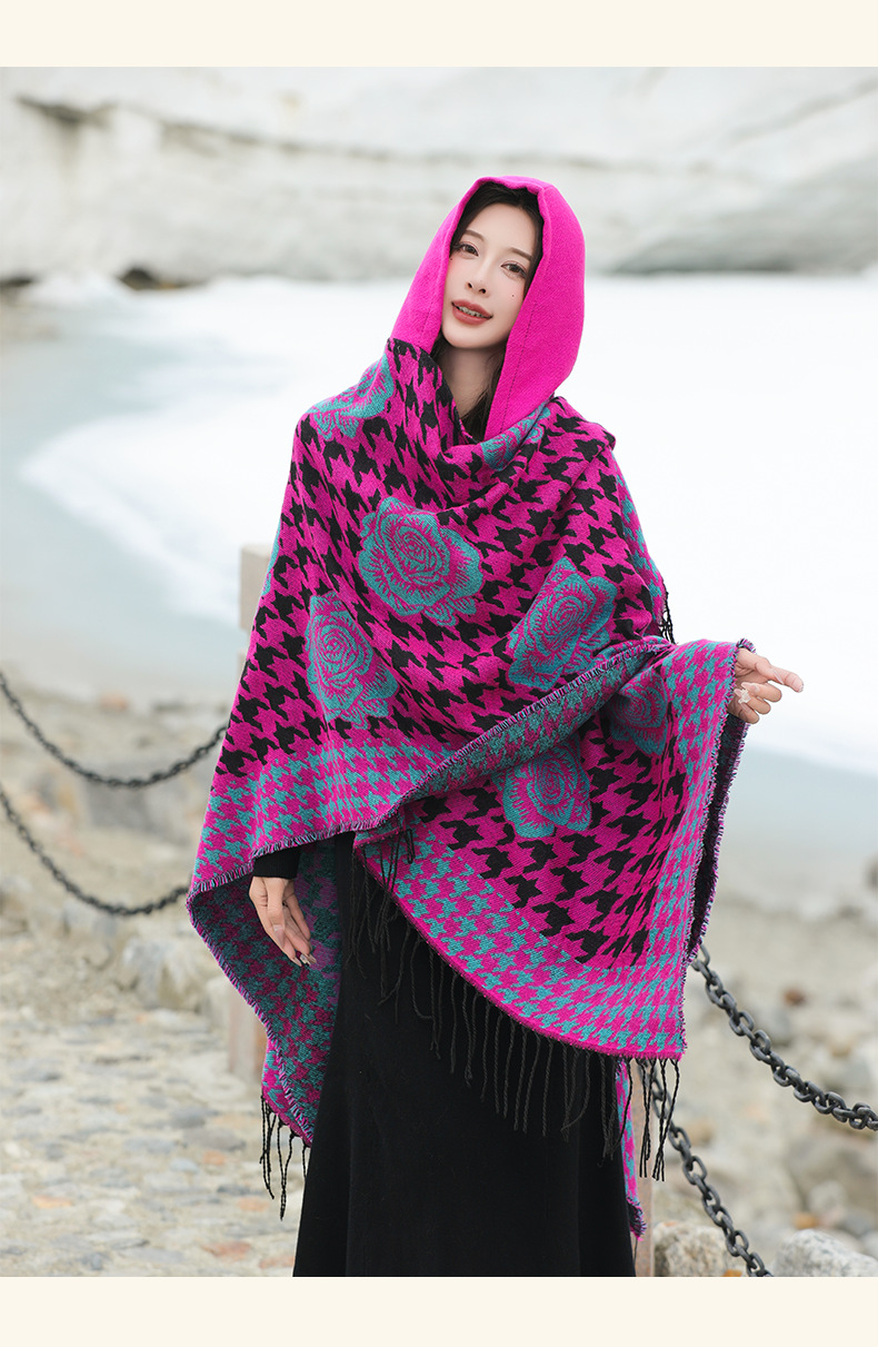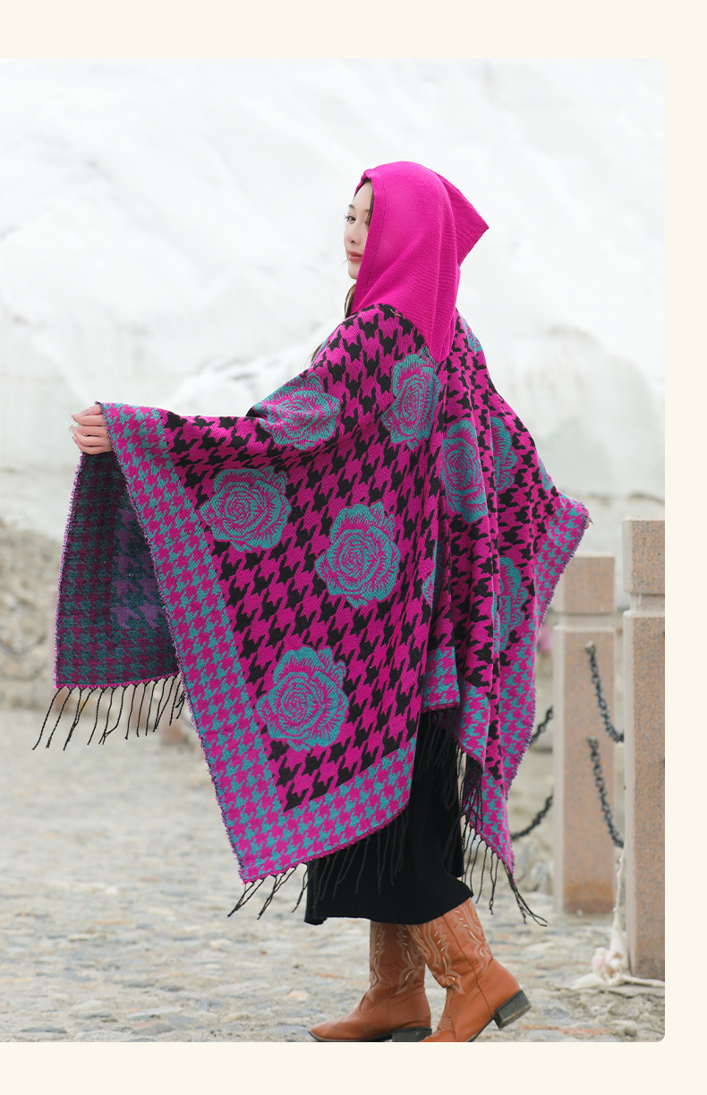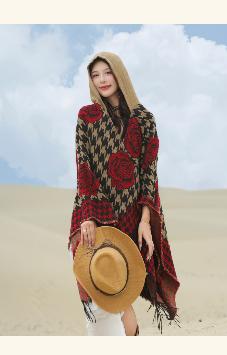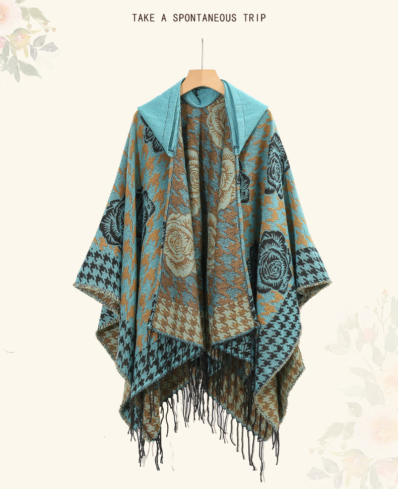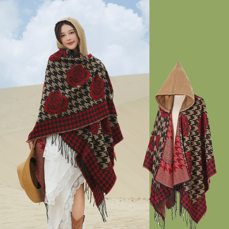 斗篷外套女民族风围巾春秋韩版百搭云南旅游拍照2024新款连帽披肩 English | 投诉