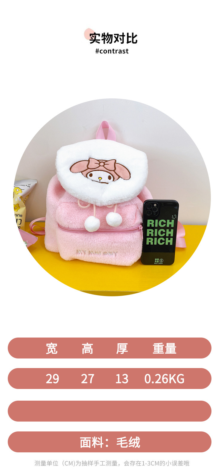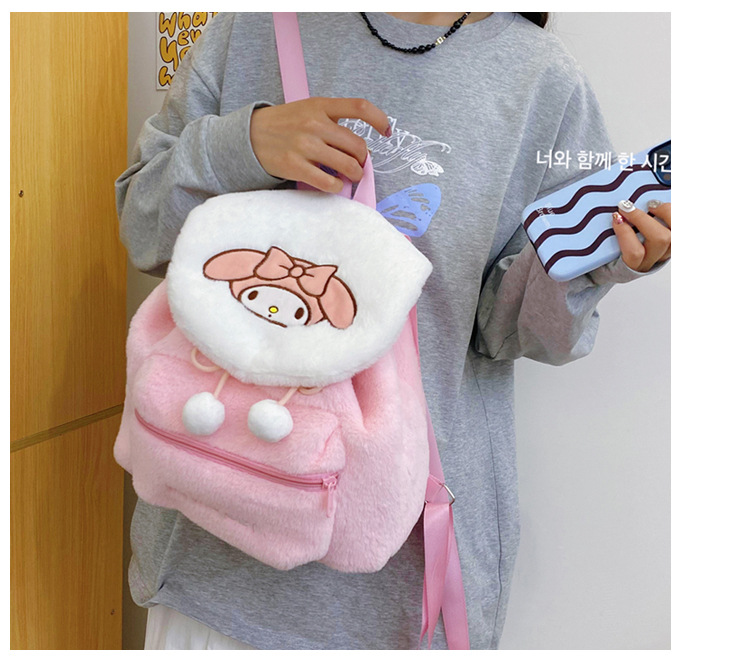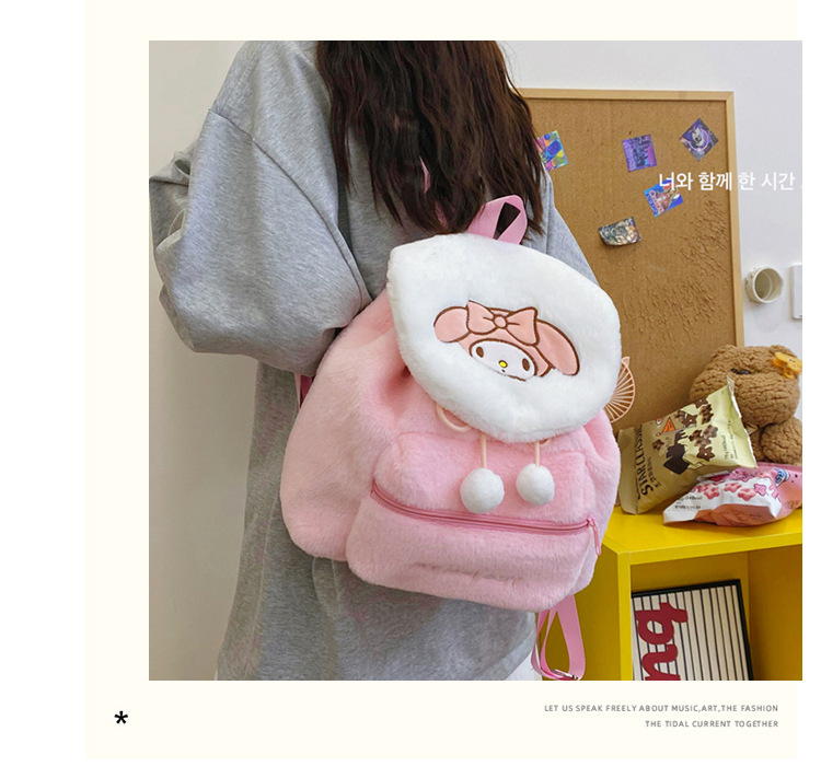 日系可爱刺绣库洛米美乐蒂毛绒背包学生大容量双肩包书包 English | 投诉