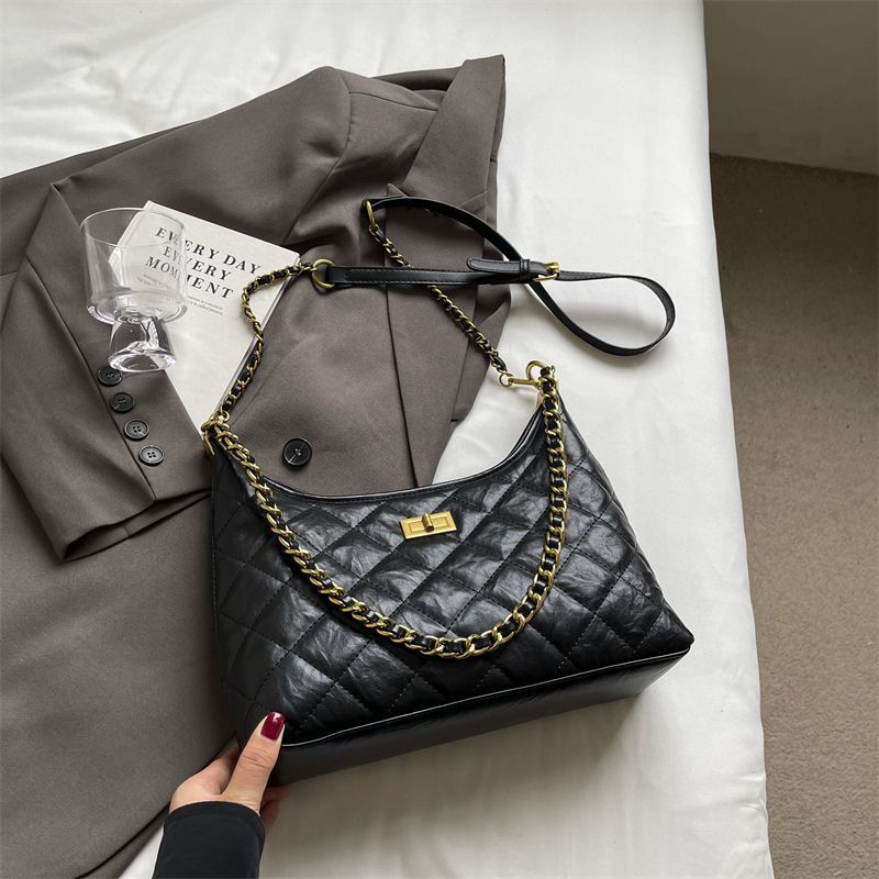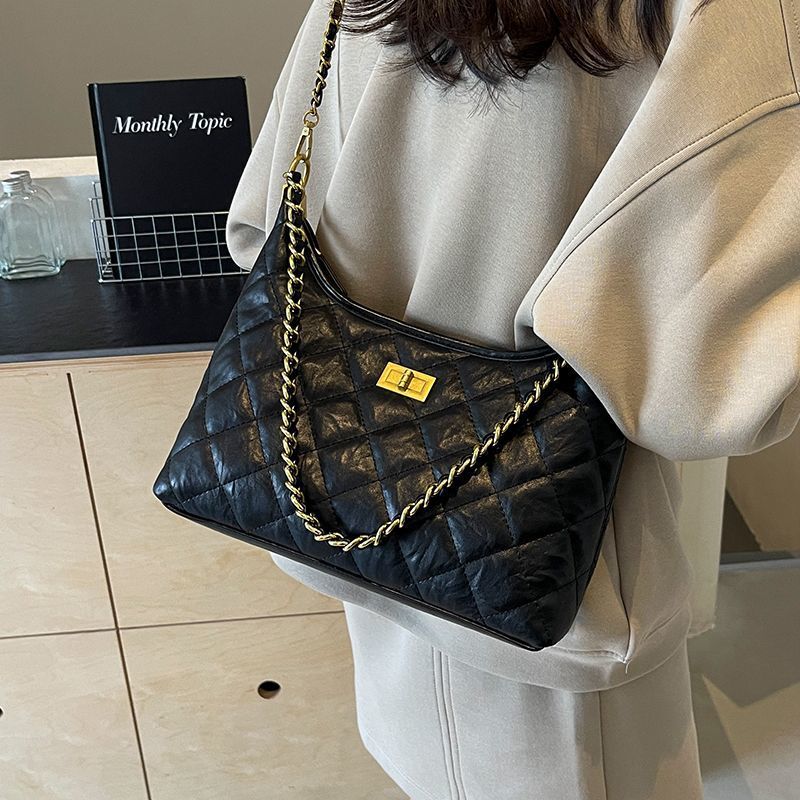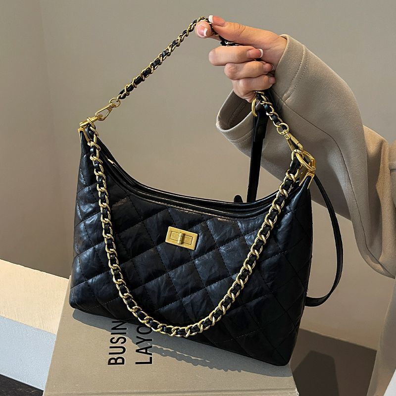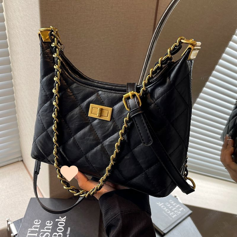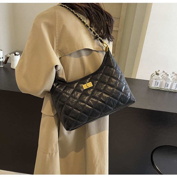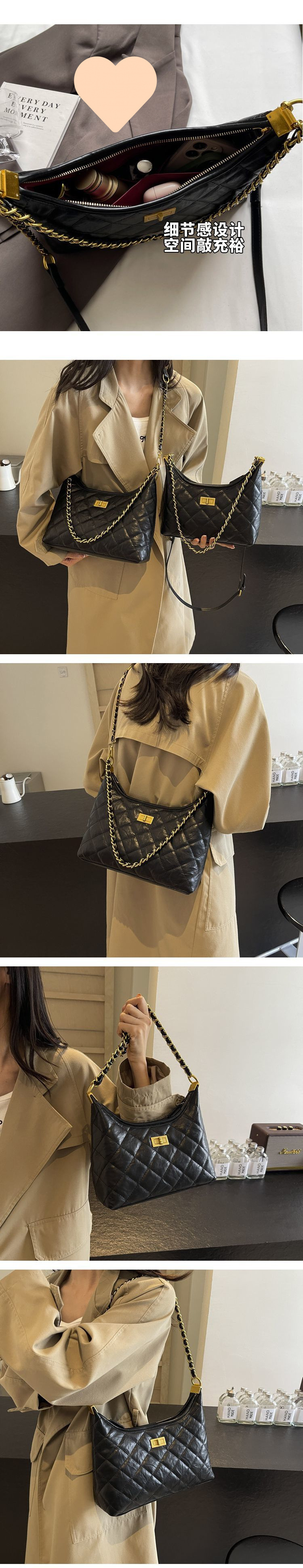 腋下小香风褶皱包包女2024新款韩版潮流时尚褶皱菱格单肩包高级感 English | 投诉