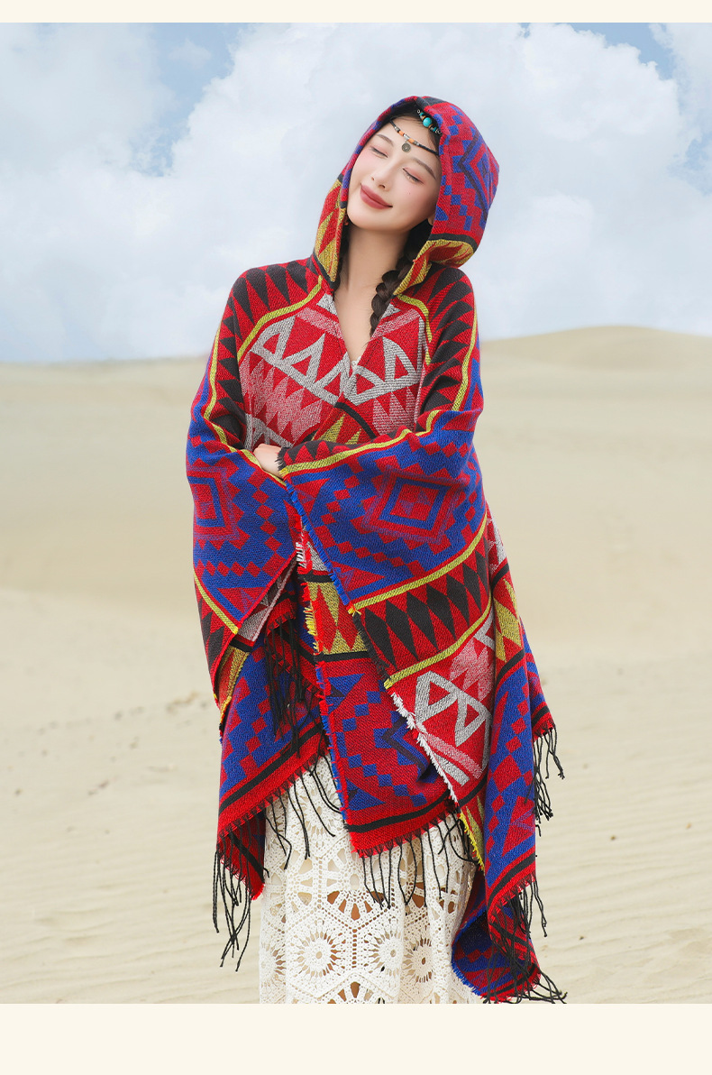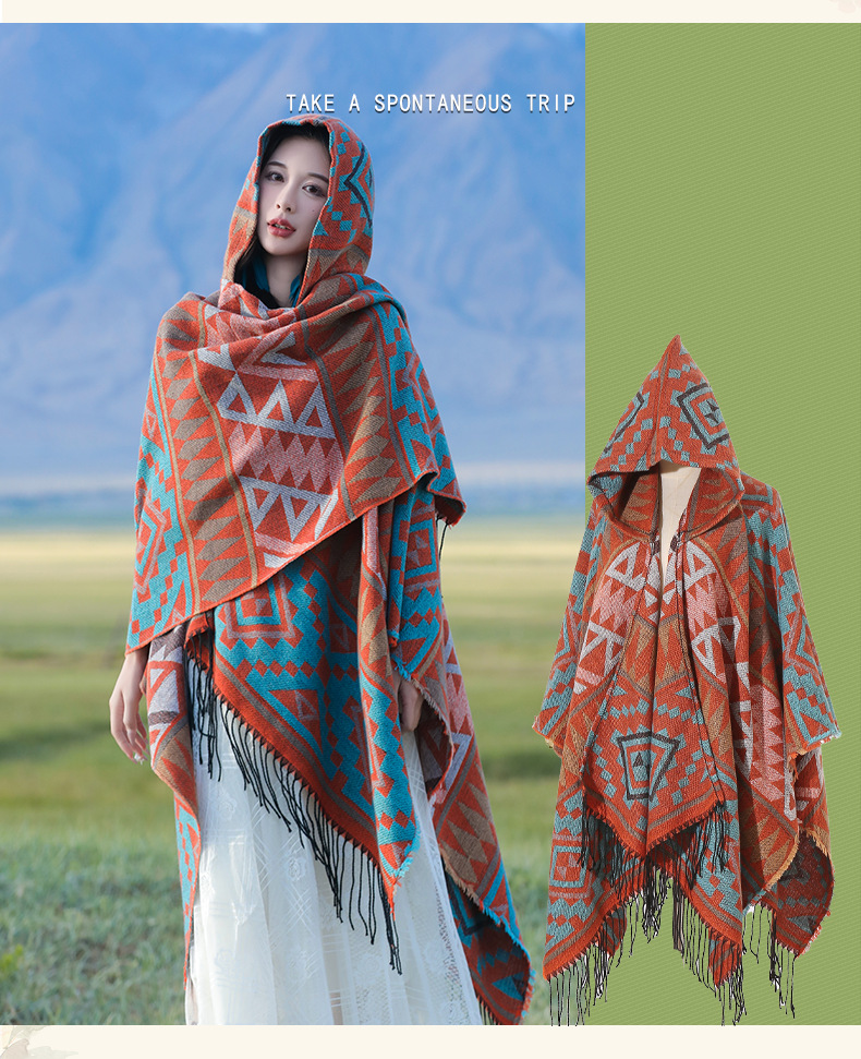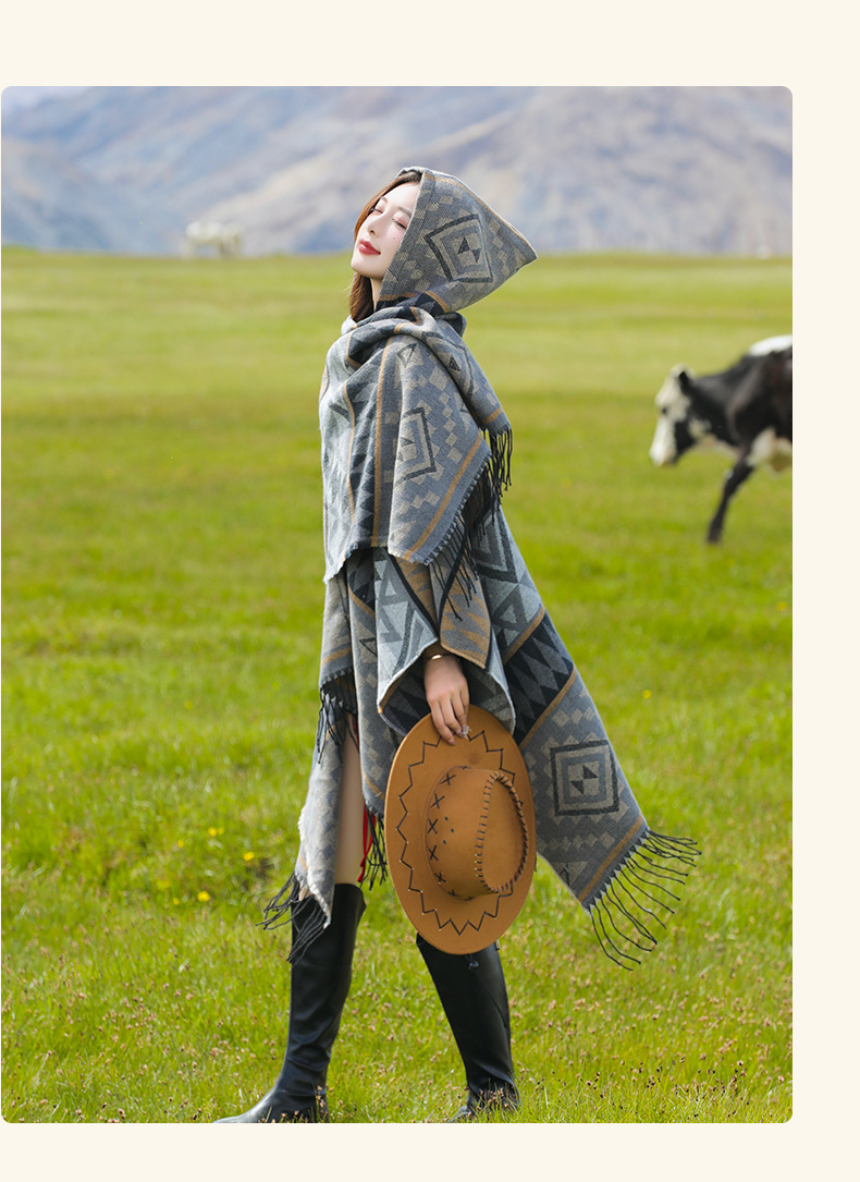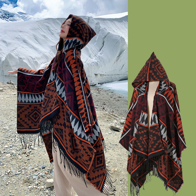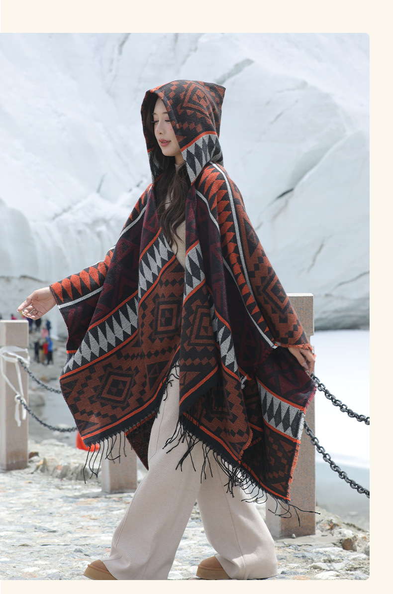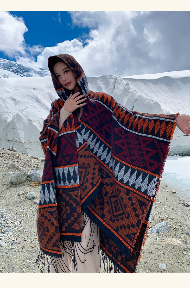 2024新款保暖披肩连帽斗篷女士户外旅行外搭拍照加厚披风围巾批发 English | 投诉