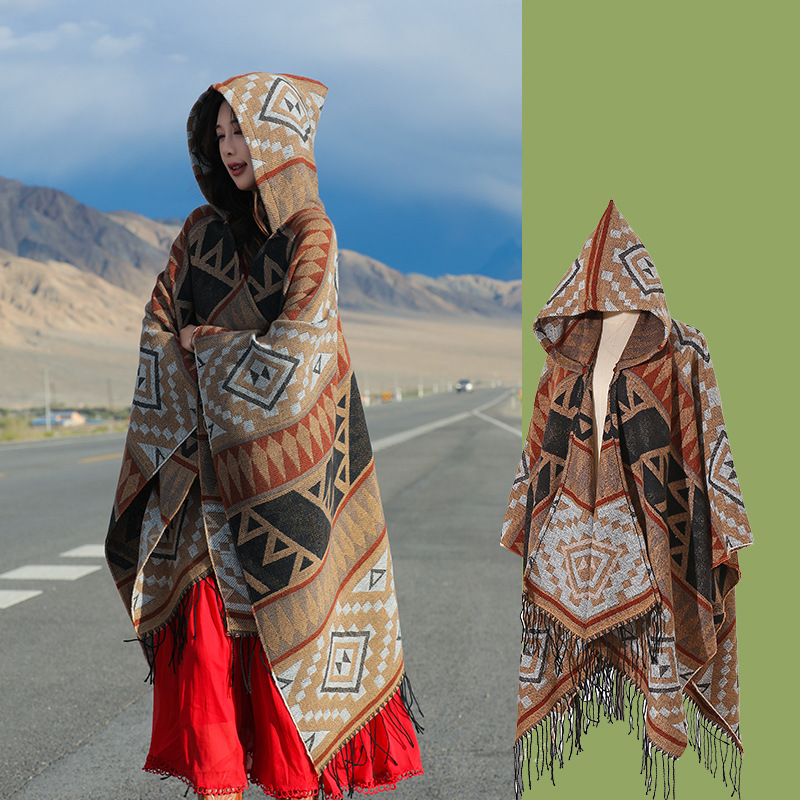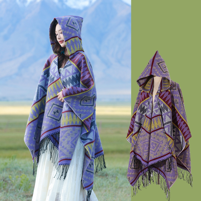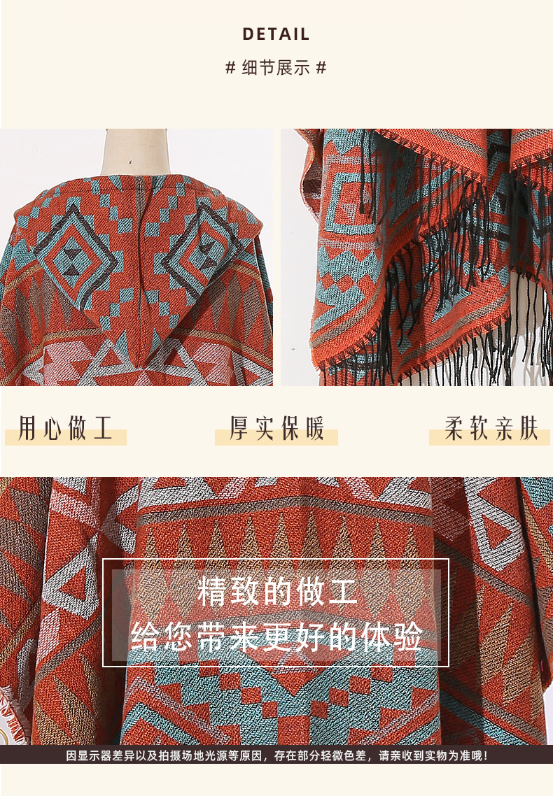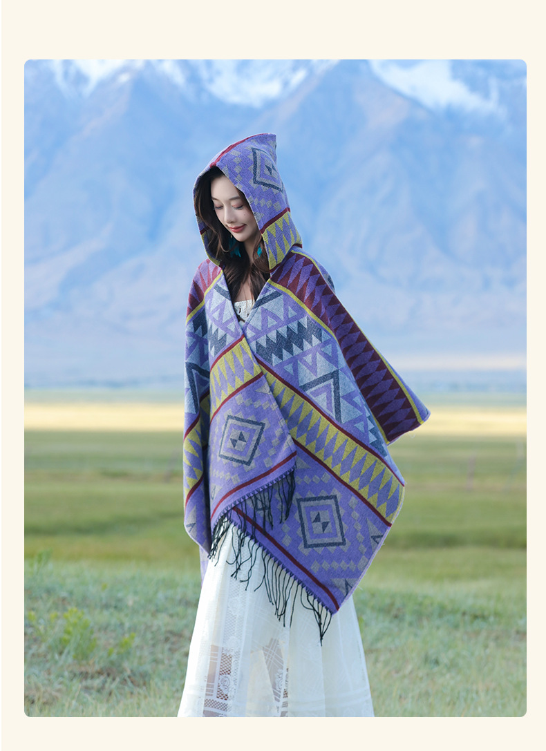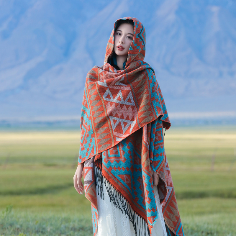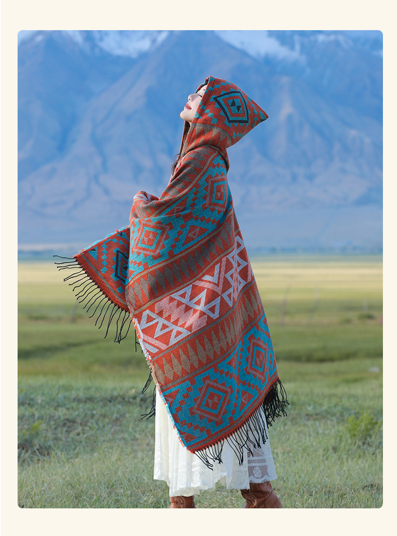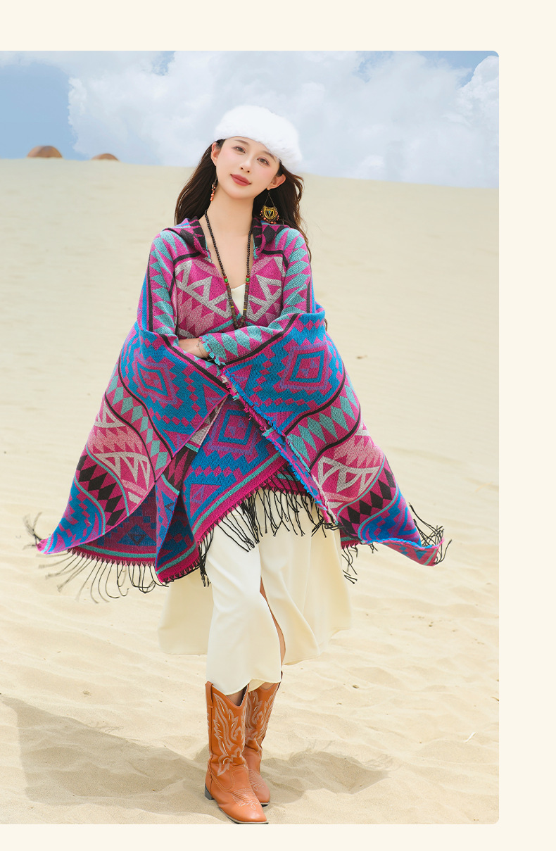 2024新款保暖披肩连帽斗篷女士户外旅行外搭拍照加厚披风围巾批发 English | 投诉