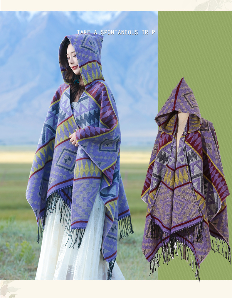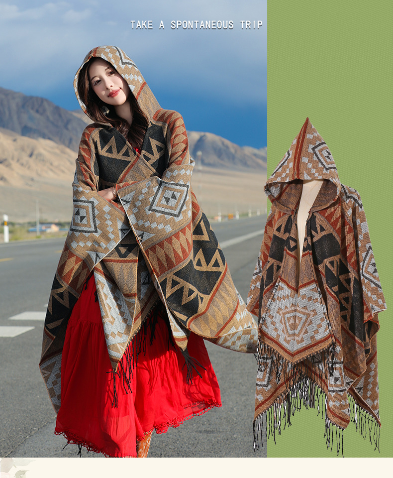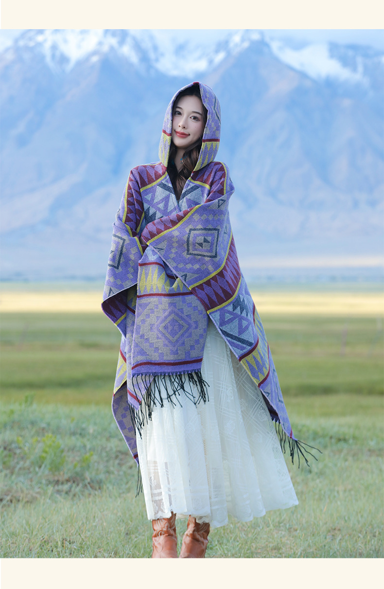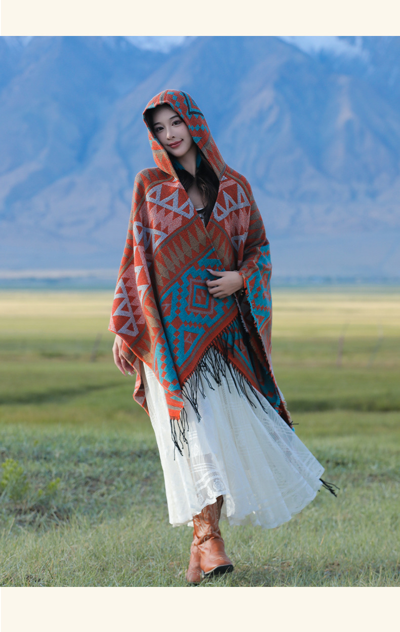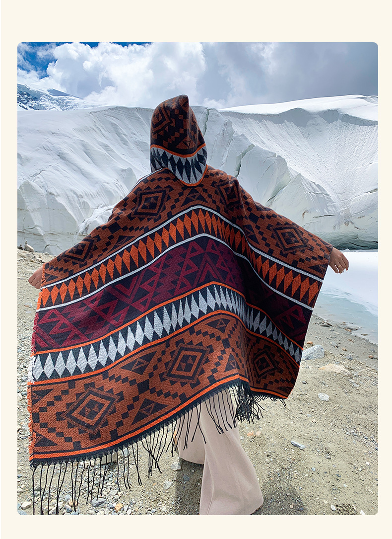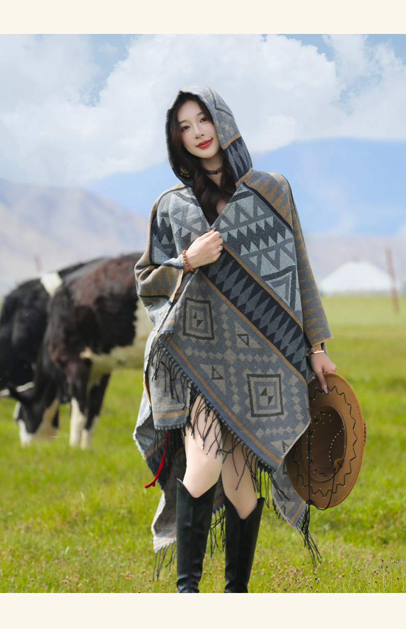 2024新款保暖披肩连帽斗篷女士户外旅行外搭拍照加厚披风围巾批发 English | 投诉