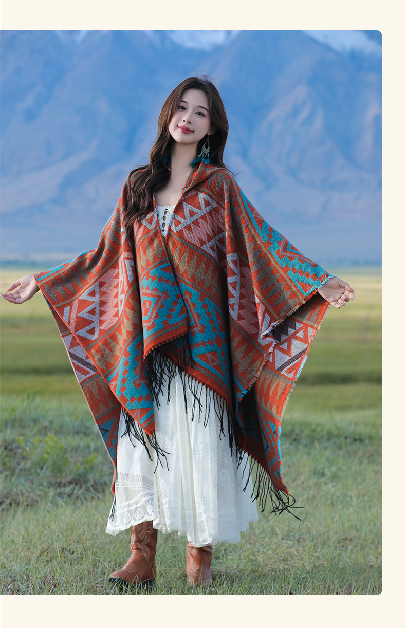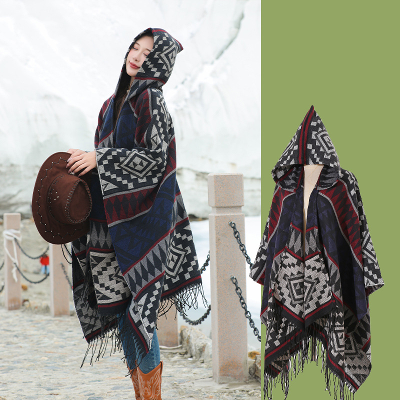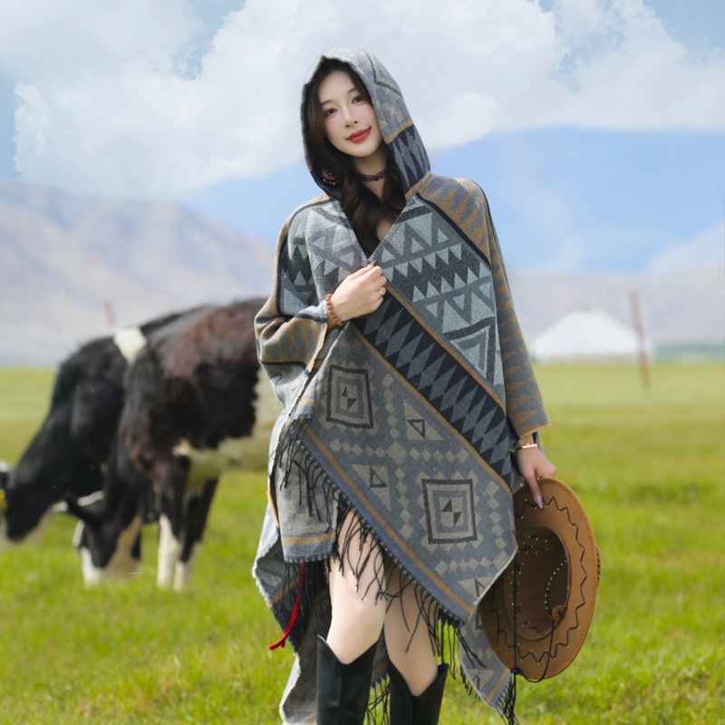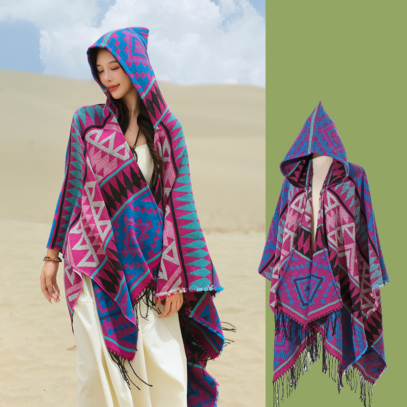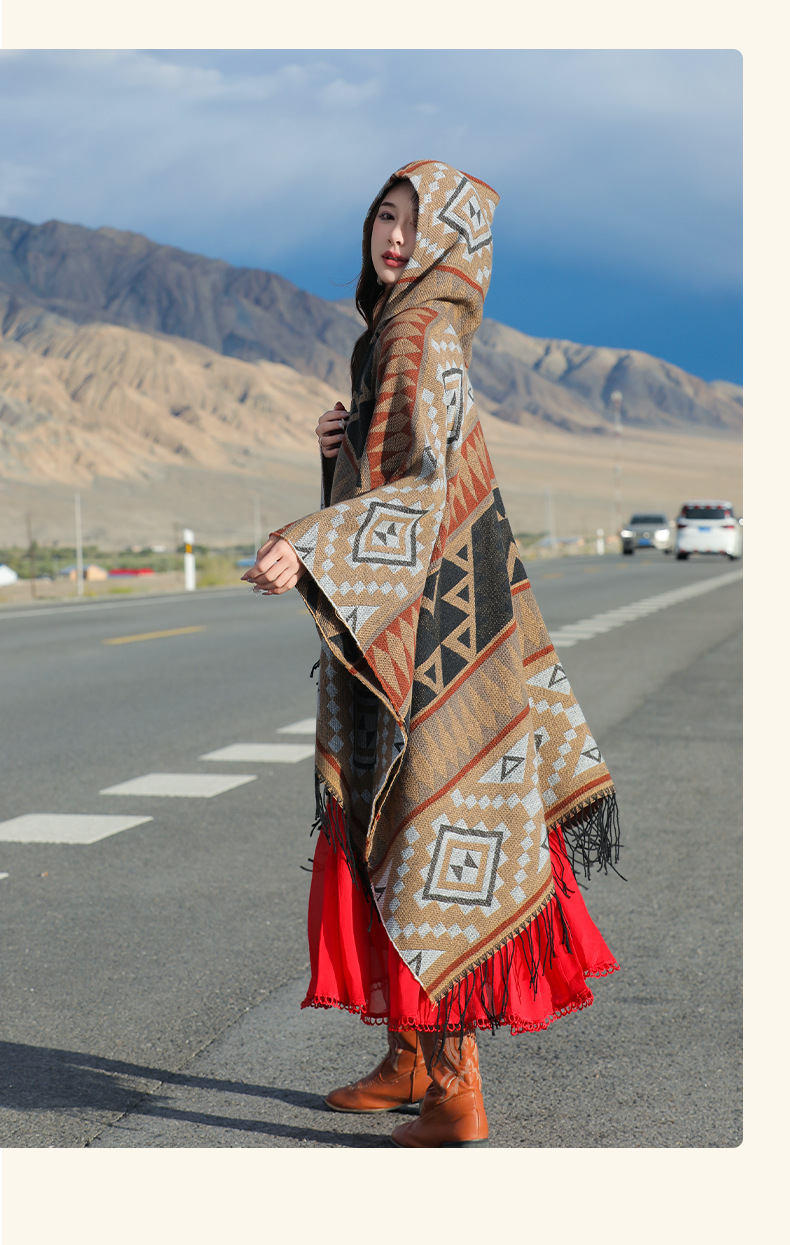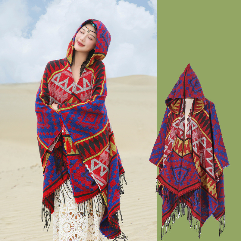 2024新款保暖披肩连帽斗篷女士户外旅行外搭拍照加厚披风围巾批发 English | 投诉