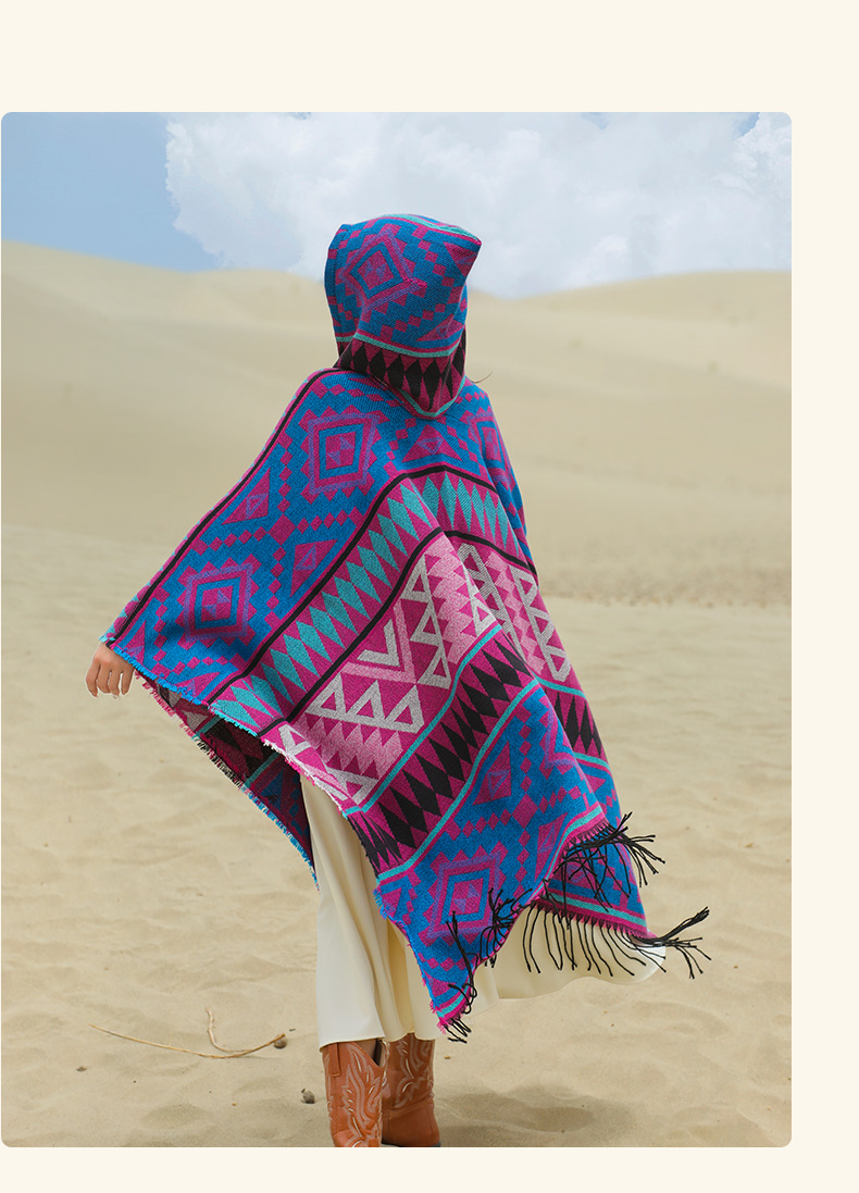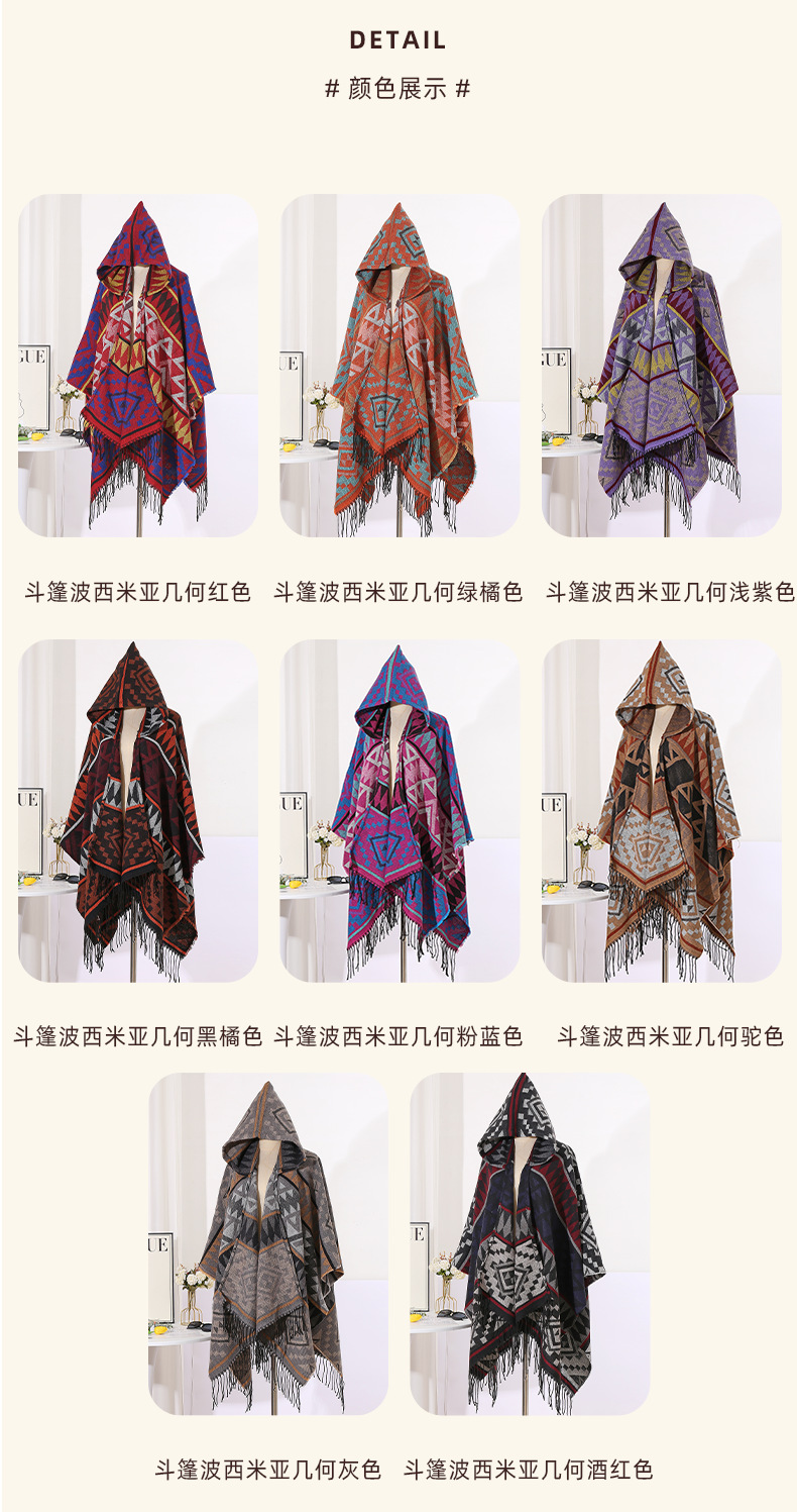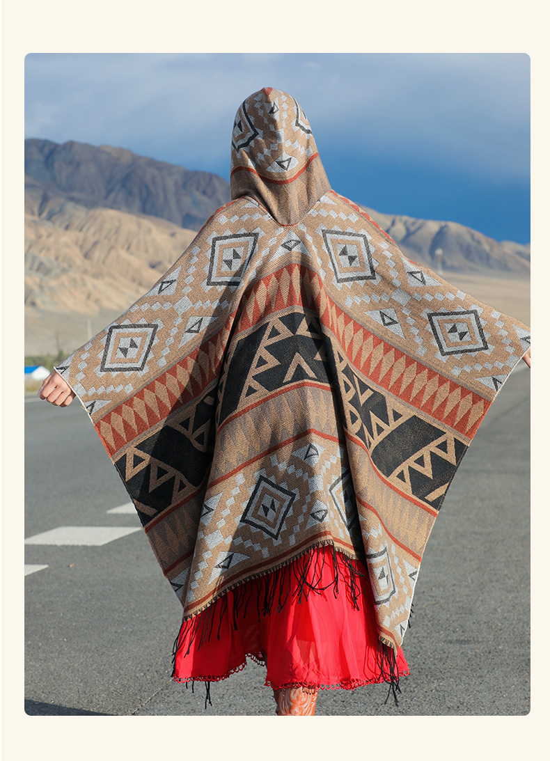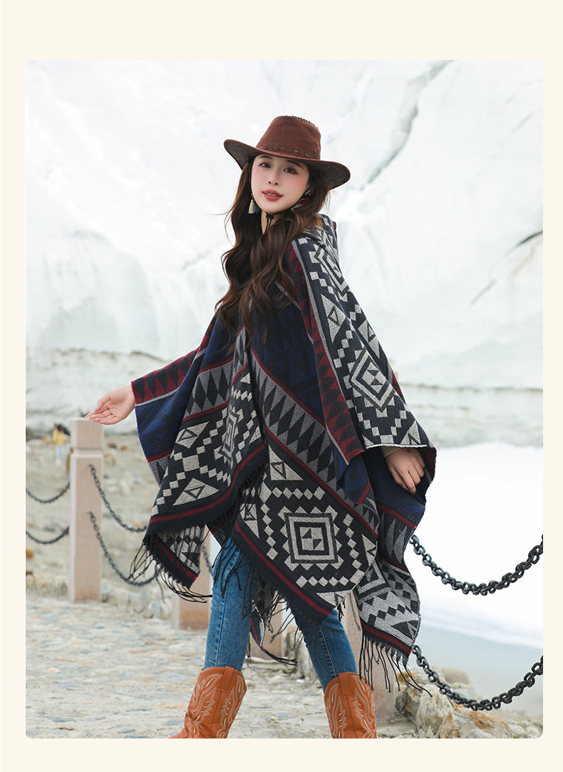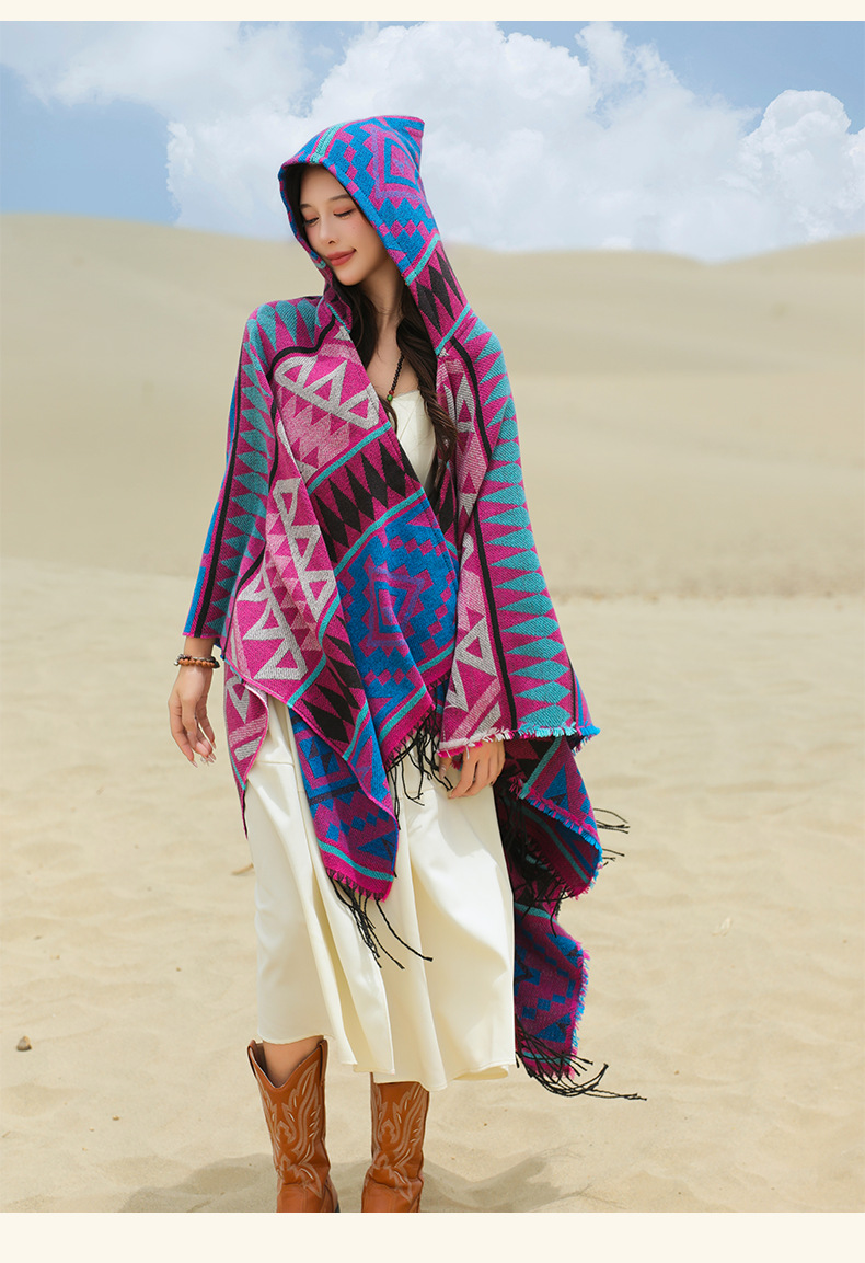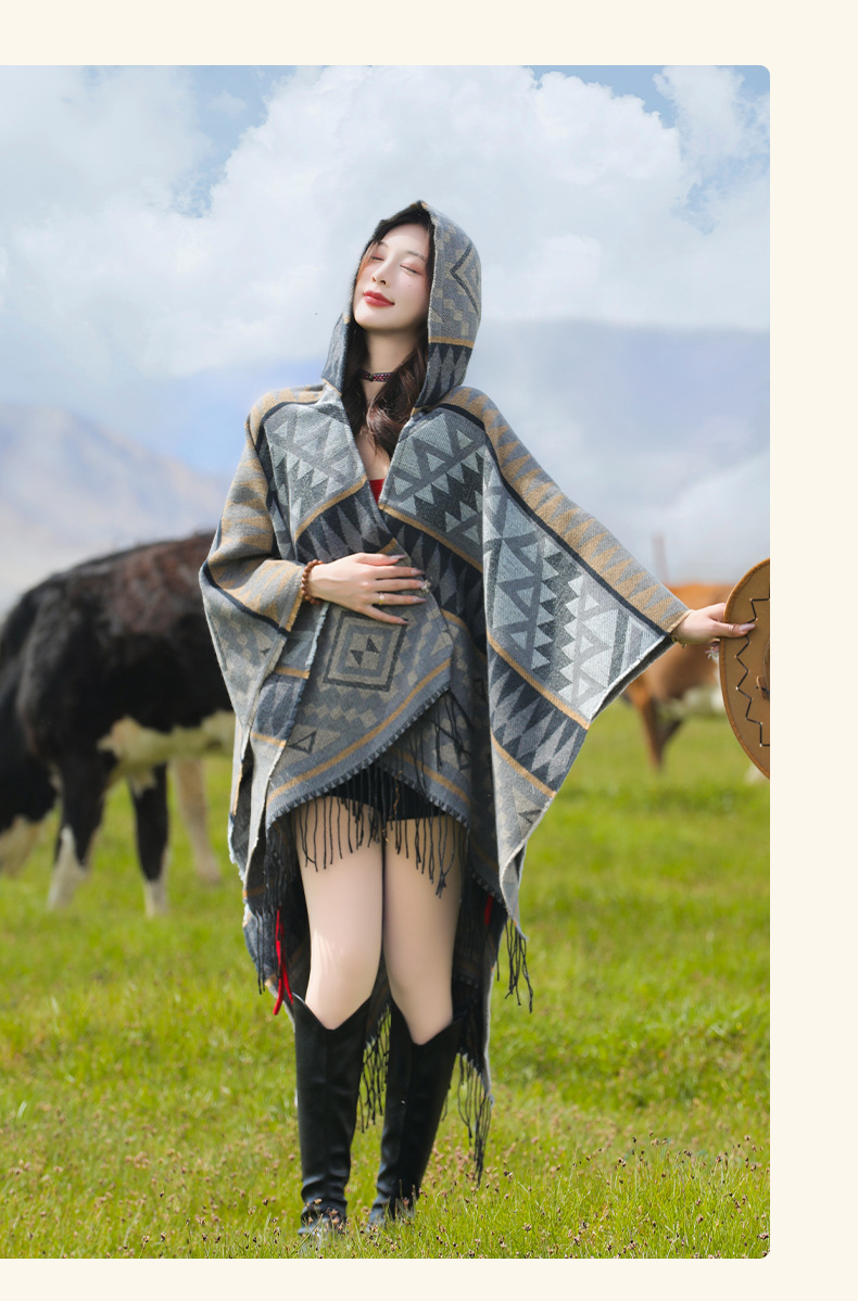 2024新款保暖披肩连帽斗篷女士户外旅行外搭拍照加厚披风围巾批发 English | 投诉