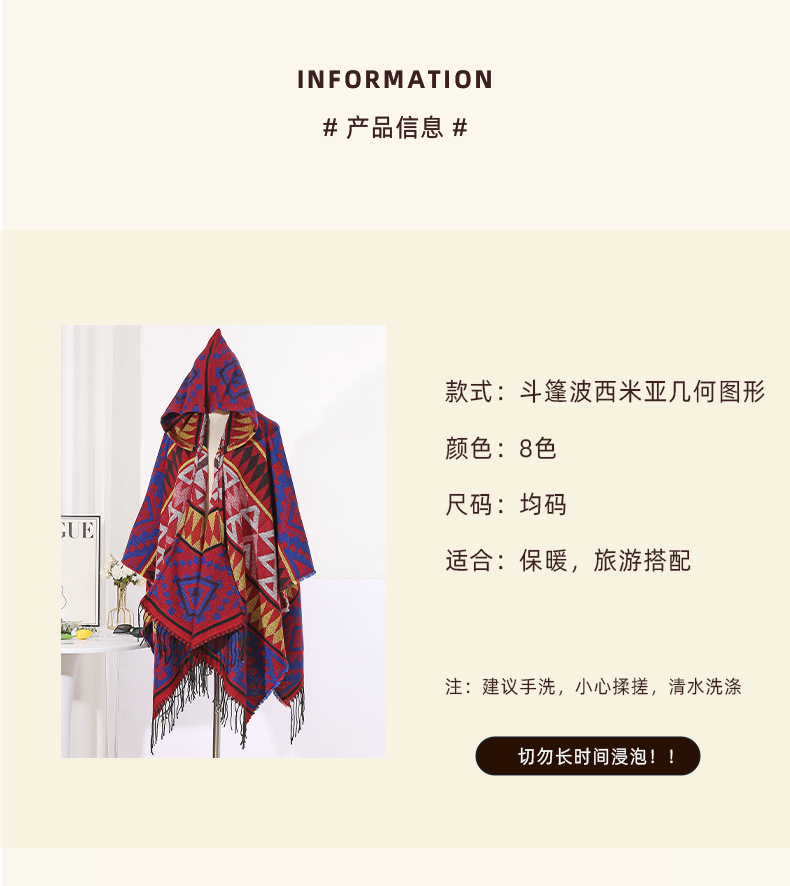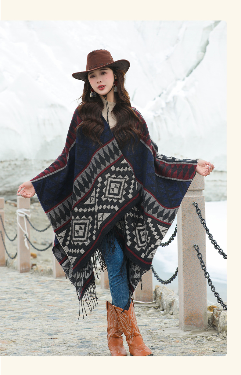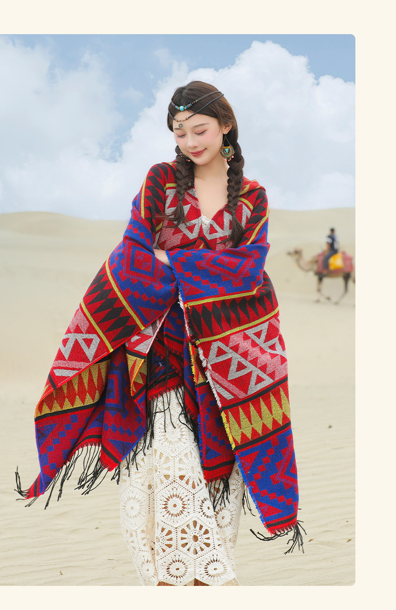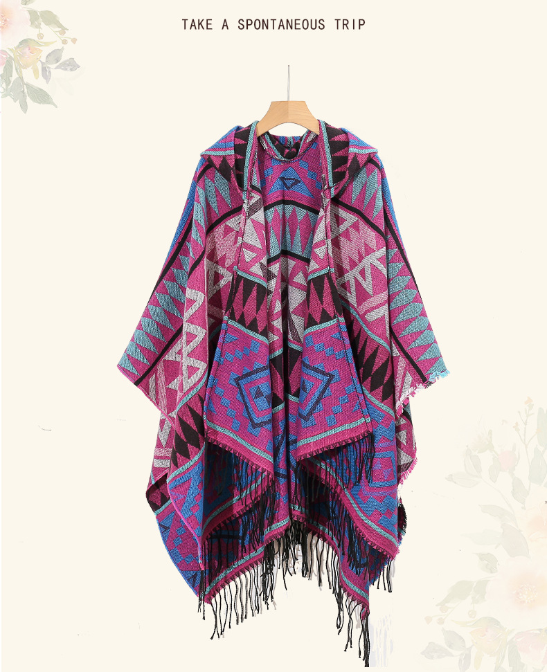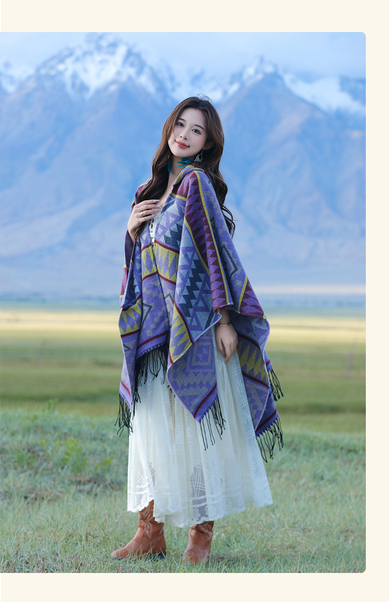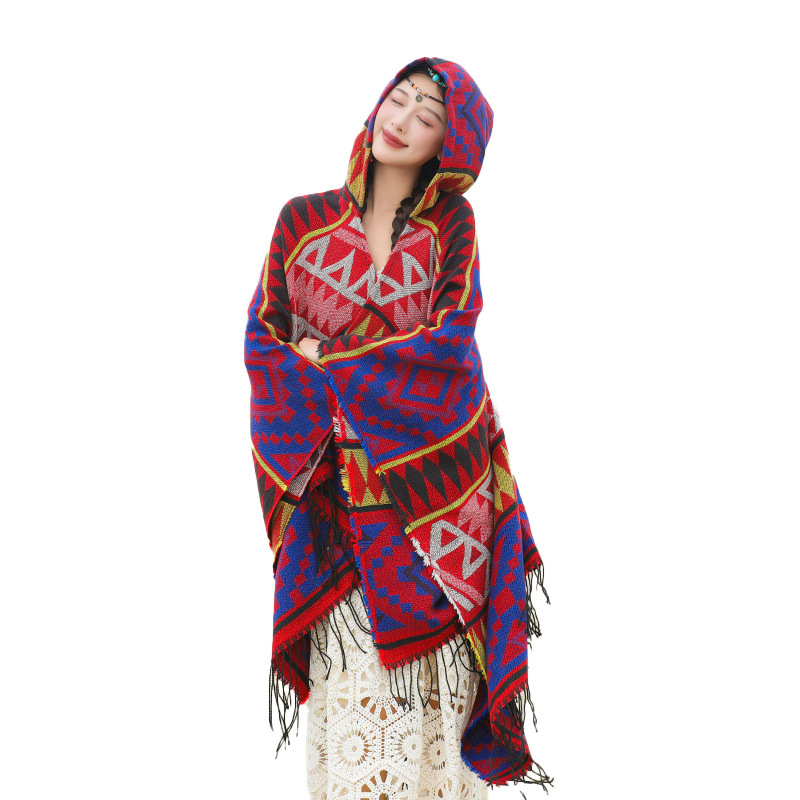 2024新款保暖披肩连帽斗篷女士户外旅行外搭拍照加厚披风围巾批发 English | 投诉
