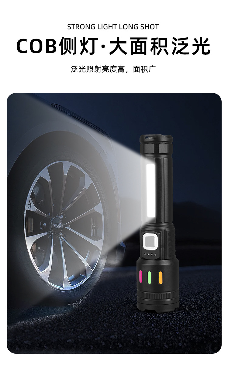 强光手电筒Type-c充电户外照明带侧灯应急  带COB警示侧灯工作灯