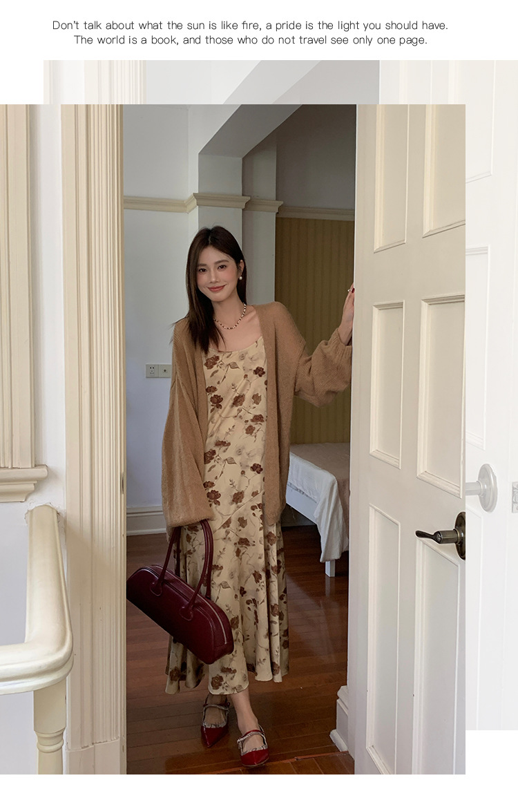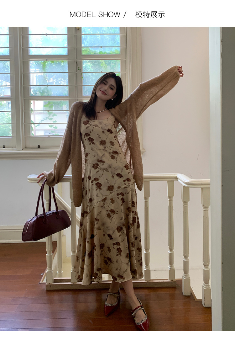 2025爱西里秋季韩系优雅气质吊带缎面印花连衣裙显瘦长裙女11731 投诉