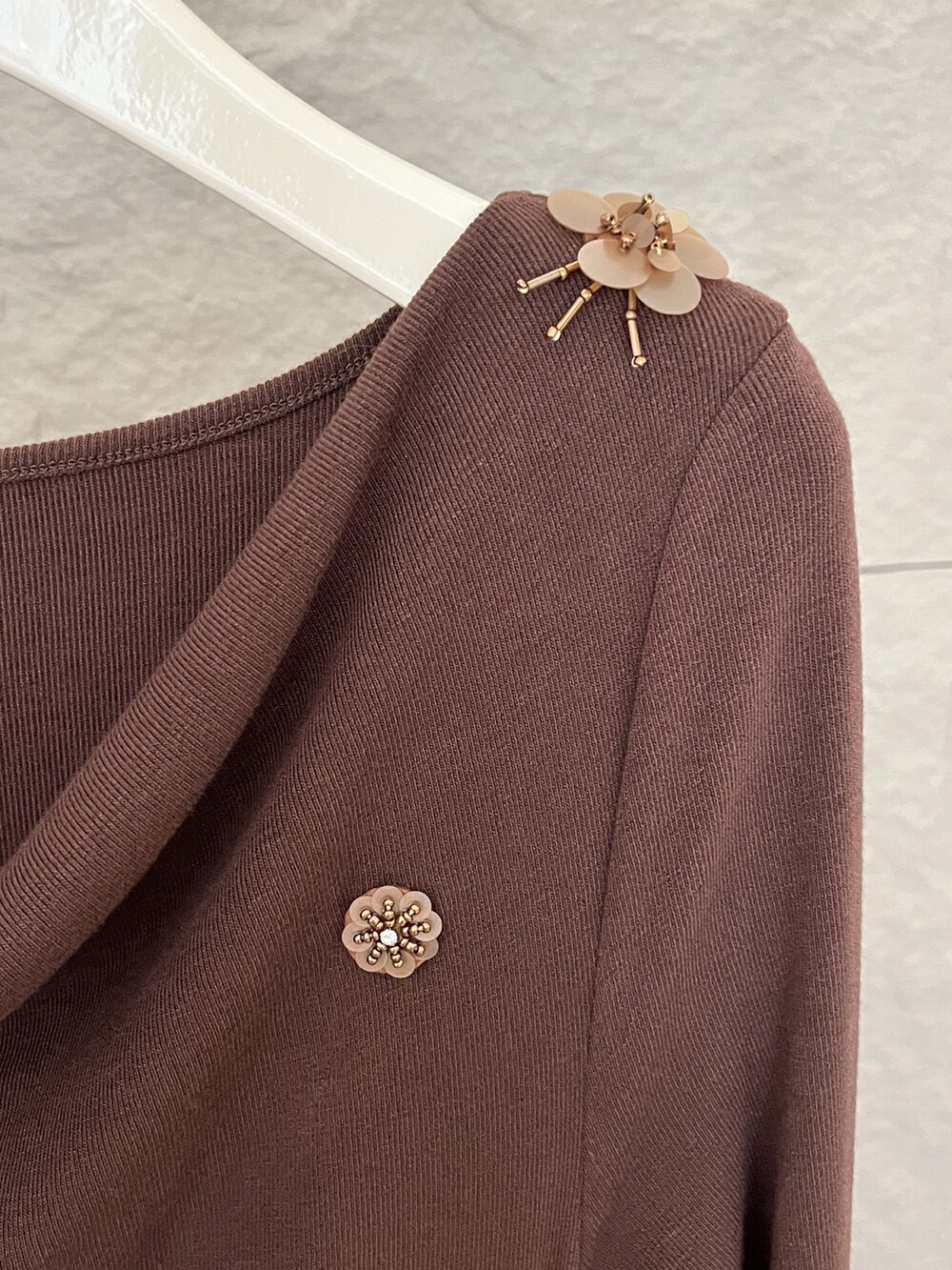 2025秋季新款气质优雅纯色一字领高腰长袖针织连衣裙88121 投诉