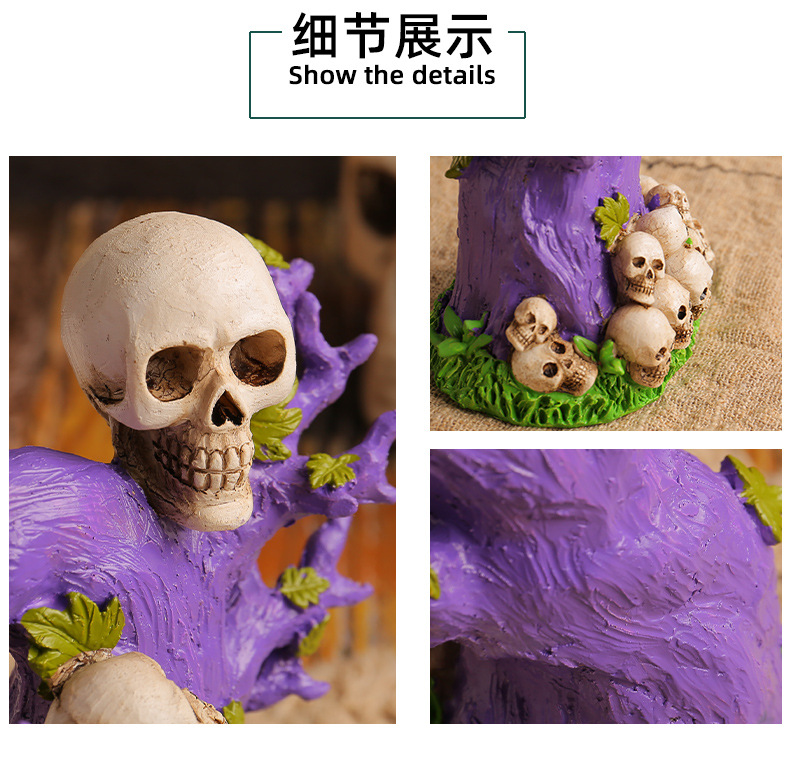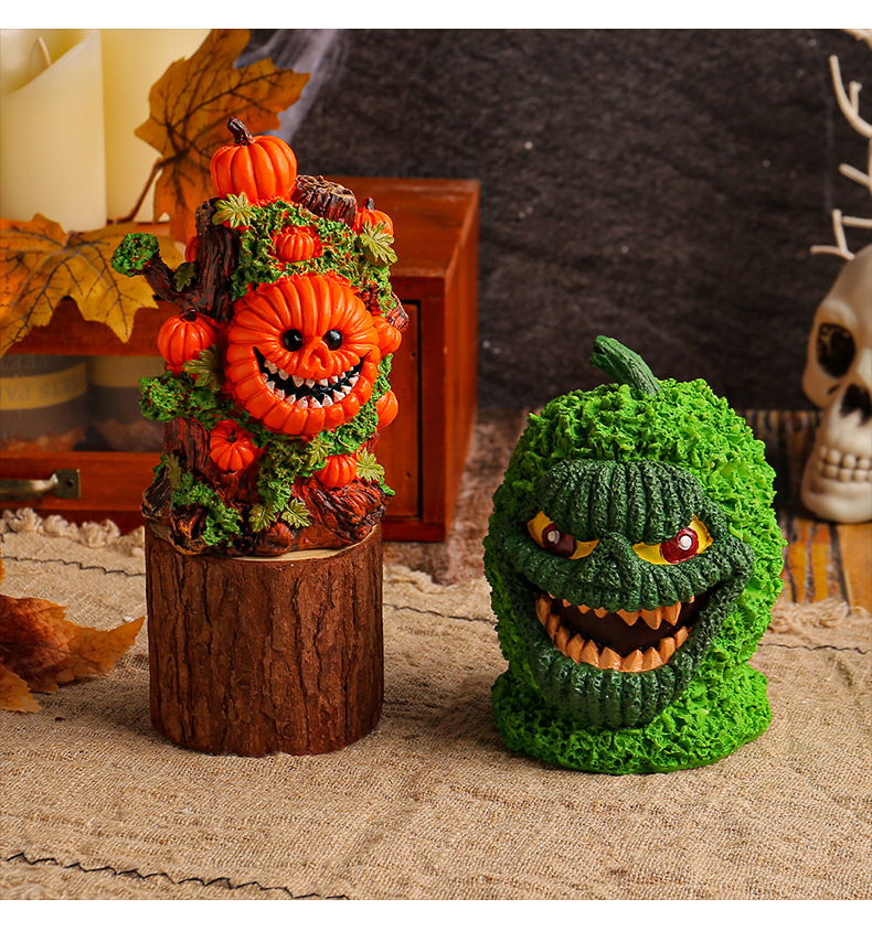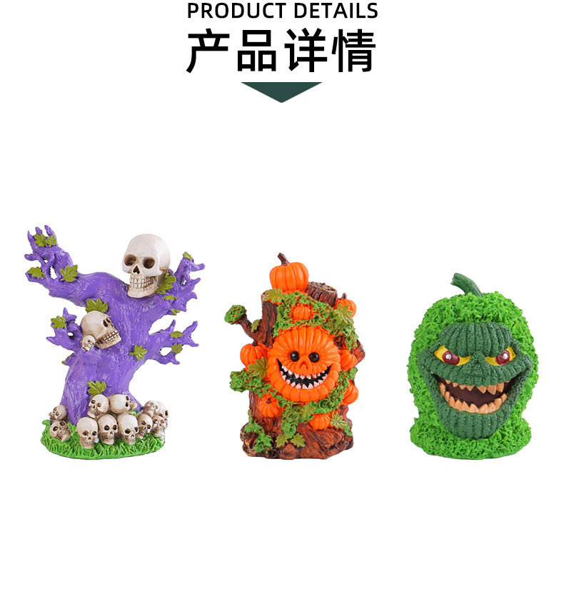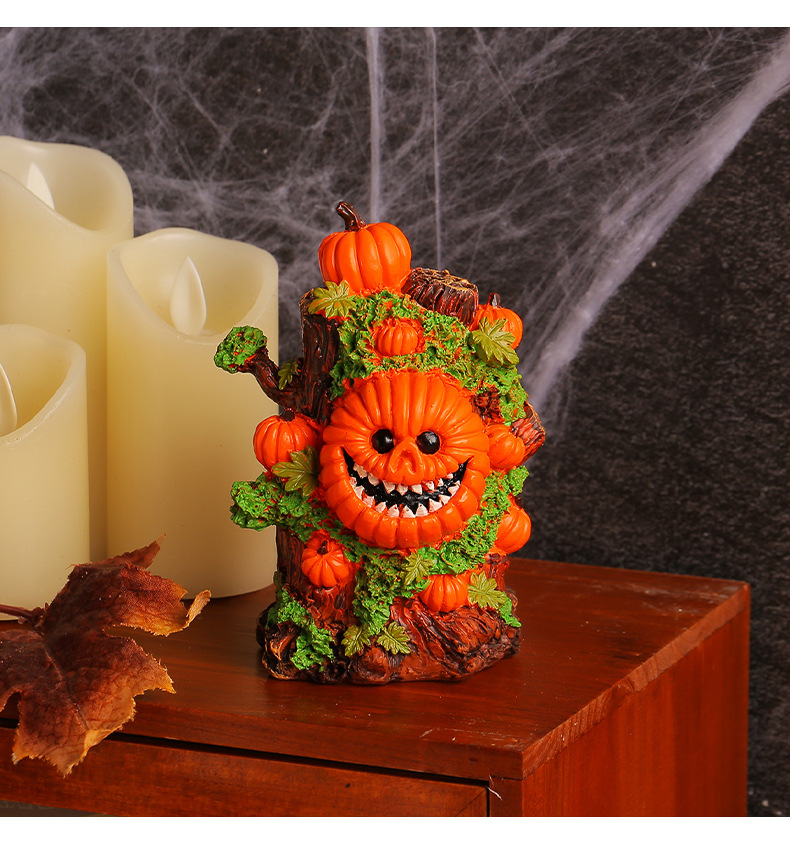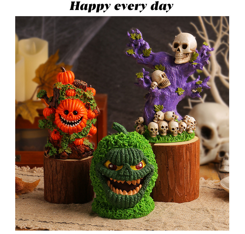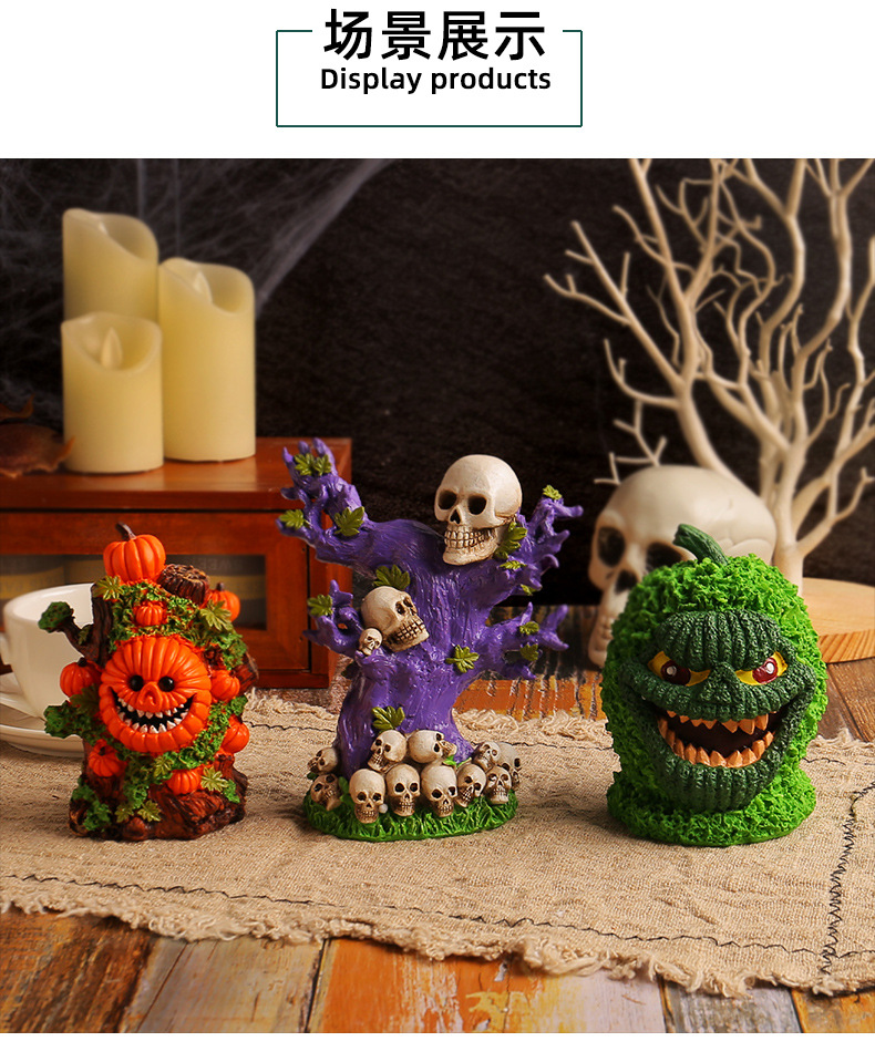 跨境万圣节树精绿南瓜怪摆件桌面派对搞怪头骨树恐怖氛围布置装饰 投诉